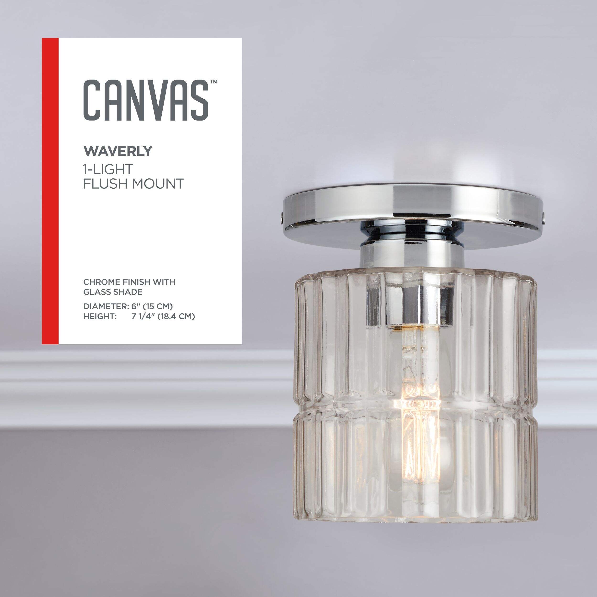 The CANVAS Waverly Flush Mount Ceiling Light is a classic flush mount for any room in your house. This stylish ceiling light features a an eye-catching chrome body and a glass shade that suits a variety of decor schemes. The unique flush mount design means it can sit right up to the wall, eliminating obtrusion. The fixture is easy to install and comes with everything you need to affix it to your ceilings.