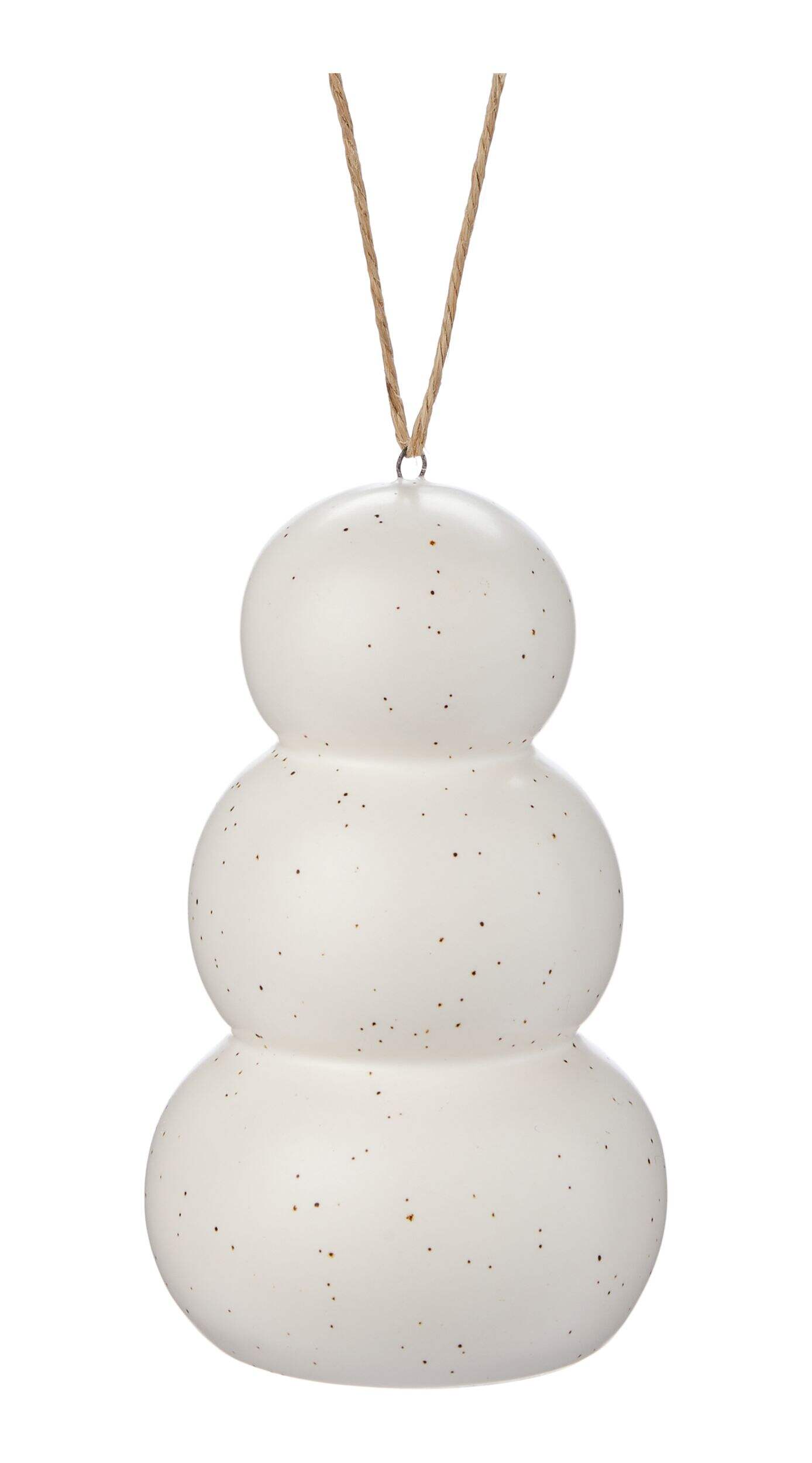 Add a touch of festive charm to your holiday decor with the CANVAS White Collection Ceramic Snowman Ornament. This delightful ceramic decor features a speckled finish and gold buttons, making it a stylish addition to any Christmas tree. Ready to hang, this snowman ornament brings a whimsical and elegant touch to your seasonal decorations.