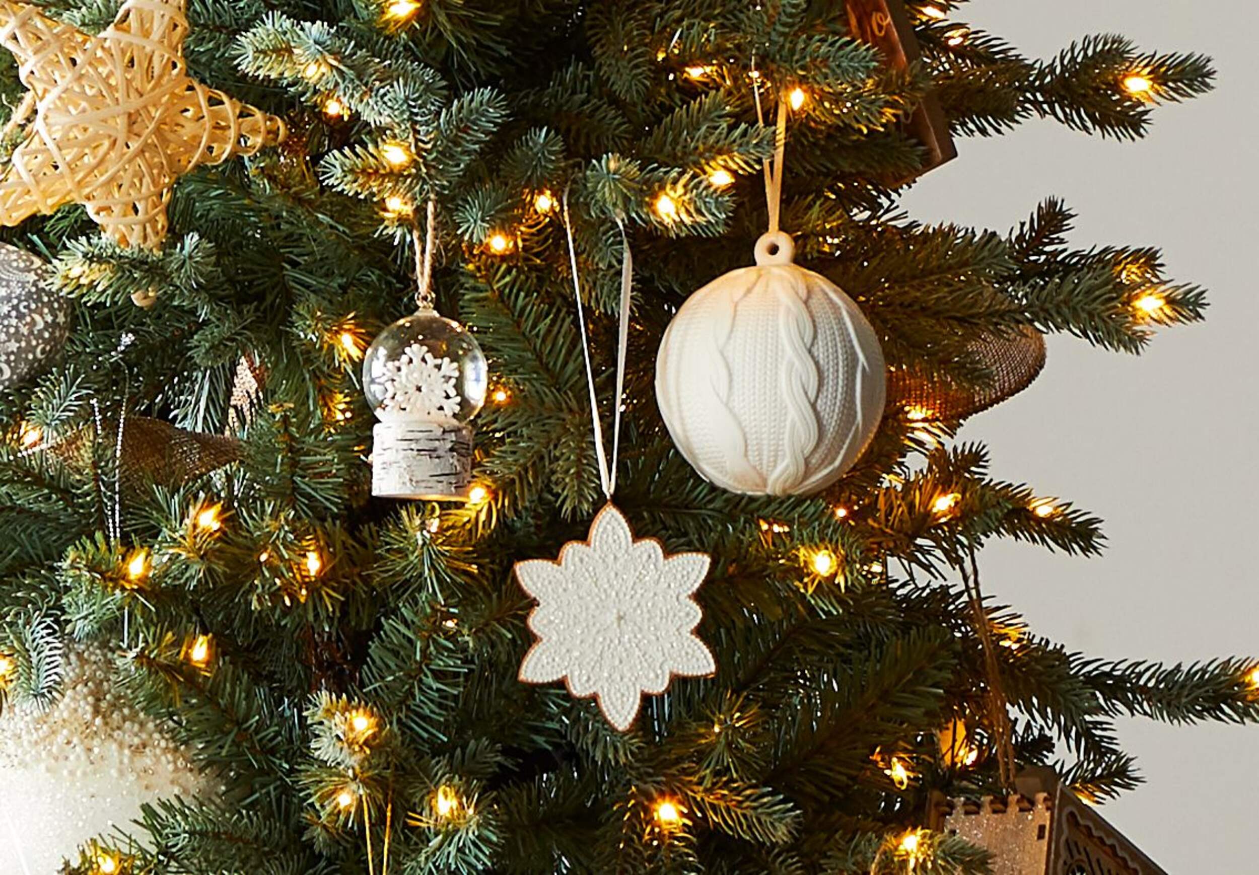 The CANVAS White Collection Snowflake Snow Globe Ornament comes ready to hang