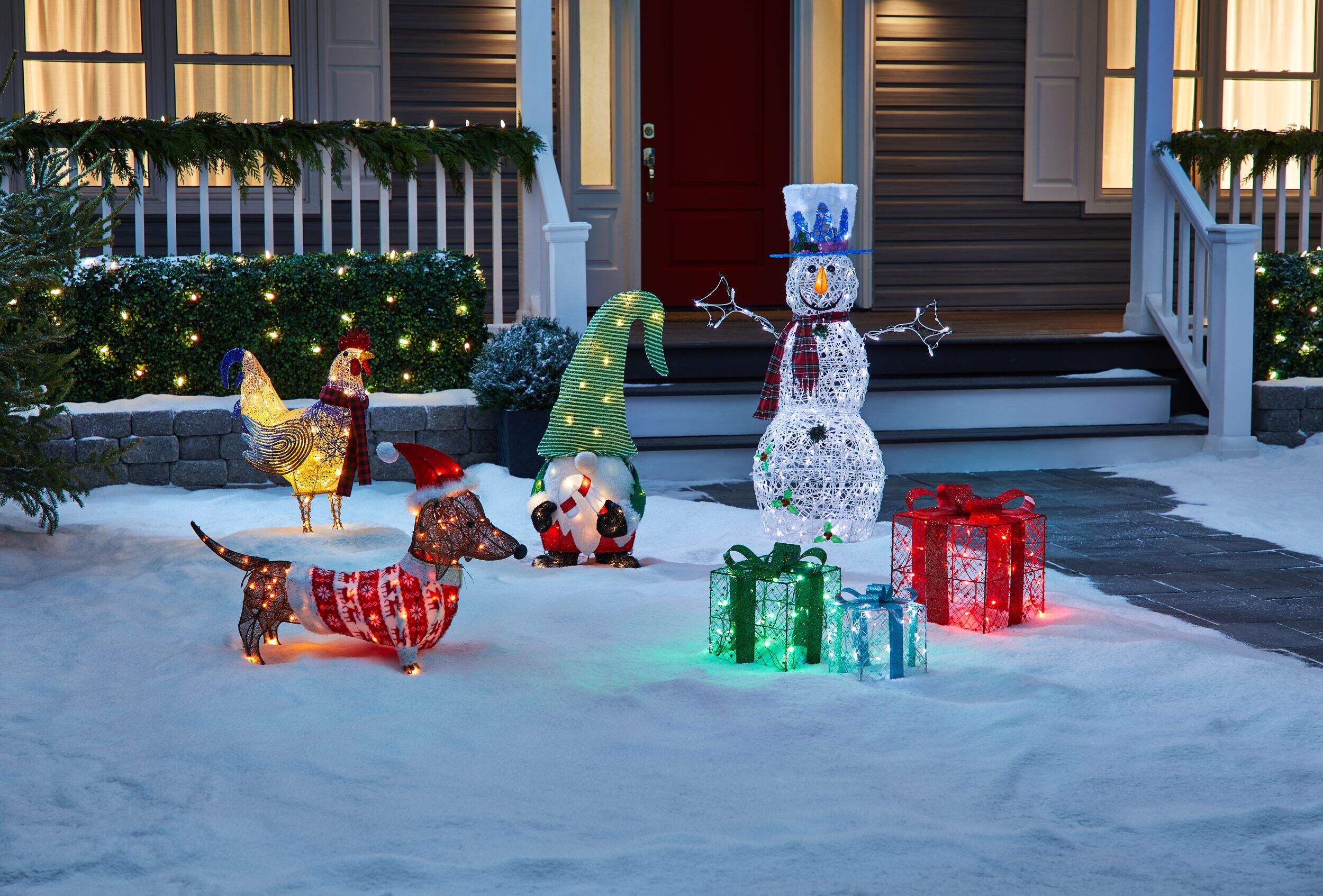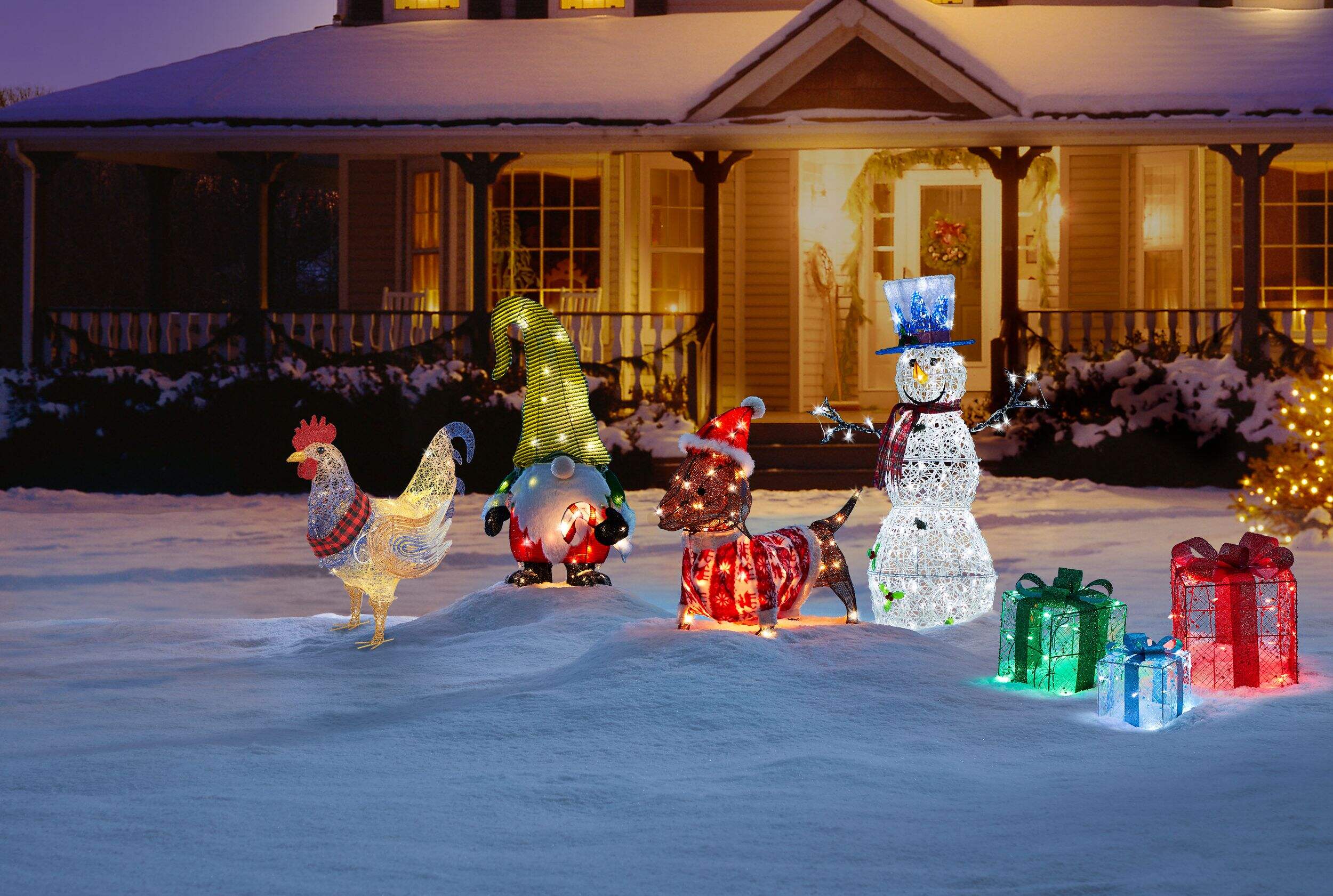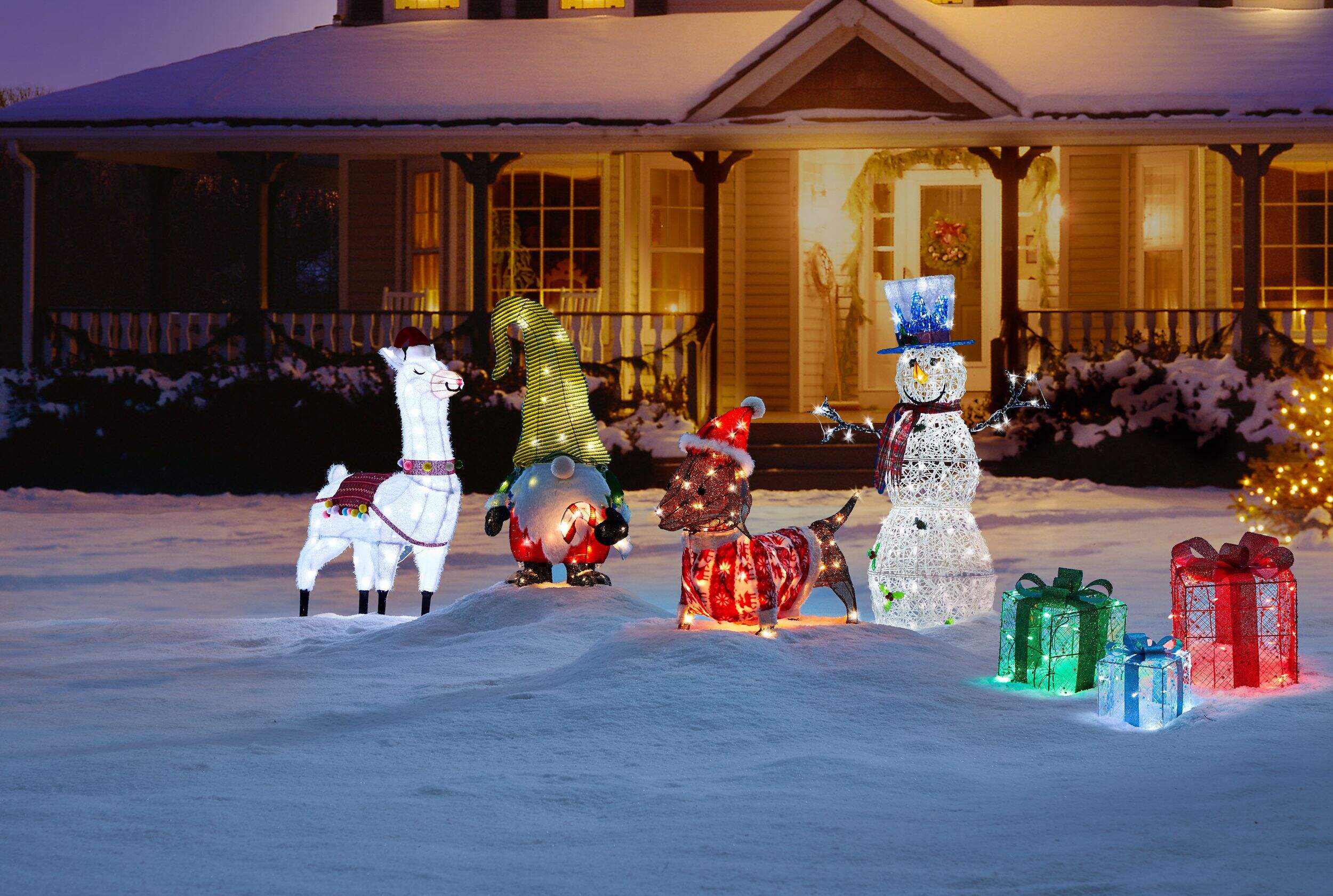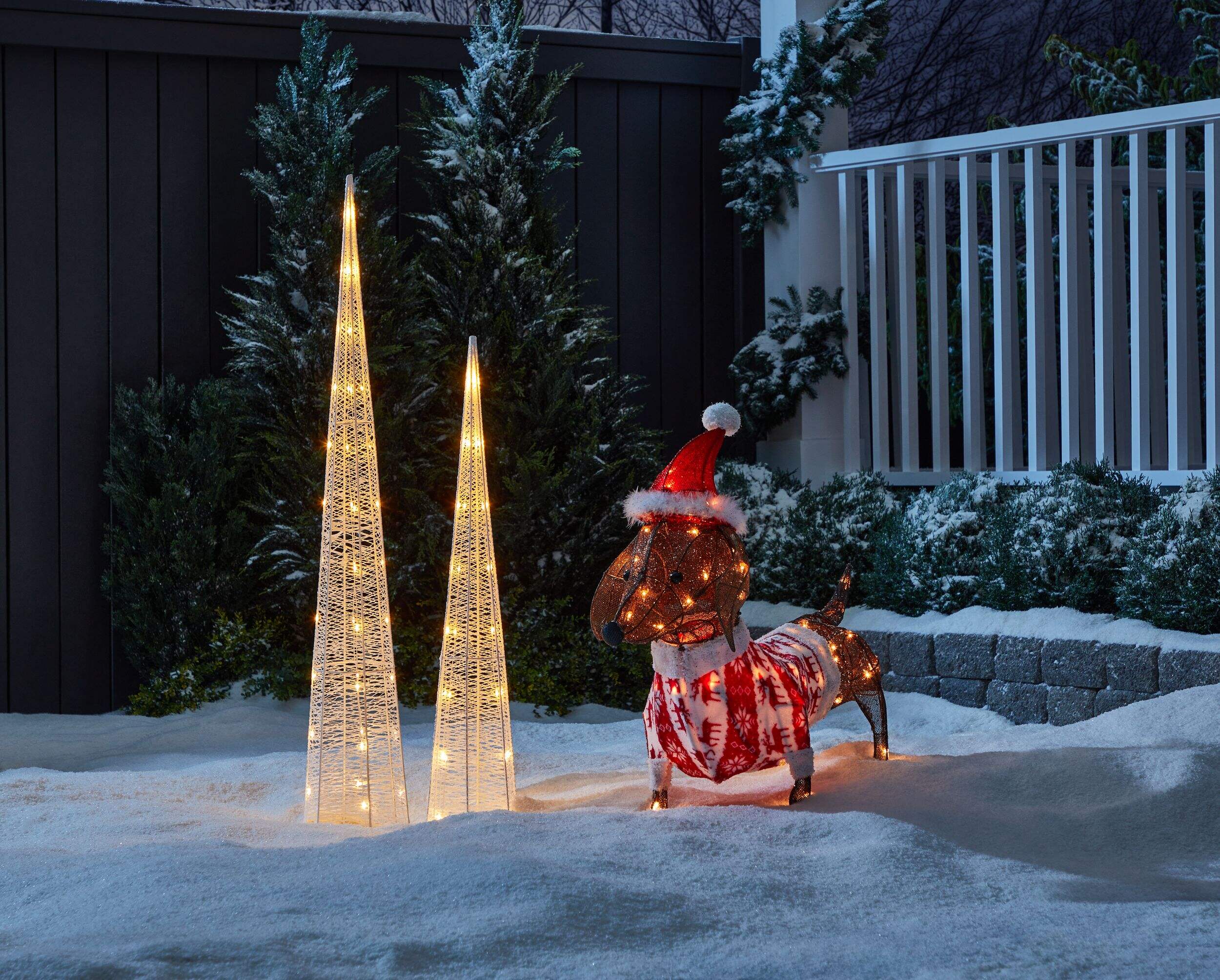 Light up your home or yard with the charming and festive CANVAS Dachshund Dog decoration. This charming light-up figure comes suited in a Santa hat and fabric Christmas sweater, ready to cast warm, glowing light over your garden landscape or family room. The perfect no-maintenance pet, it features 70 incandescent lights to create a dazzling display that friends and neighbours will love. This fully assembled Christmas décor sets up quickly with the included hardware.