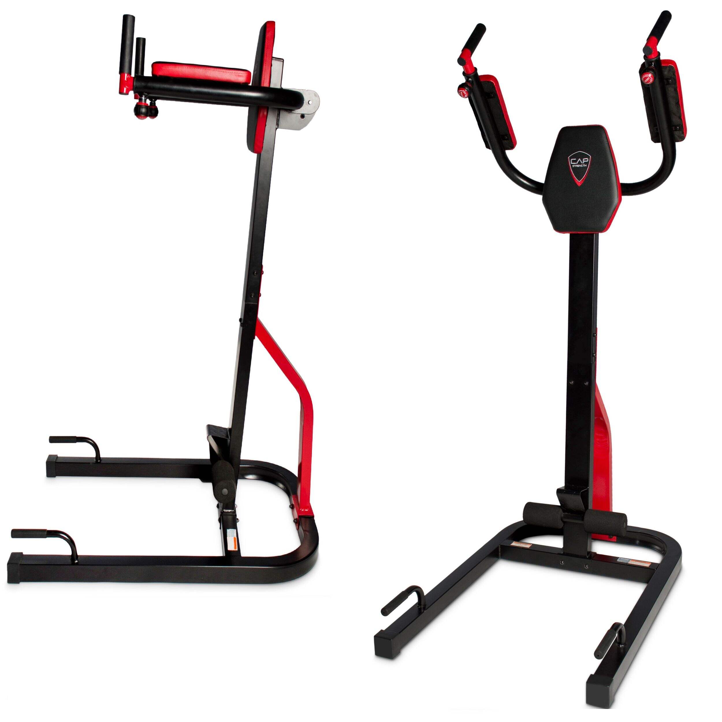 CAP Barbell Power Tower has a narrow and wide grip pull-up bar, vertical knee raise station, dip station and push up handles