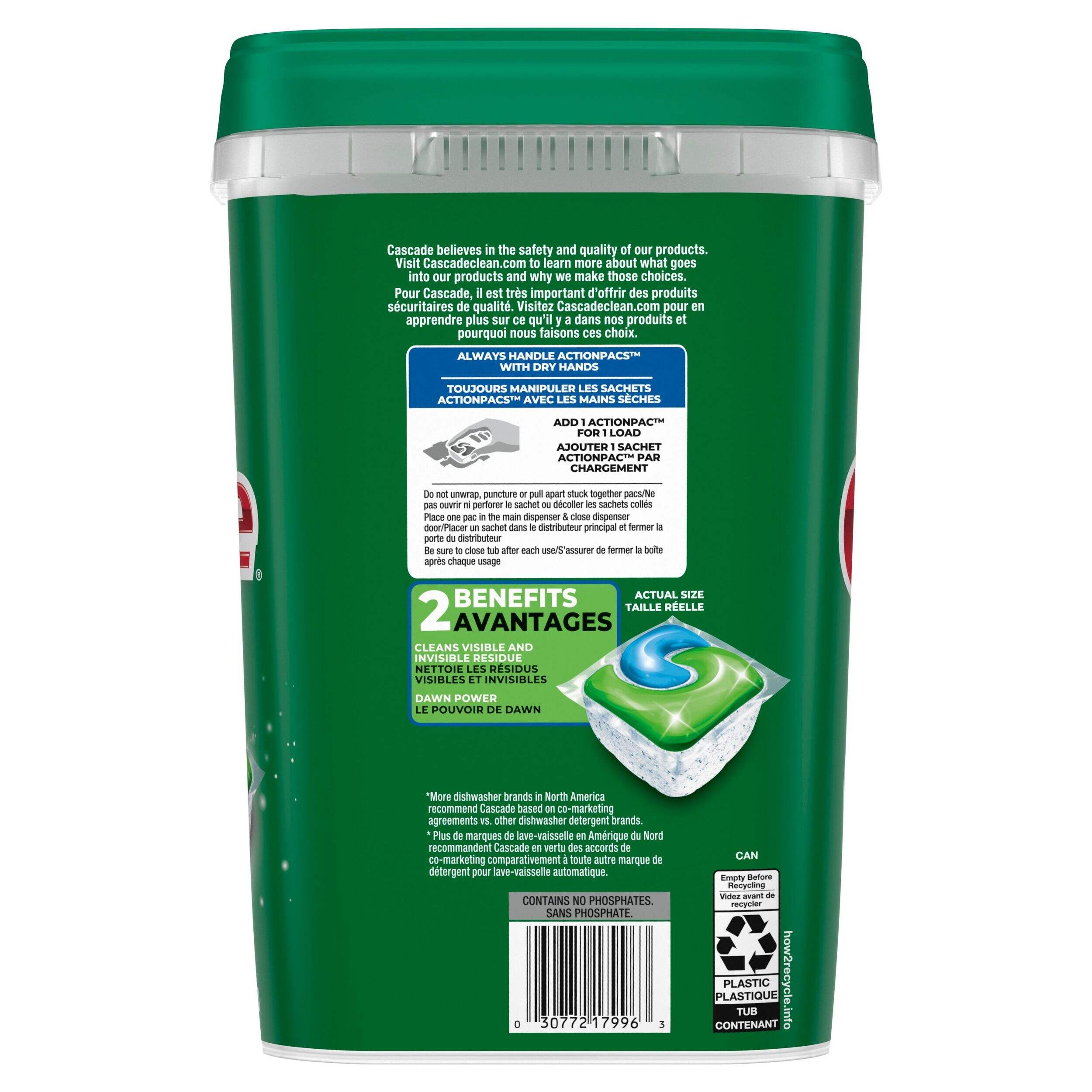 #1 Recommended Brand in North America* *More dishwasher brands in North America recommend Cascade based on co-marketing agreements vs. other automatic dishwasher detergent brands