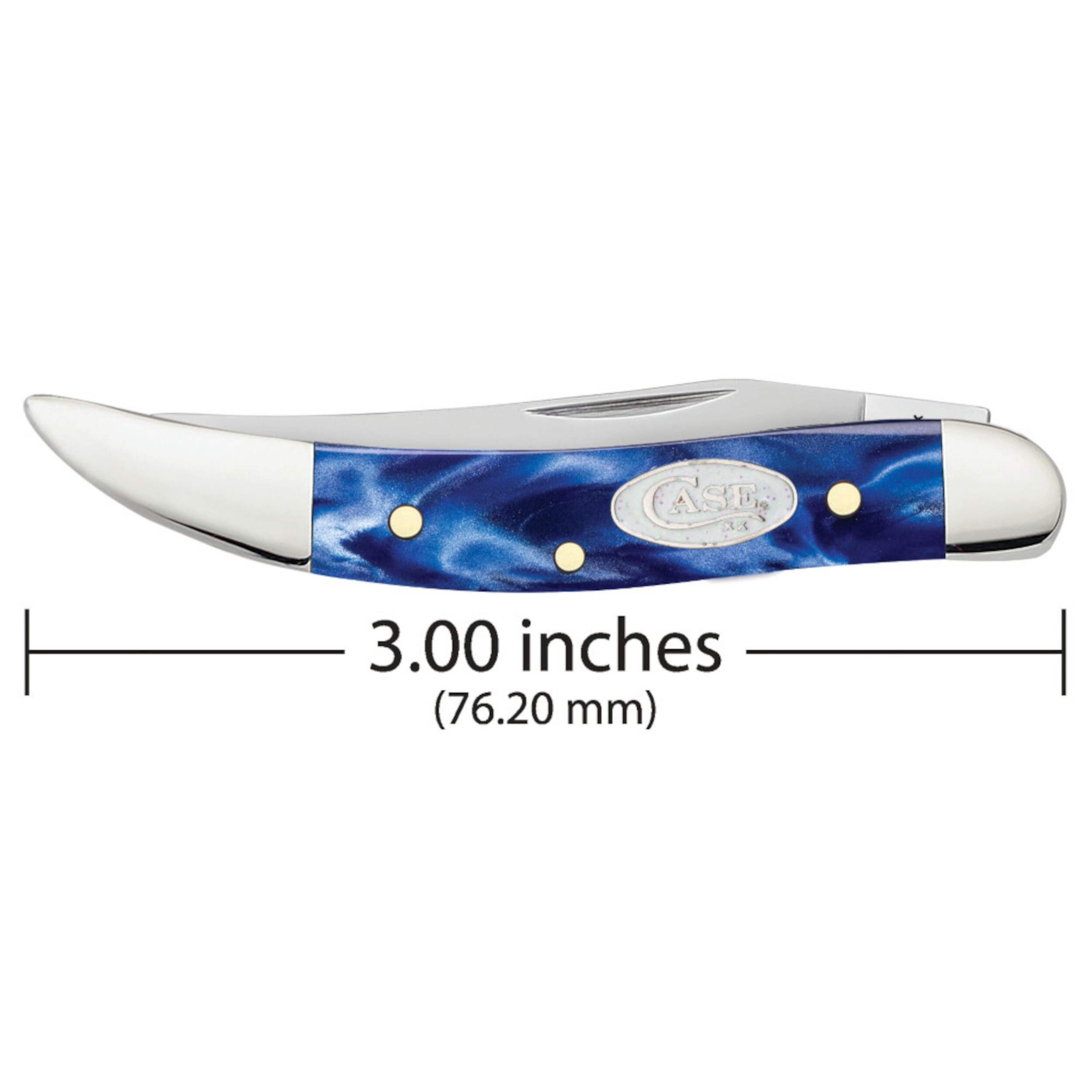 When you're out exploring the outdoors, take your Case SparXX Blue Kirinite® Small Texas Toothpick Knife with Long Clip Blade. This striking knife handle is made of durable Kirinite material that becomes more comfortable with use and is reminiscent of ocean waves. The case holds a stainless steel long clip blade that releases easily and is ideal for everyday tasks while camping, fishing or hiking. A great gift for the outdoorsman in your life, this Blue Pearl Kirinite® puts the spirit of the sea in the hand of its owner.