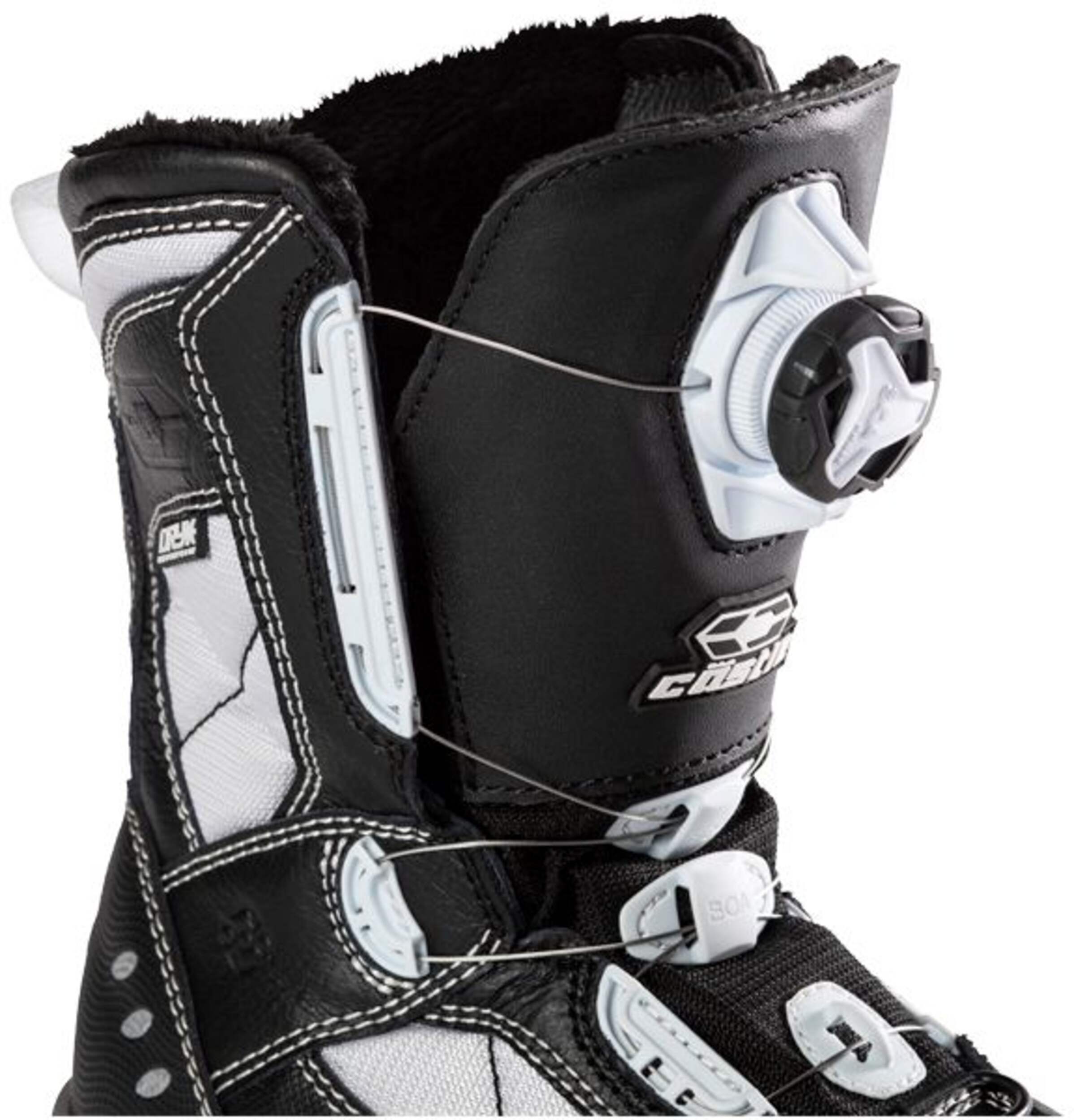 Castle X Women's Charge Boa Snowmobile Boots feature a 3-layer merino wool blend insulation with moisture wicking air mesh and perforated air trap foam to keep your feet warm and dry