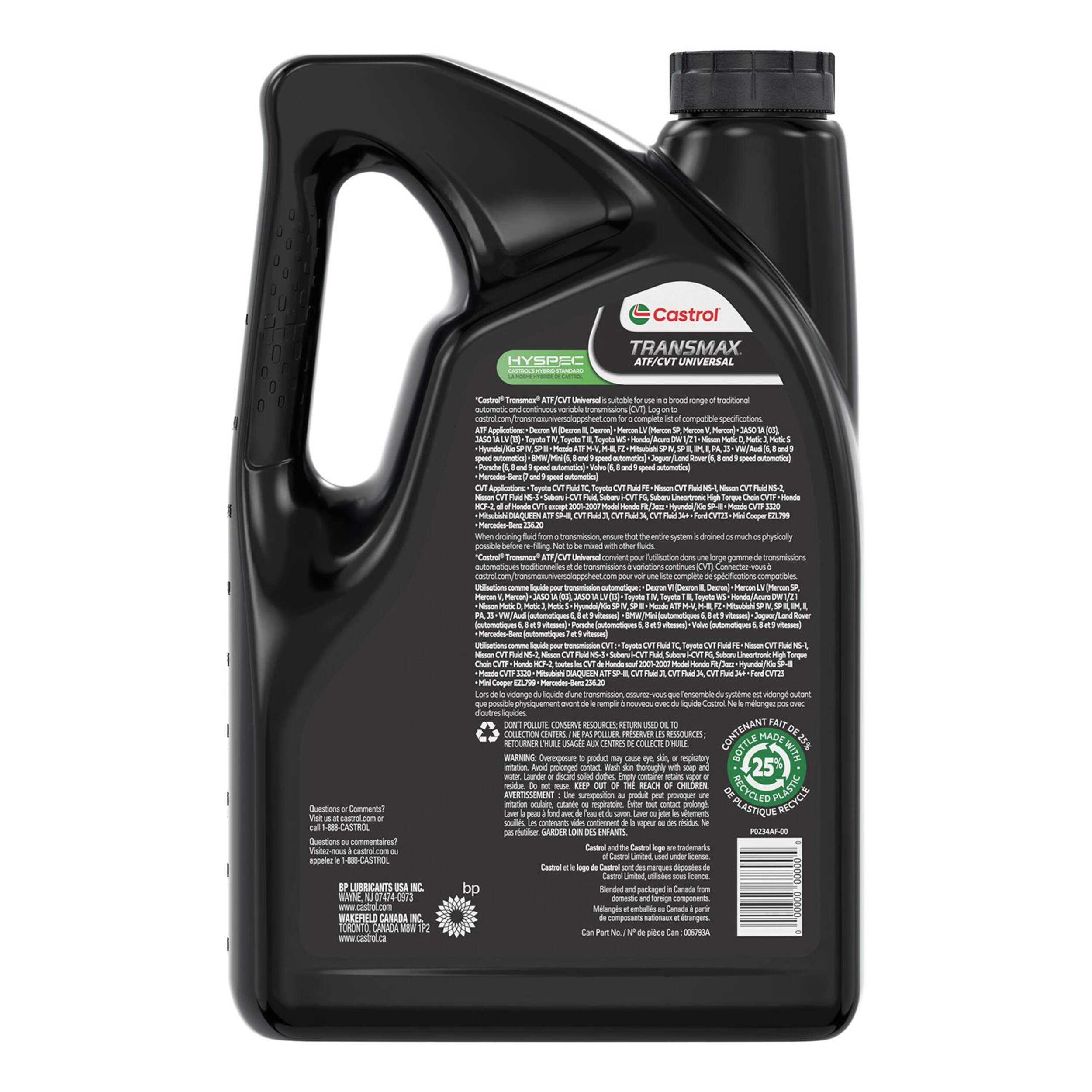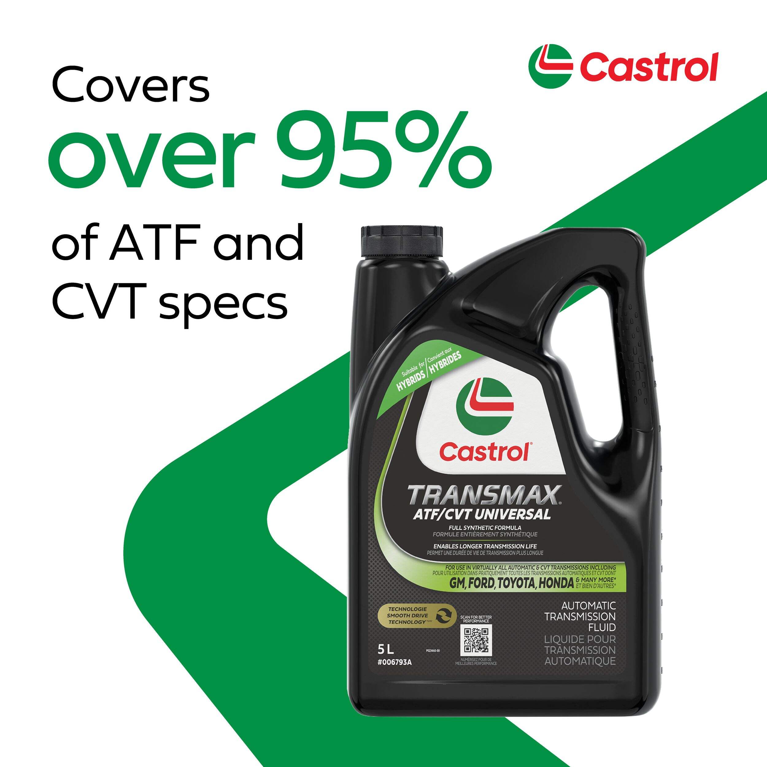 Castrol Transmax ATF/CVT Universal is a technologically advanced full synthetic formulation designed to deliver excellent performance in most of the traditional stepped automatic transmissions and Continuously Variable Transmissions currently in use. It is blended withpremium base oils and an additive package that utilizes Castrol Smooth Drive® Technology. This is the first Castrol multi-vehicle ATF suitable for use in both step-shifting and continuously variable automatic transmissions. Castrol Transmax® ATF/CVT Universal is suitable for use in vehicles manufactured in North & South America, Europe, and Asia.