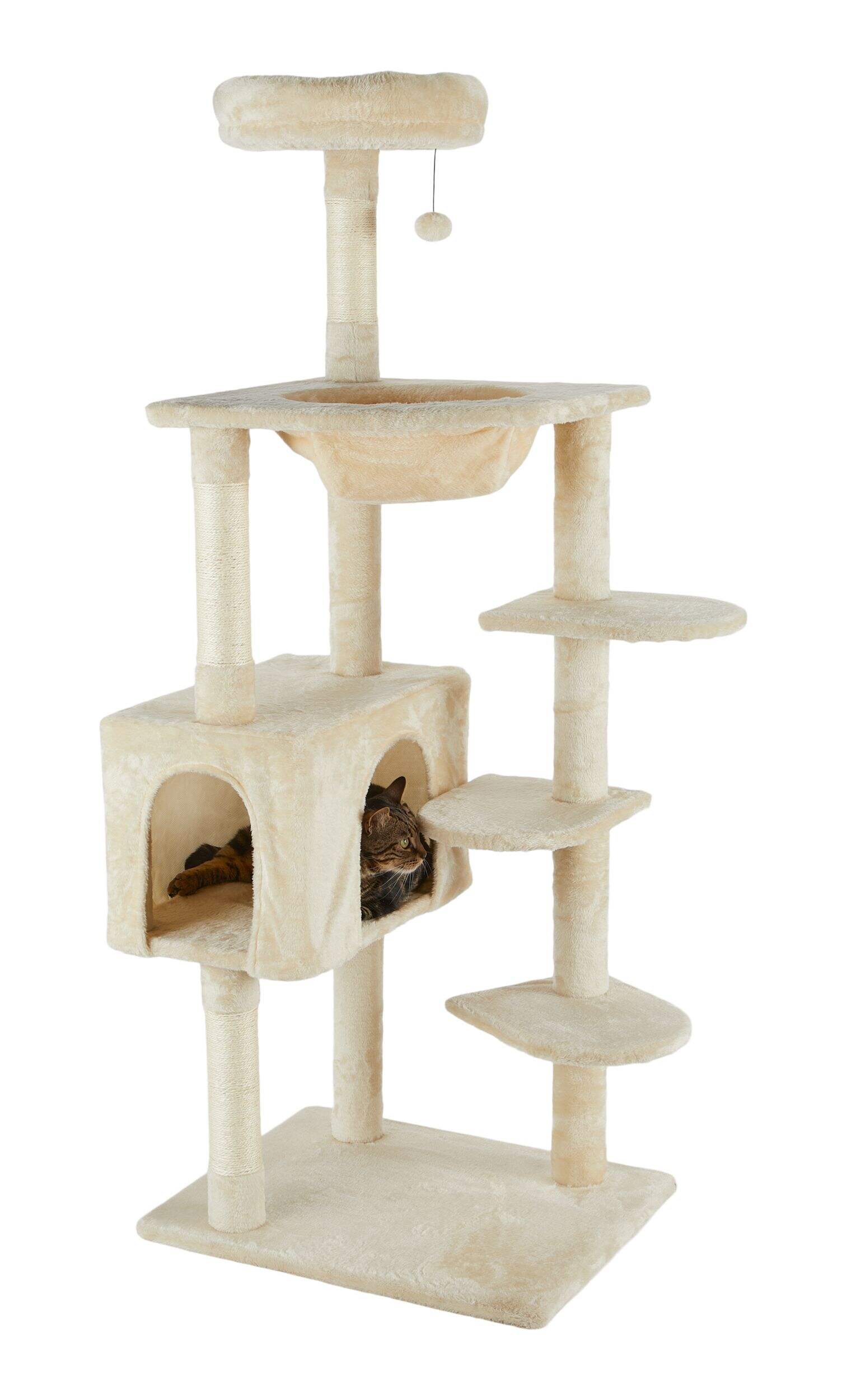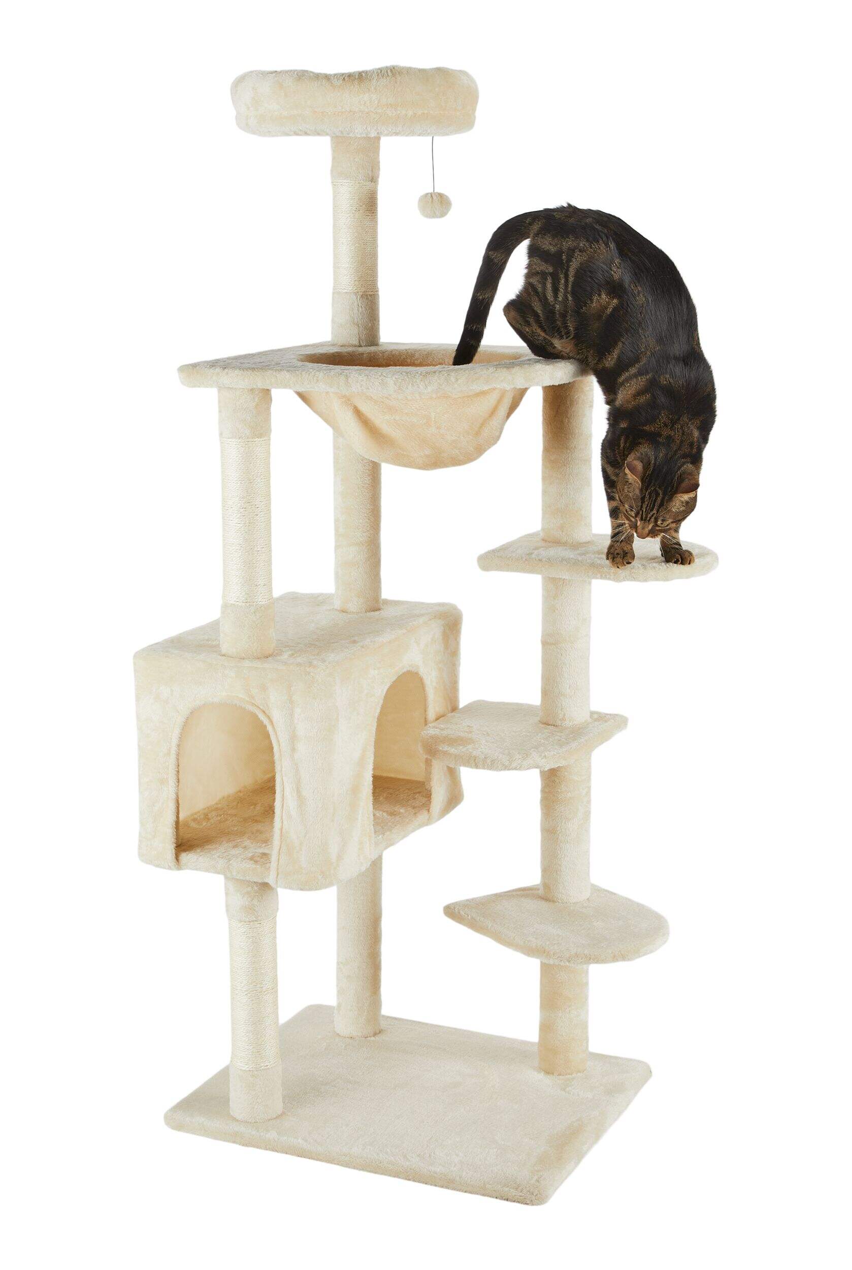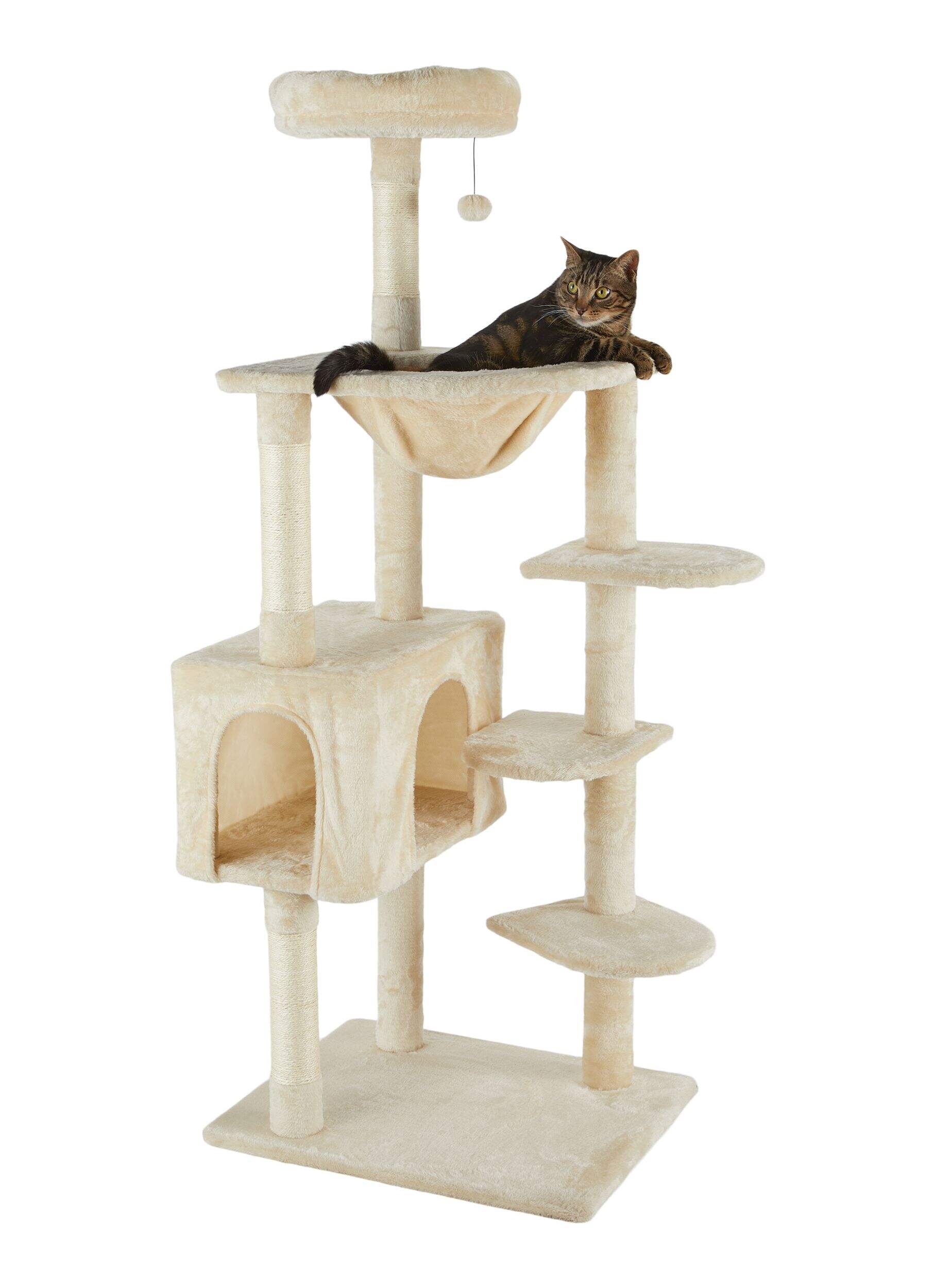 Multi-platform cat tower with condo, hammock, and multiple perches