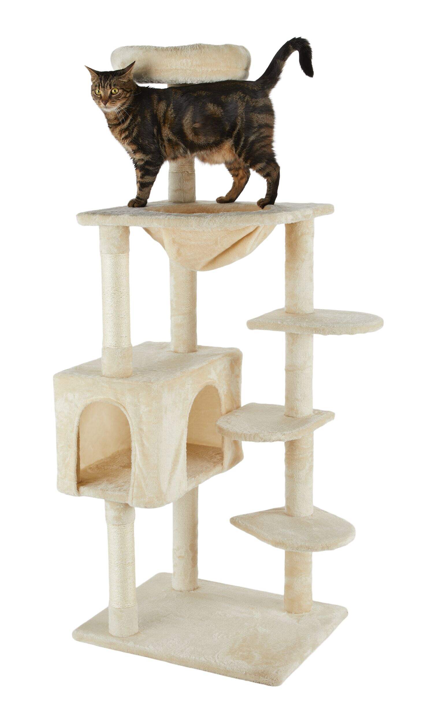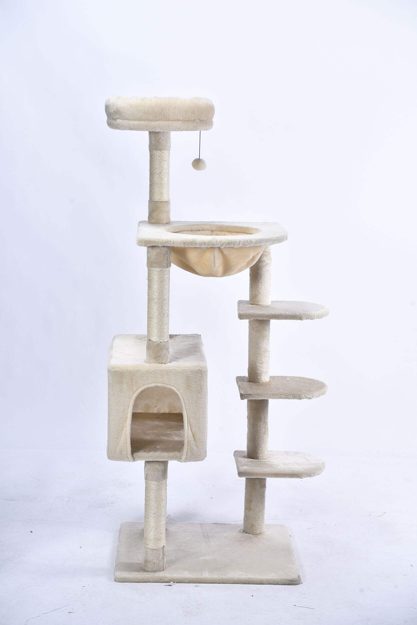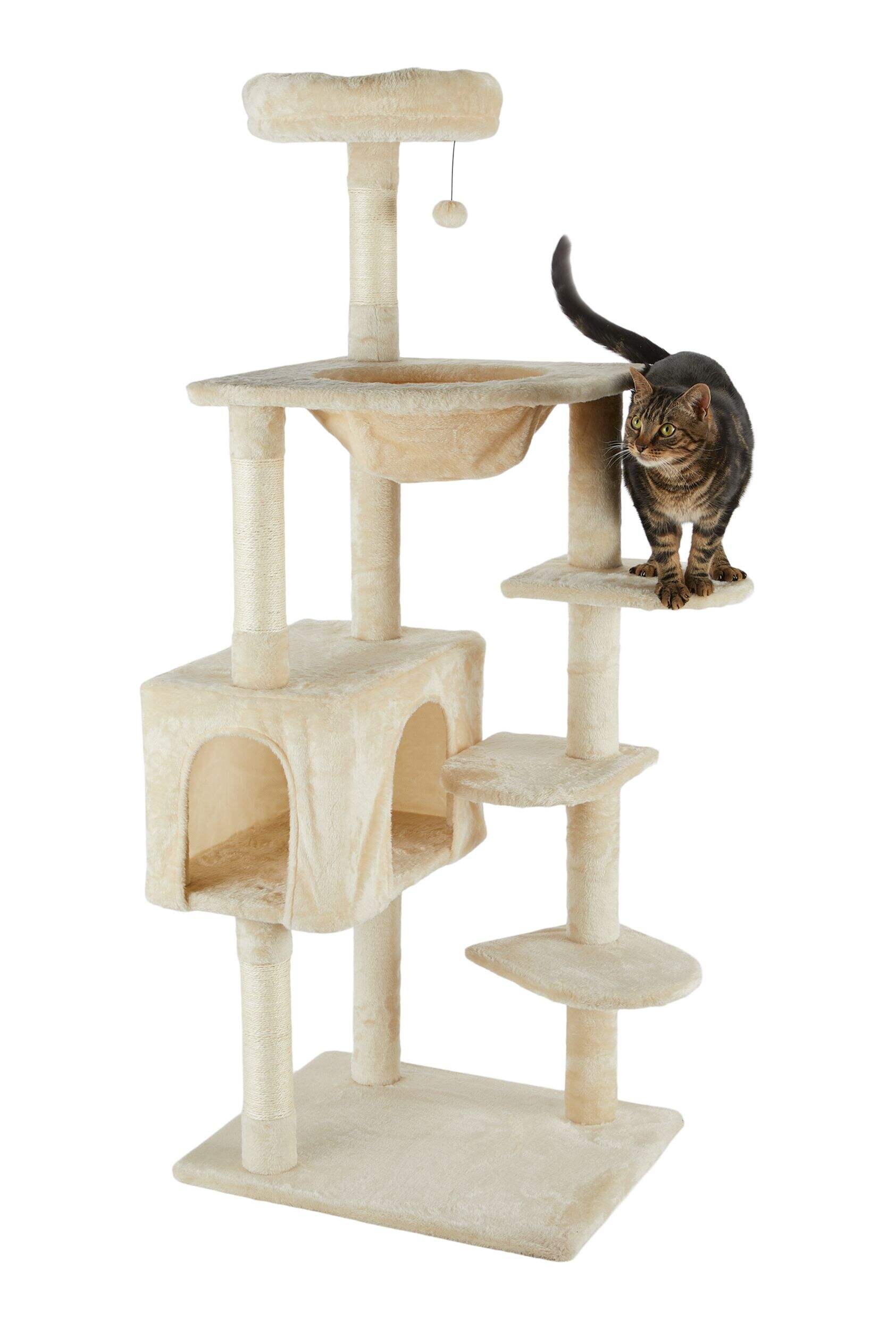 Multi-platform cat tower with condo, hammock, and multiple perches