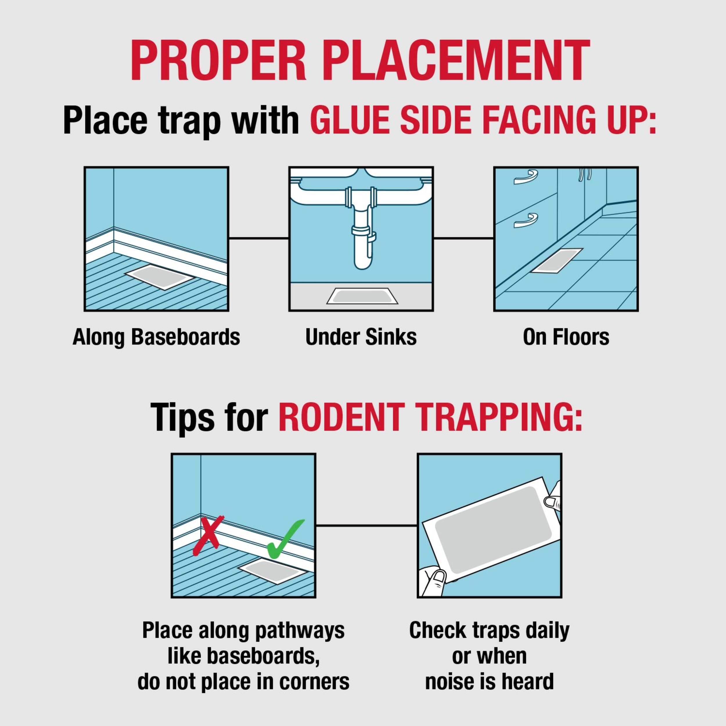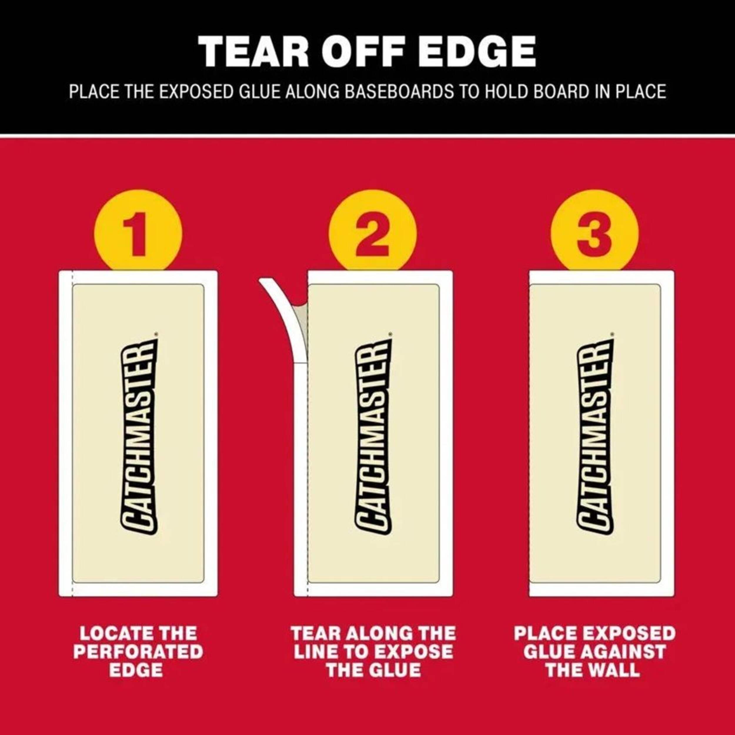 Perforated to tear off and place glue directly against baseboards to secure traps and prevent drag off