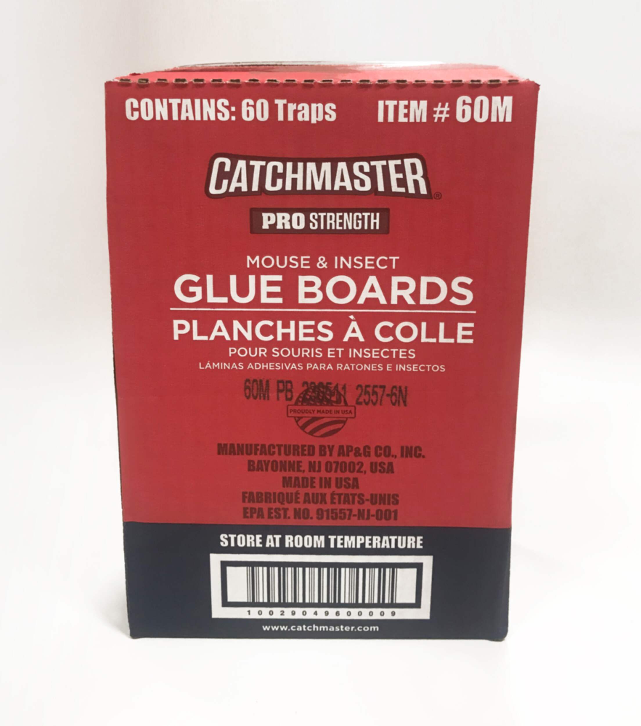 Catchmaster provides 60 bulk mouse and insect glue boards for catching pests without harsh chemicals. The large catching surface and pre-applied bait attract mice and insects to the non-toxic glue lining. The boards fold into a tunnel shape for use in tight spaces or dusty areas, and can also be inserted into Catchmaster Multi-Catch traps. Best of all, the disposable glue boards are humane, effective, and mess-free.