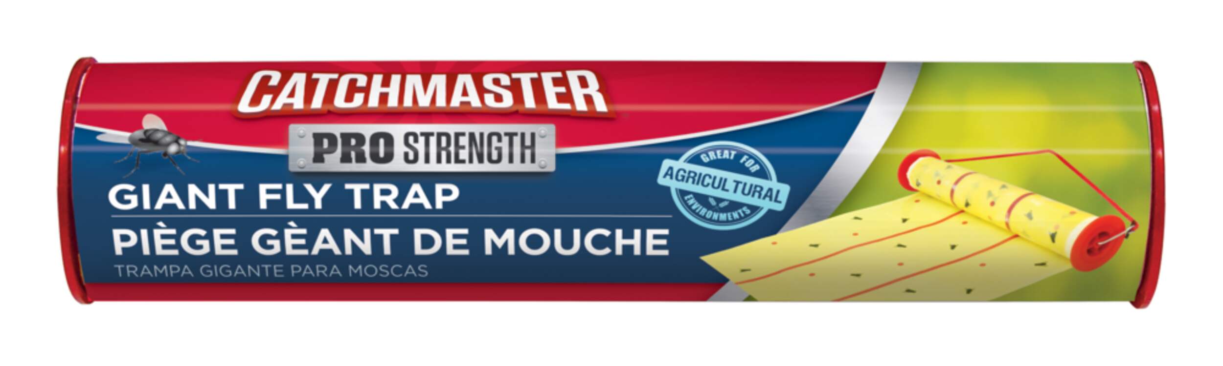 Catchmaster Giant Fly Glue Trap is recommended for use in barns, waste rooms, animal farms and other high fly infestation areas. 30 foot roll, 1 sided adhesive.