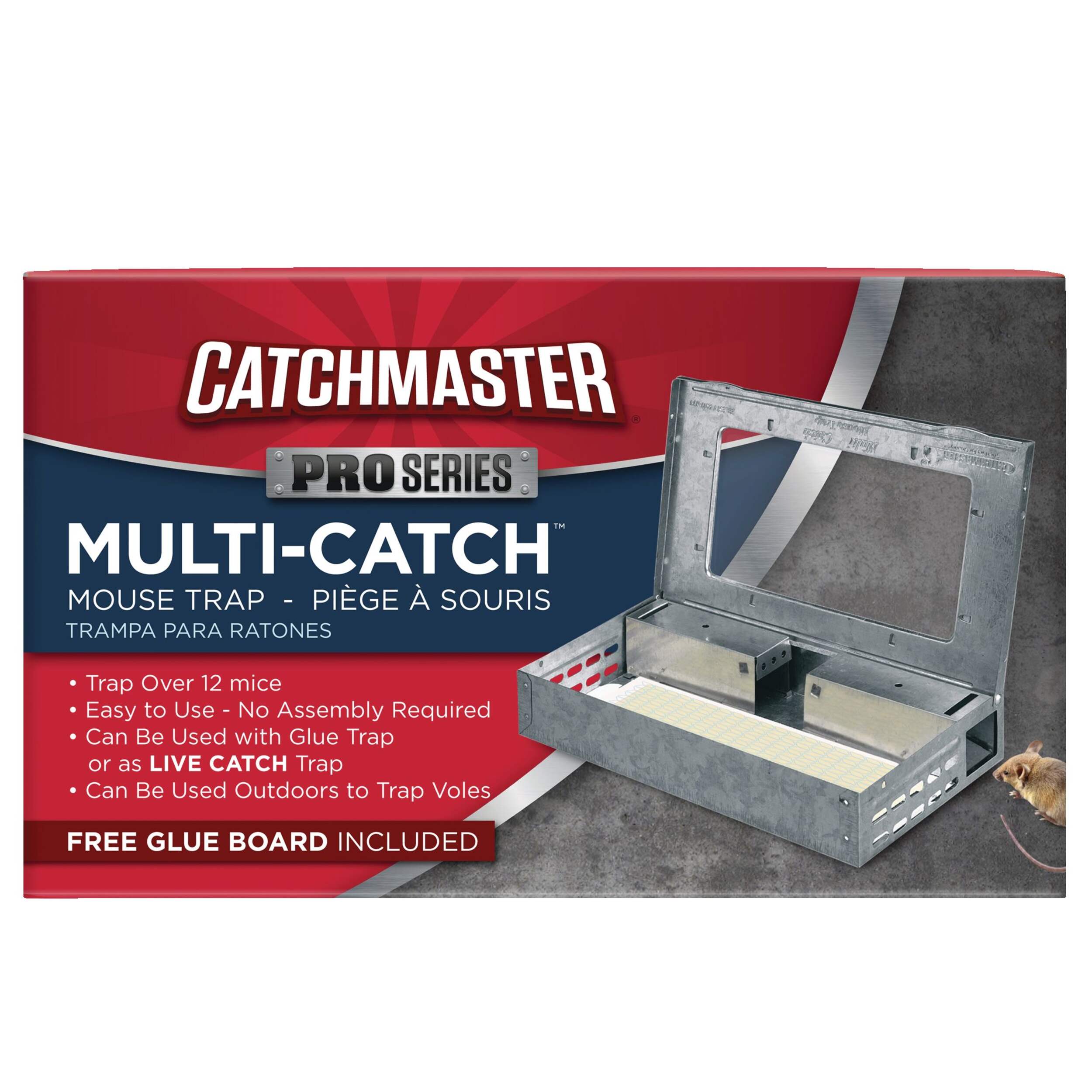 The Catchmaster Pro Series Multi-Catch Mouse Trap & Glue Board is made with AP&G’s legendary non-toxic glue formula and sturdy metal for lasting performance. The boards are sticky enough to catch mice, but not enough to cause a nuisance for you and your pets. Combining glue boards with a multi-catch metal cage provides a great option for dry and/or dusty locations where glue trays and other traps might get contaminated.