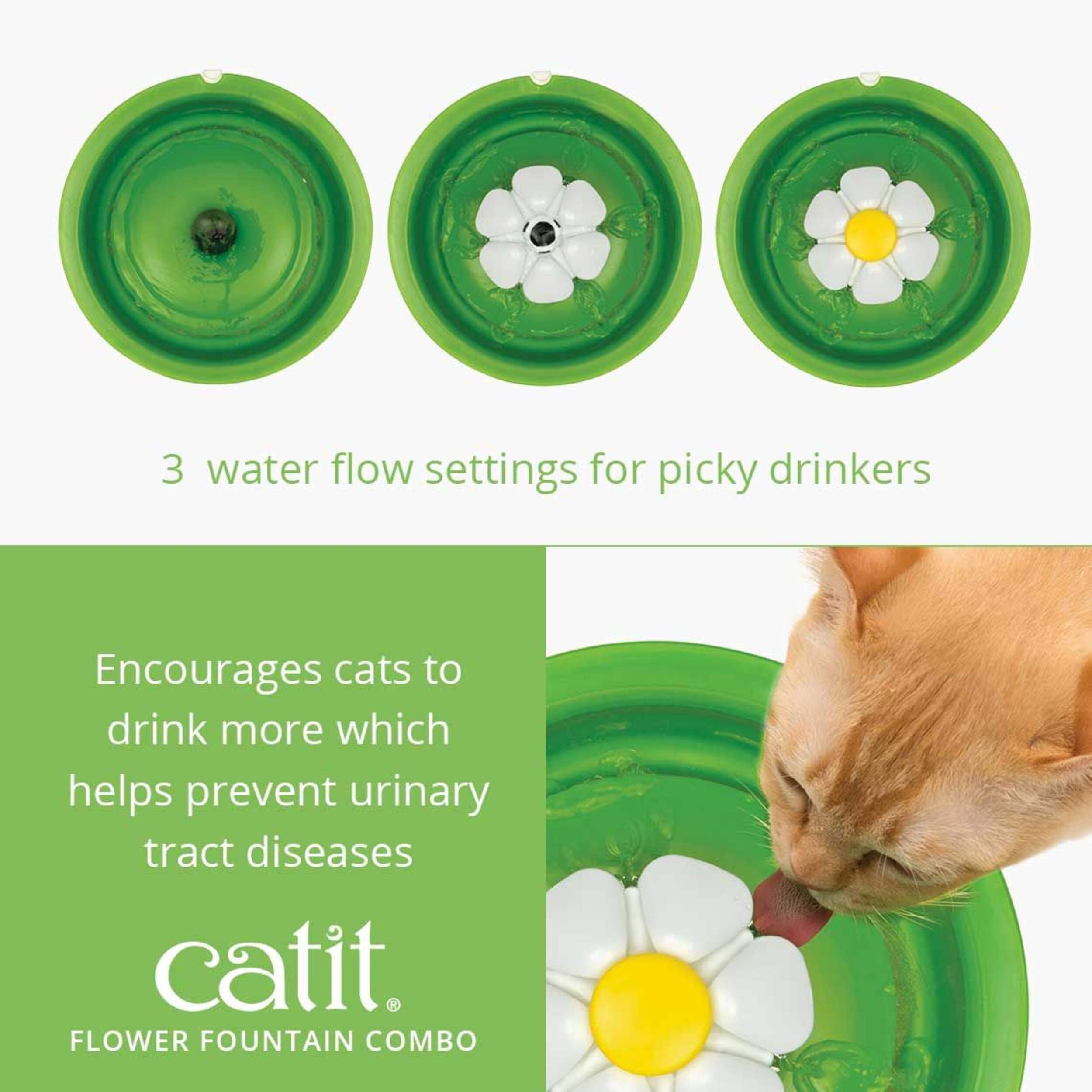 Unique design allows up to 3 different water flow settings to appeal to picky drinkers