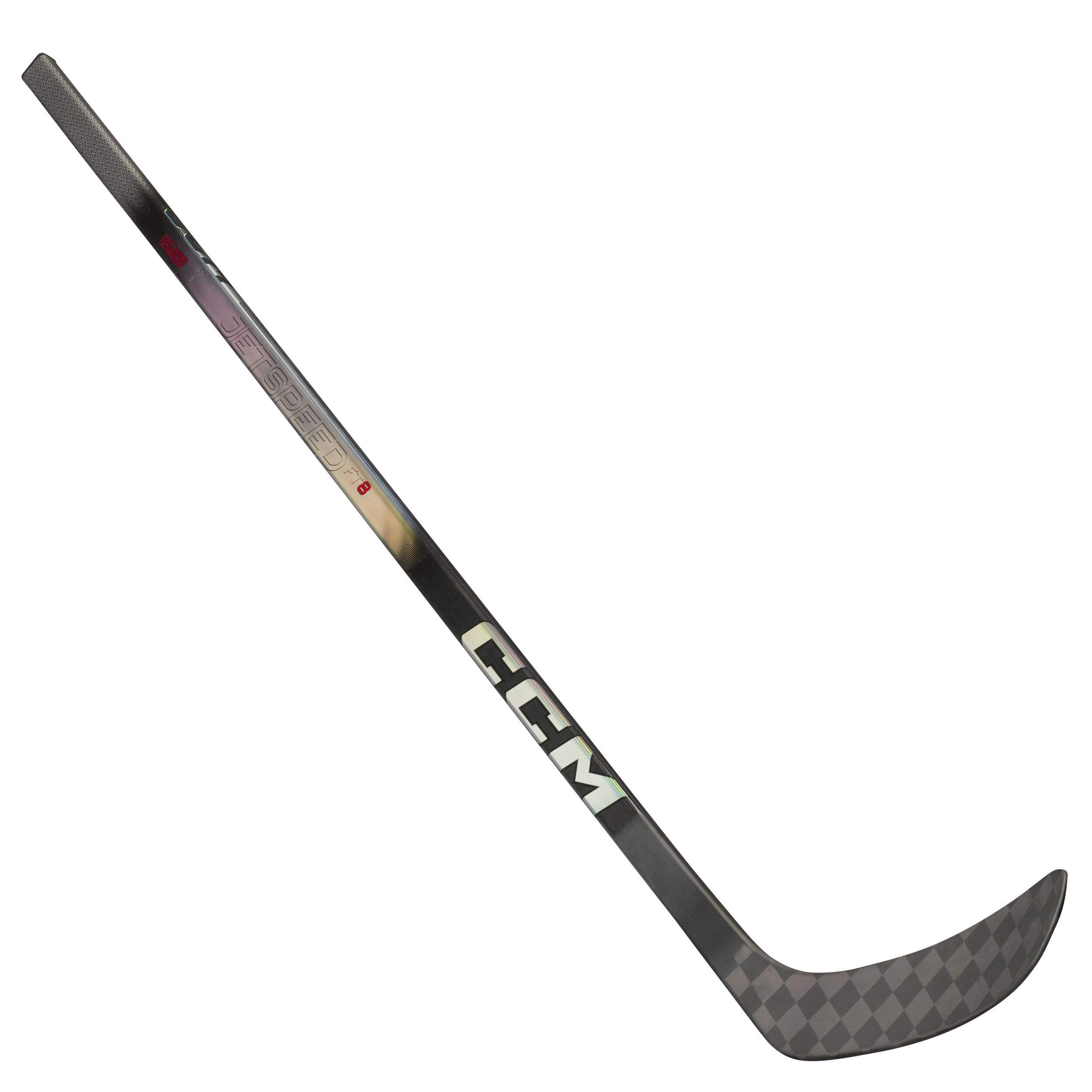 Introducing the CCM Jetspeed FT8 hockey stick where cutting-edge technology meets exceptional performance for the dedicated player. The HYBRID KICKPOINT creates a hinge effect, allowing you to load the stick with a perfect blend of speed and response. Crafted with PURE CARBON TECHNOLOGY, this stick is both incredibly light and remarkably strong. The ROUND “R” GEOMETRY shaft features a streamlined shape with rounded corners and concave sides, delivering high performance and ultimate comfort. SKELETON + Taper Technology enhances reliability in key moments, ensuring your stick performs when it matters most. The JF-90 BLADE is lightweight and stiff, designed to provide heightened puck feel without compromising shot speed and control. Made from PURE CARBON SHAFT and SIGMATEX SPREAD TOW BLADE, this stick offers top-tier durability and performance. With a blank NAMEBAR for easy personalization, you can make this stick truly yours. Elevate your game with this stick and experience the perfect fusion of innovation, comfort, and precision on the ice.