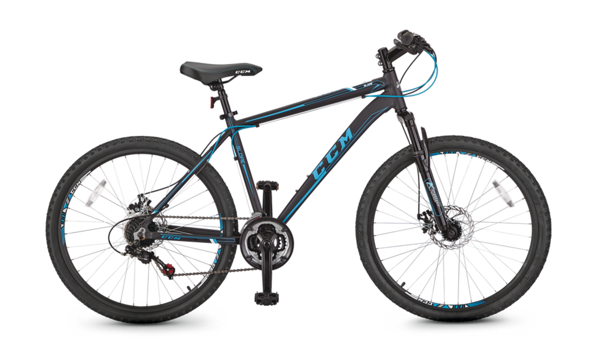 The CCM Slope 26" Hardtail Mountain Bike will get you where you need to go. This bike is packed with features, including a front suspension fork that will ensure a great riding experience through the trails and beyond. Equipped with a 21-speed Shimano EZ-Fire shifting system, the Slope ensures smooth and accurate shifting for those steep climbs and fast descents. Double-wall rims ensure strong wheels to conquer the tough terrain ahead and the disc brakes make sure you have great stopping power in any condition.