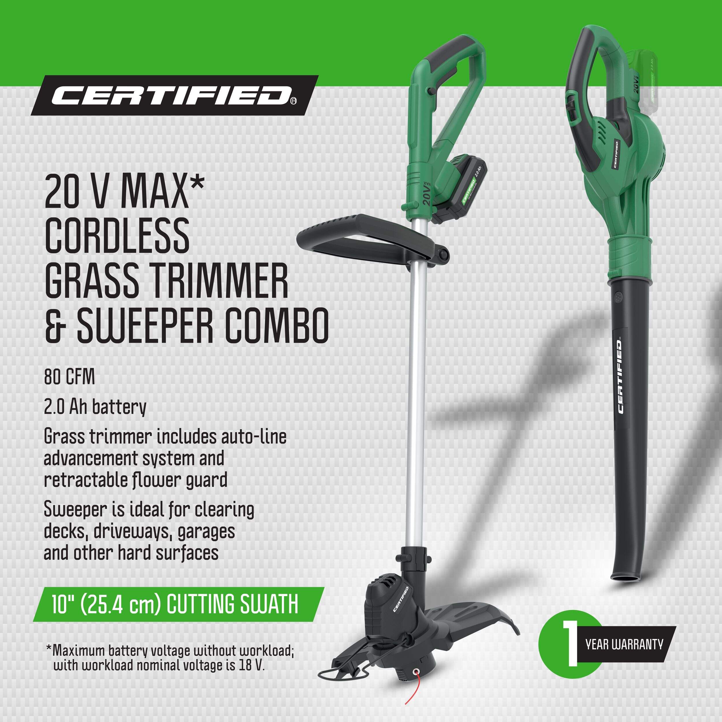 Keep your outdoor spaces pristine with the Certified Cordless Line Grass Trimmer and Sweeper Combo. Designed for hassle-free maintenance, this lightweight, battery-powered set offers the flexibility to trim grass edges with precision and effortlessly clear clippings from driveways, patios, and gardens. Cordless convenience and a shared battery system let you switch seamlessly between tasks without interruption.