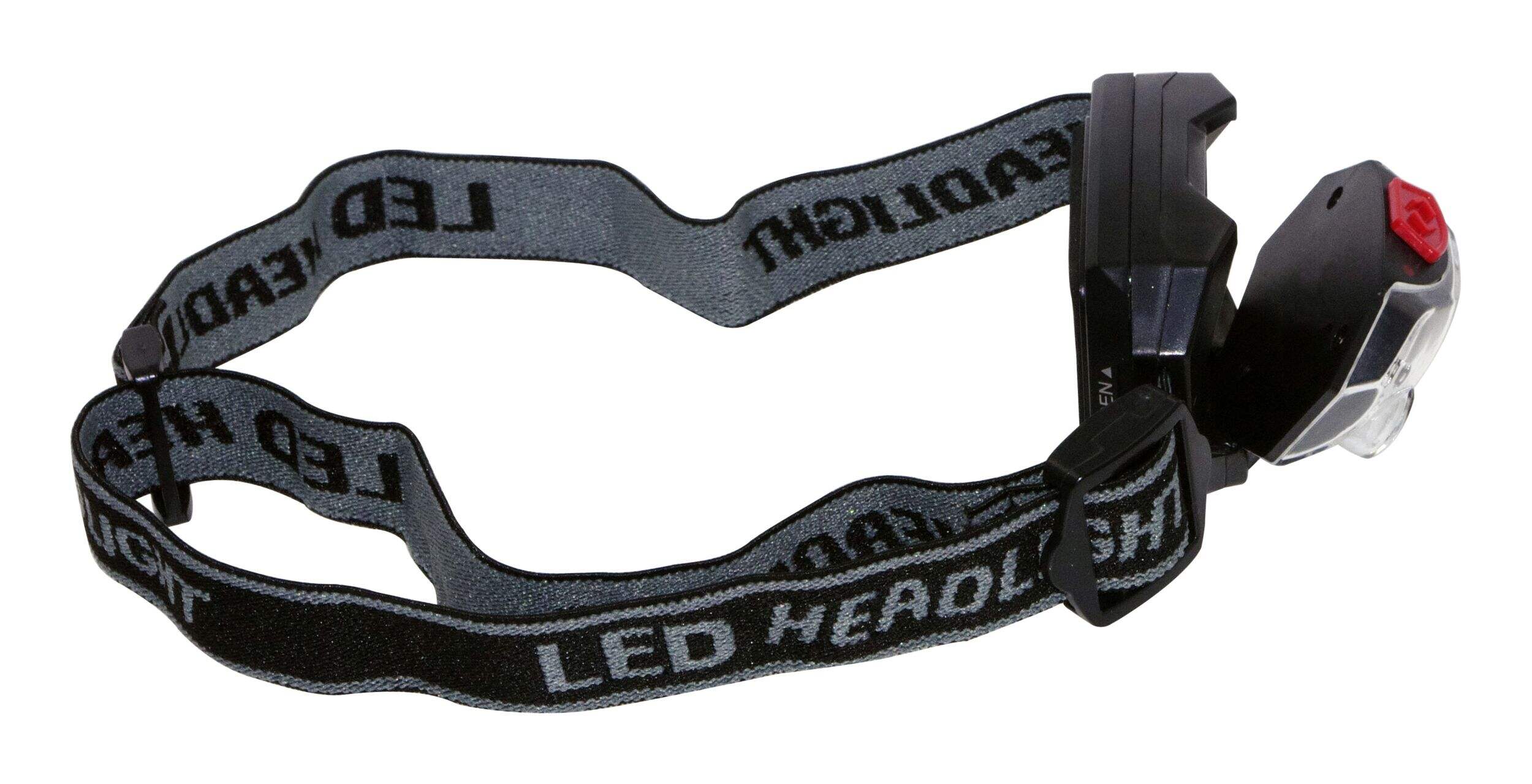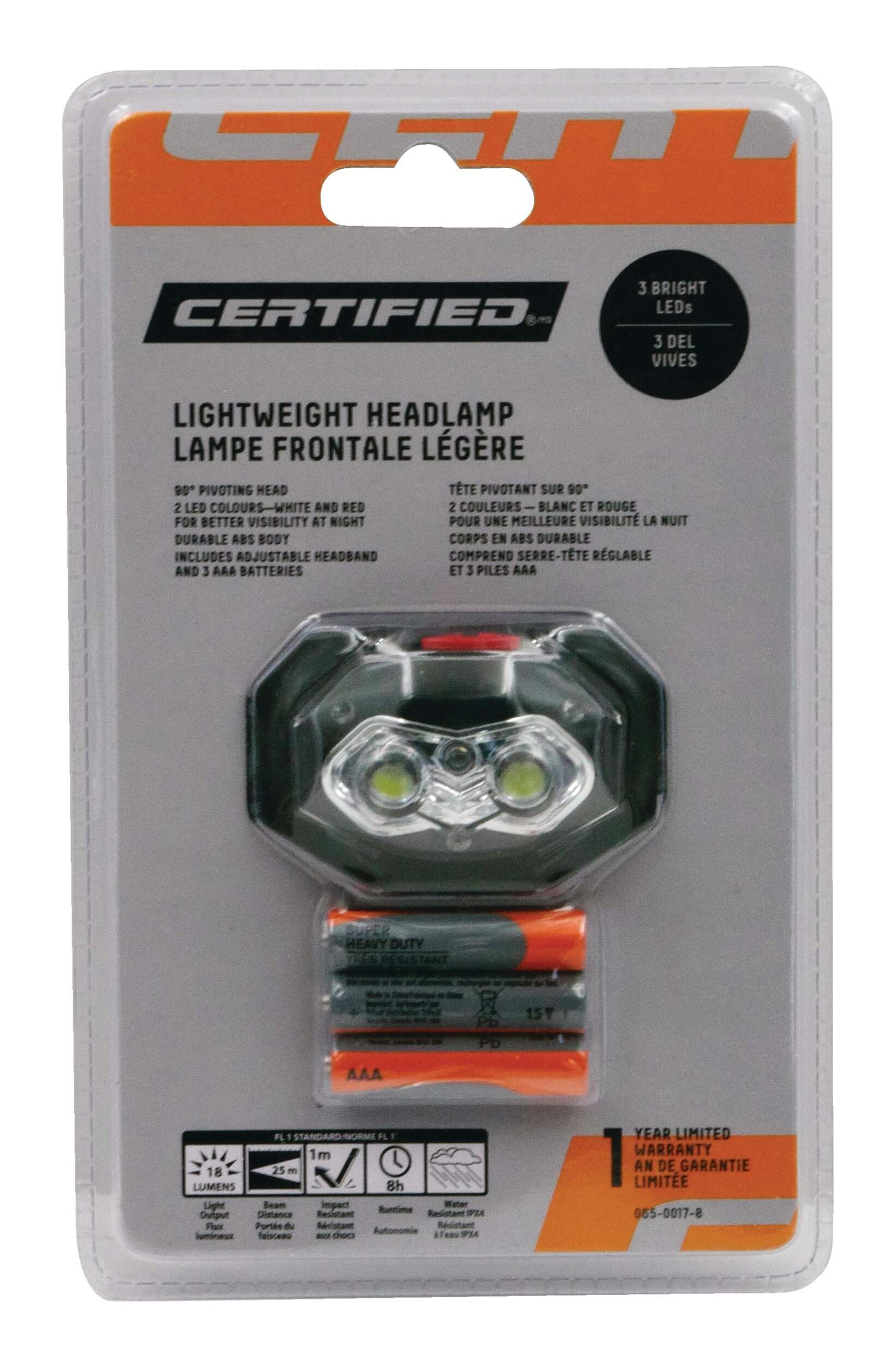 Certified Lightweight Pivot Headlamp features three LED’s; two white and one red for night vision