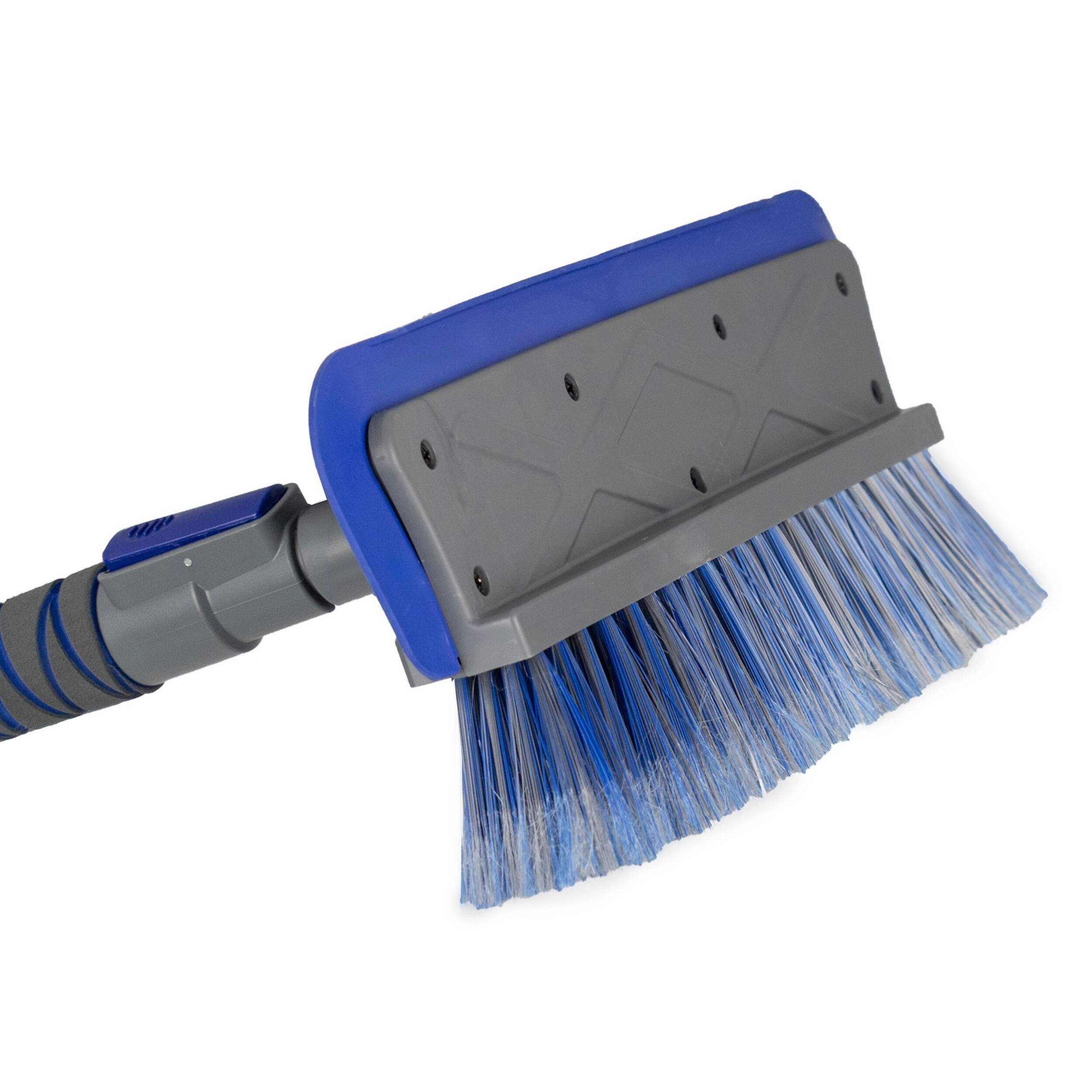 The Certified Telescopic 3-in-1 Snow Brush is a multi-purpose tool that makes snow removal simple while also offering the convenience of a car scraper, squeegee, and brush all at once. This snow brush has an ABS ice scraper on one end with a soft-bristled cleaning brush and a built-in squeegee blade on the other to make snow removal a breeze. Featuring an ergonomic handle with comfortable grips and an external lock, this reliable snow brush helps you stay secure when brushing, scraping, or wiping your vehicle.