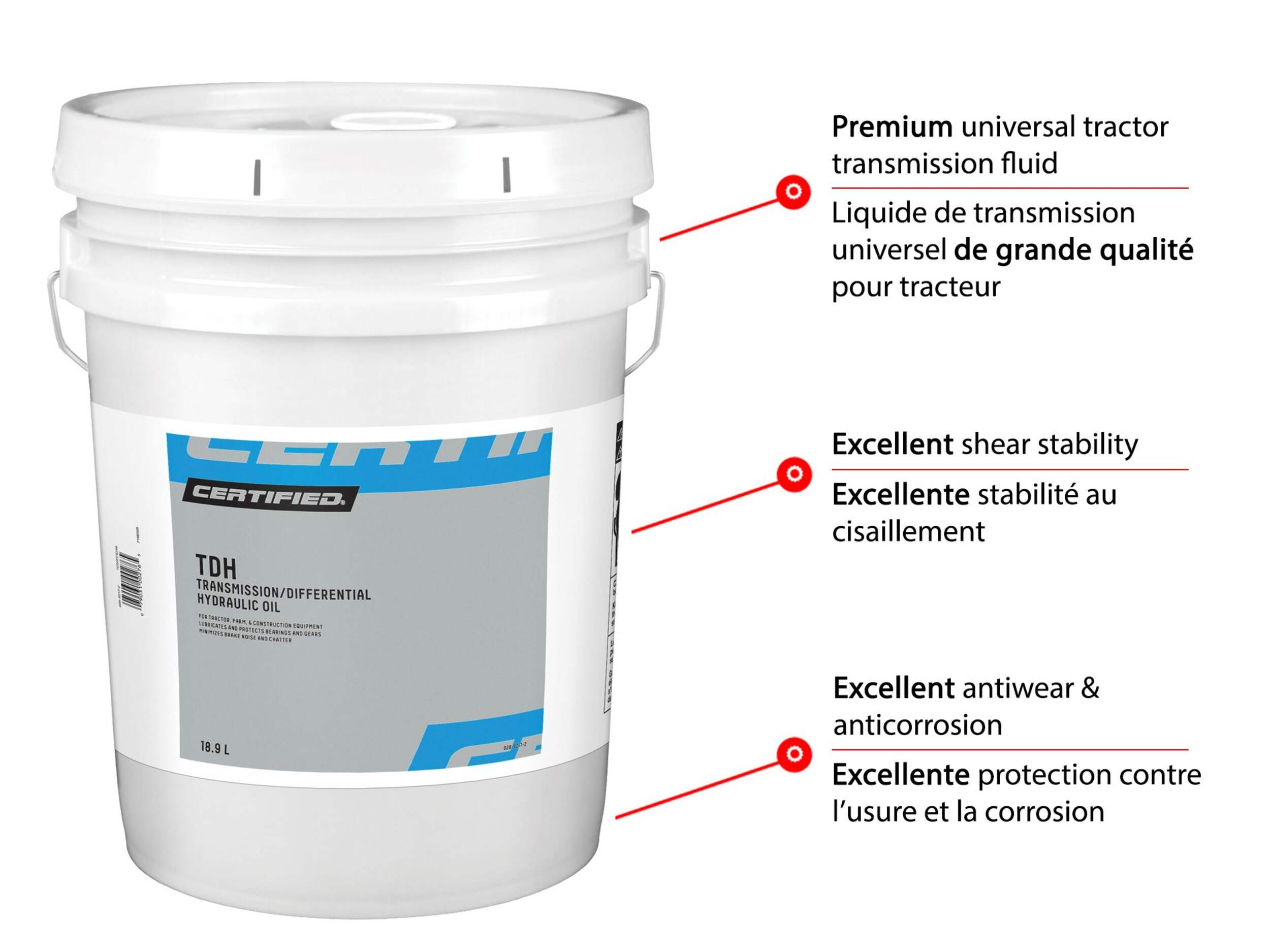 Excellent shear stability, anti-wear, anti-corrosion, and anti-foam properties to protect tractor systems