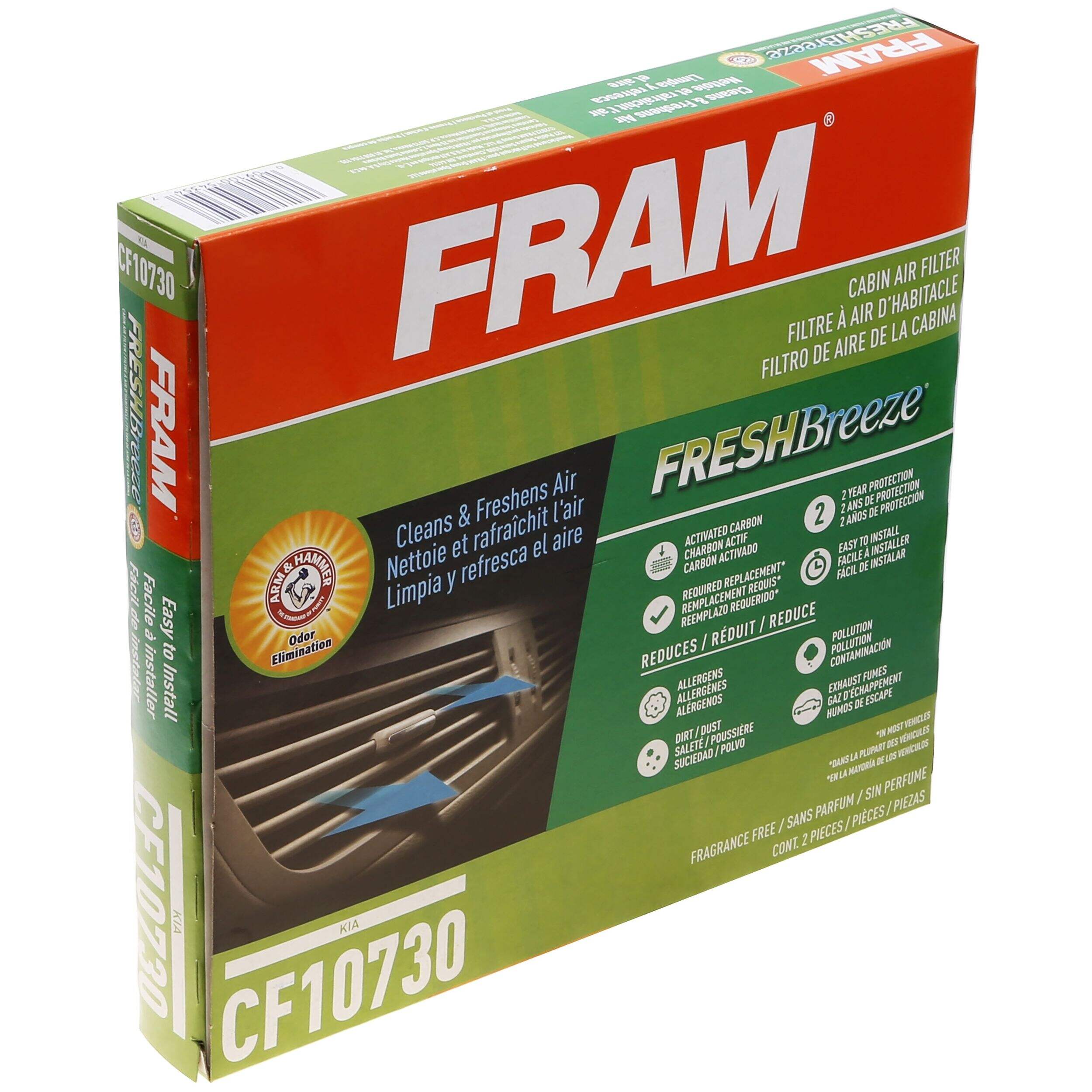 You and your passengers can breathe easier with FRAM® Fresh Breeze cabin air filters. These easy-to-install, fragrance-free air filters are designed to prevent up to 98% of road dust and pollen particles from entering your vehicle. They are the only activated carbon cabin air filters that harness the natural deodorizing properties of ARM & HAMMER™ baking soda to help clean and freshen the air throughout your vehicle.