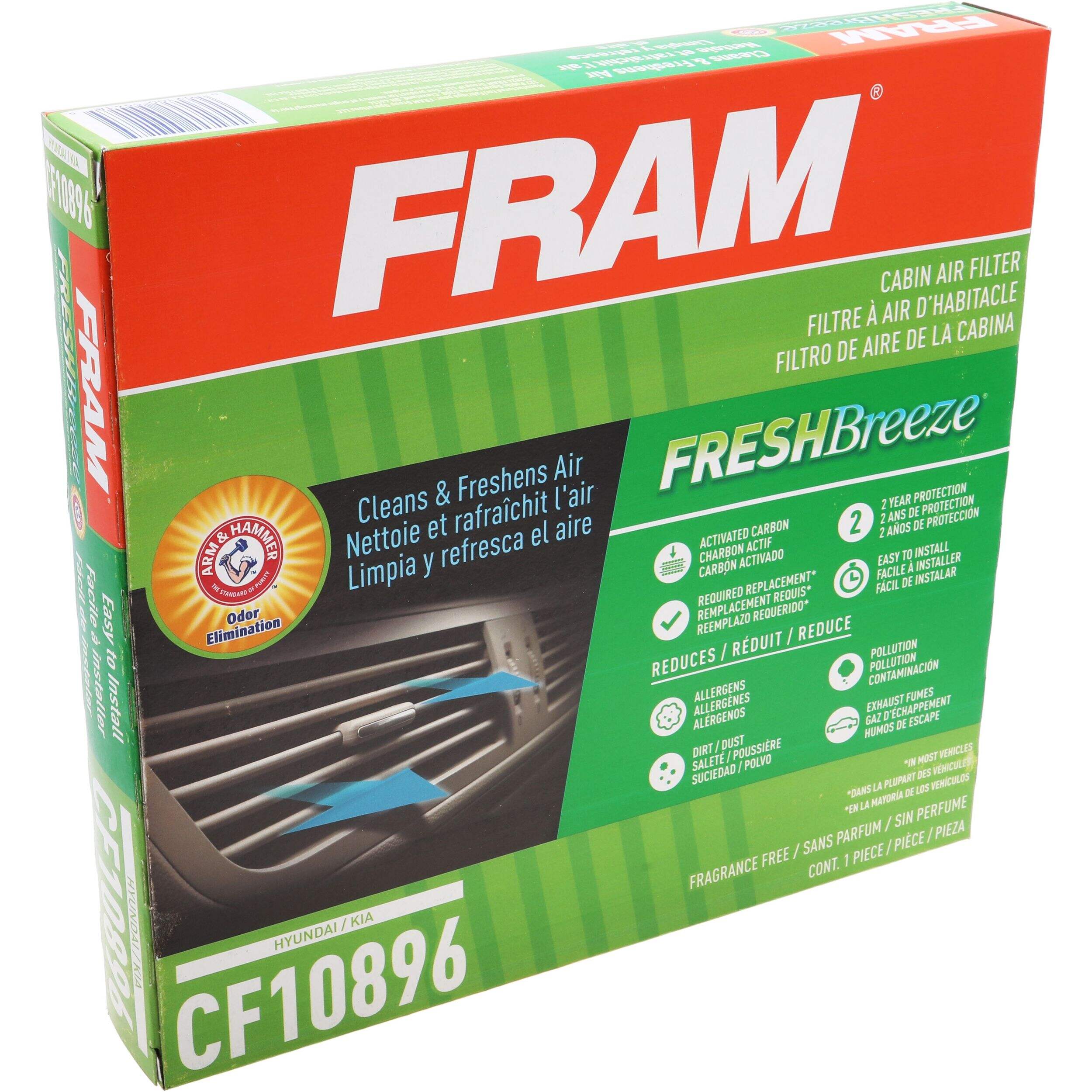 You and your passengers can breathe easier with FRAM® Fresh Breeze cabin air filters. These easy-to-install, fragrance-free air filters are designed to prevent up to 98% of road dust and pollen particles from entering your vehicle. They are the only activated carbon cabin air filters that harness the natural deodorizing properties of ARM & HAMMER™ baking soda to help clean and freshen the air throughout your vehicle.