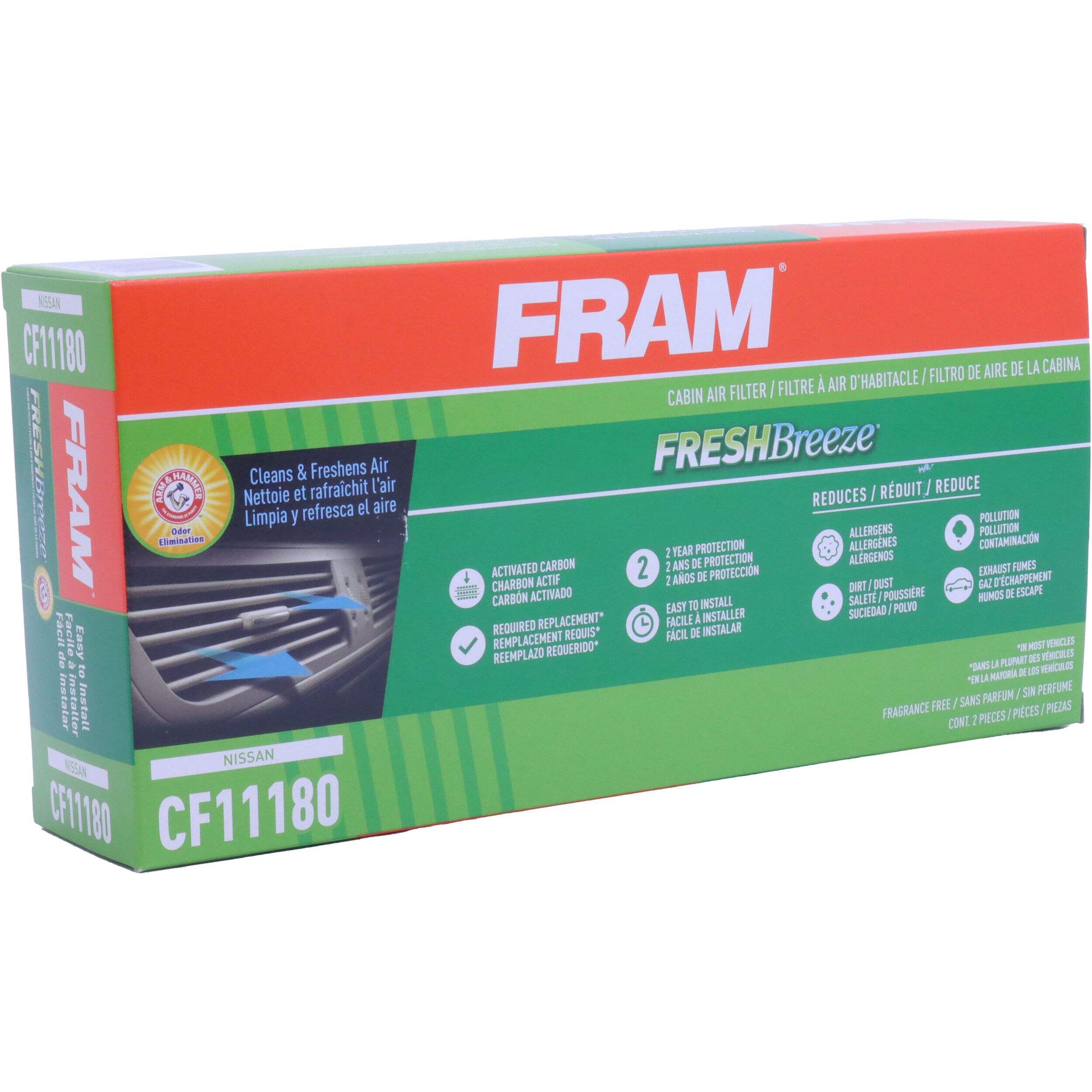 You and your passengers can breathe easier with FRAM® Fresh Breeze cabin air filters. These easy-to-install, fragrance-free air filters are designed to prevent up to 98% of road dust and pollen particles from entering your vehicle. They are the only activated carbon cabin air filters that harness the natural deodorizing properties of ARM & HAMMER™ baking soda to help clean and freshen the air throughout your vehicle.