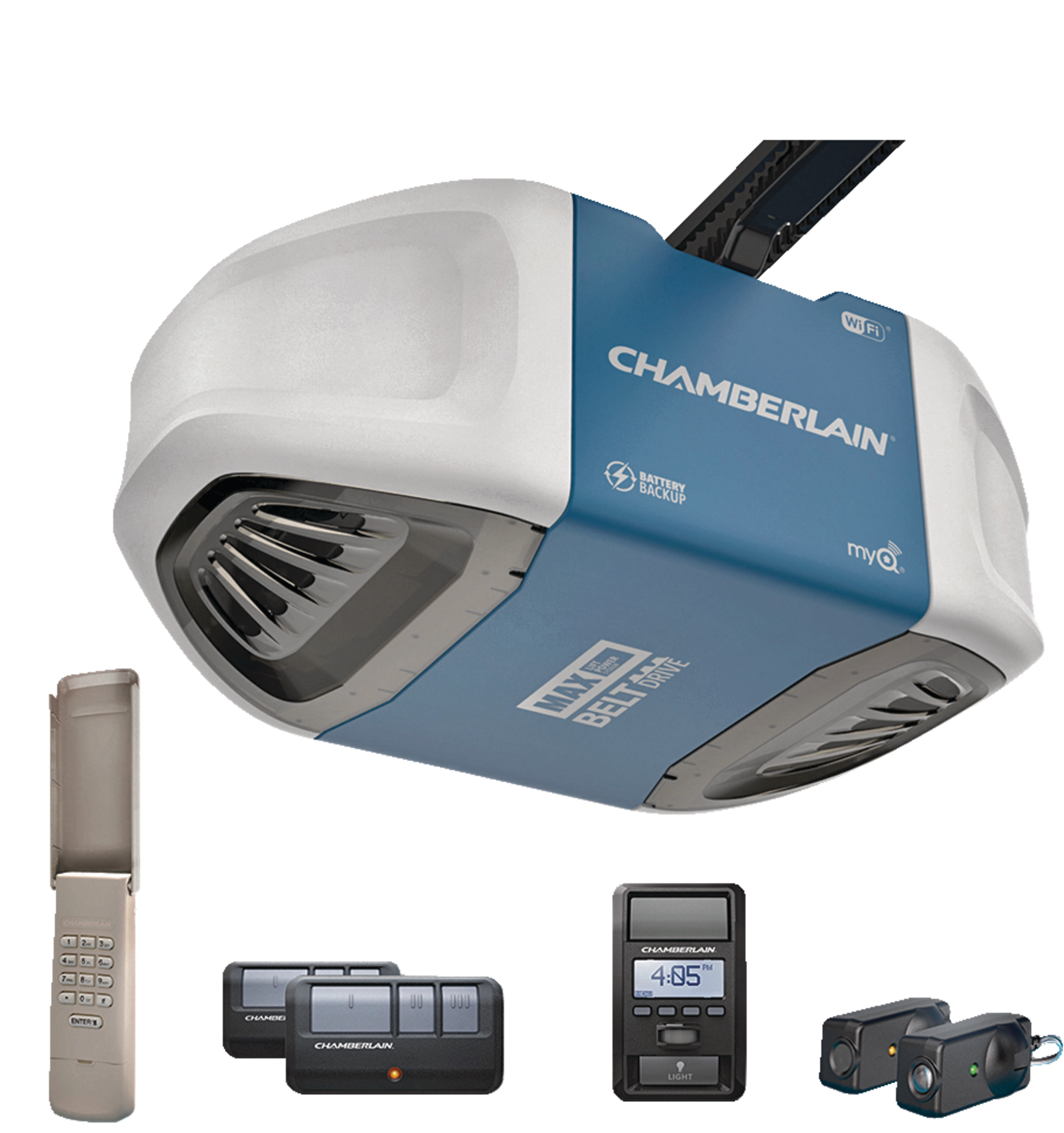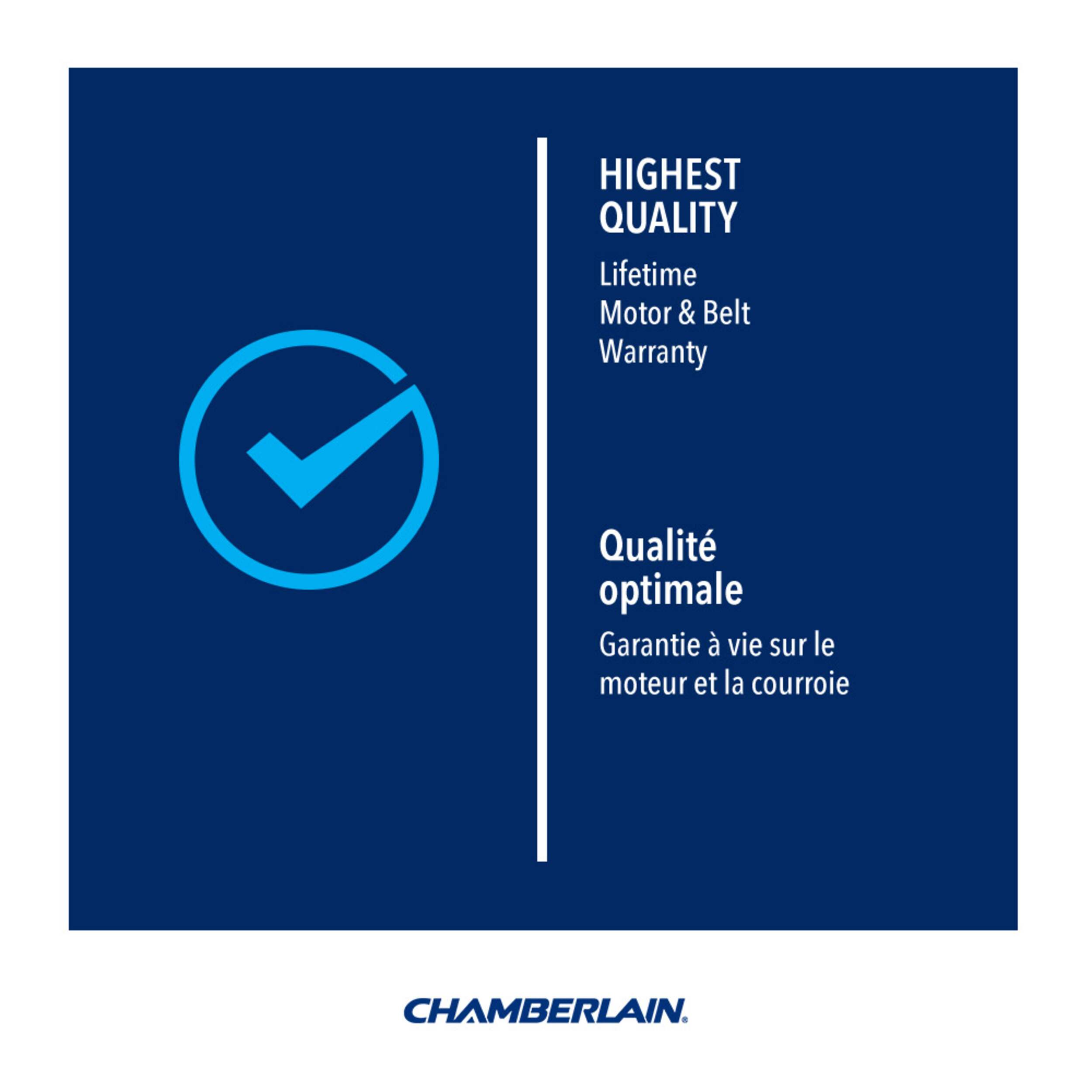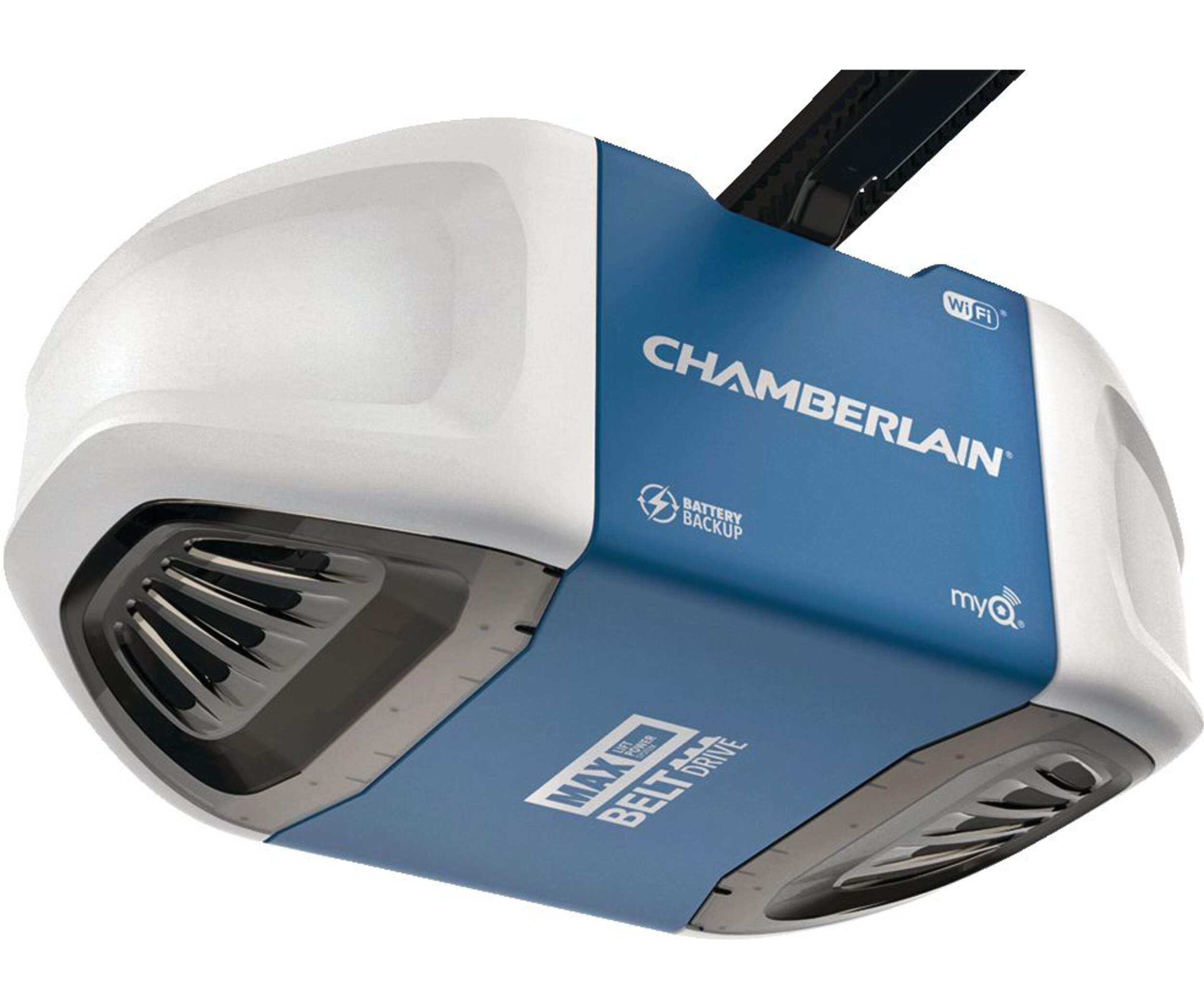 Chamberlain® 1-1/4-HP Belt Garage Door Opener with MyQ® smartphone technology offers maximum lifting power