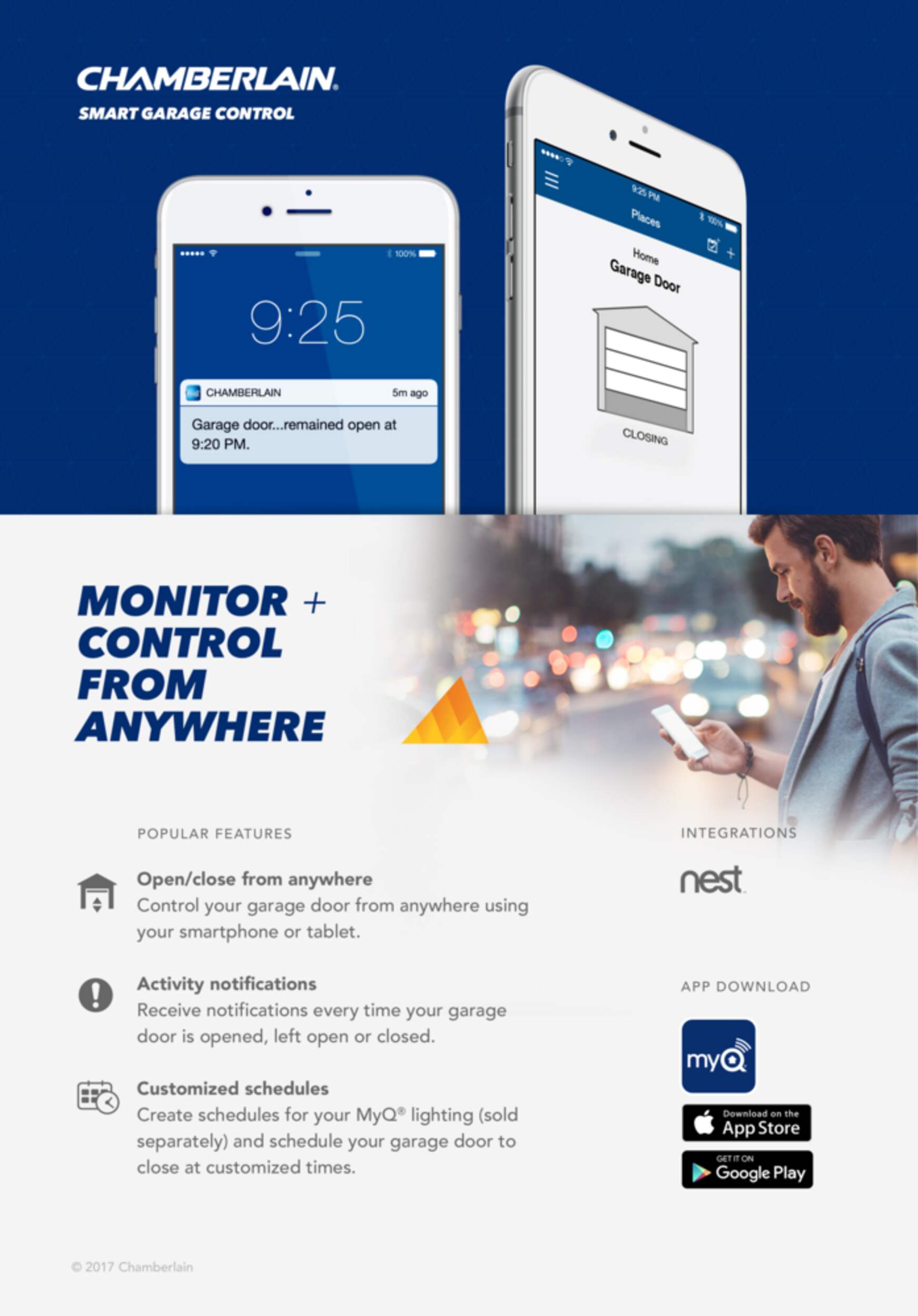 MyQ® smartphone technology allows you to connect with your home from anywhere using your smartphone; allowing you to monitor and control your garage door remotely