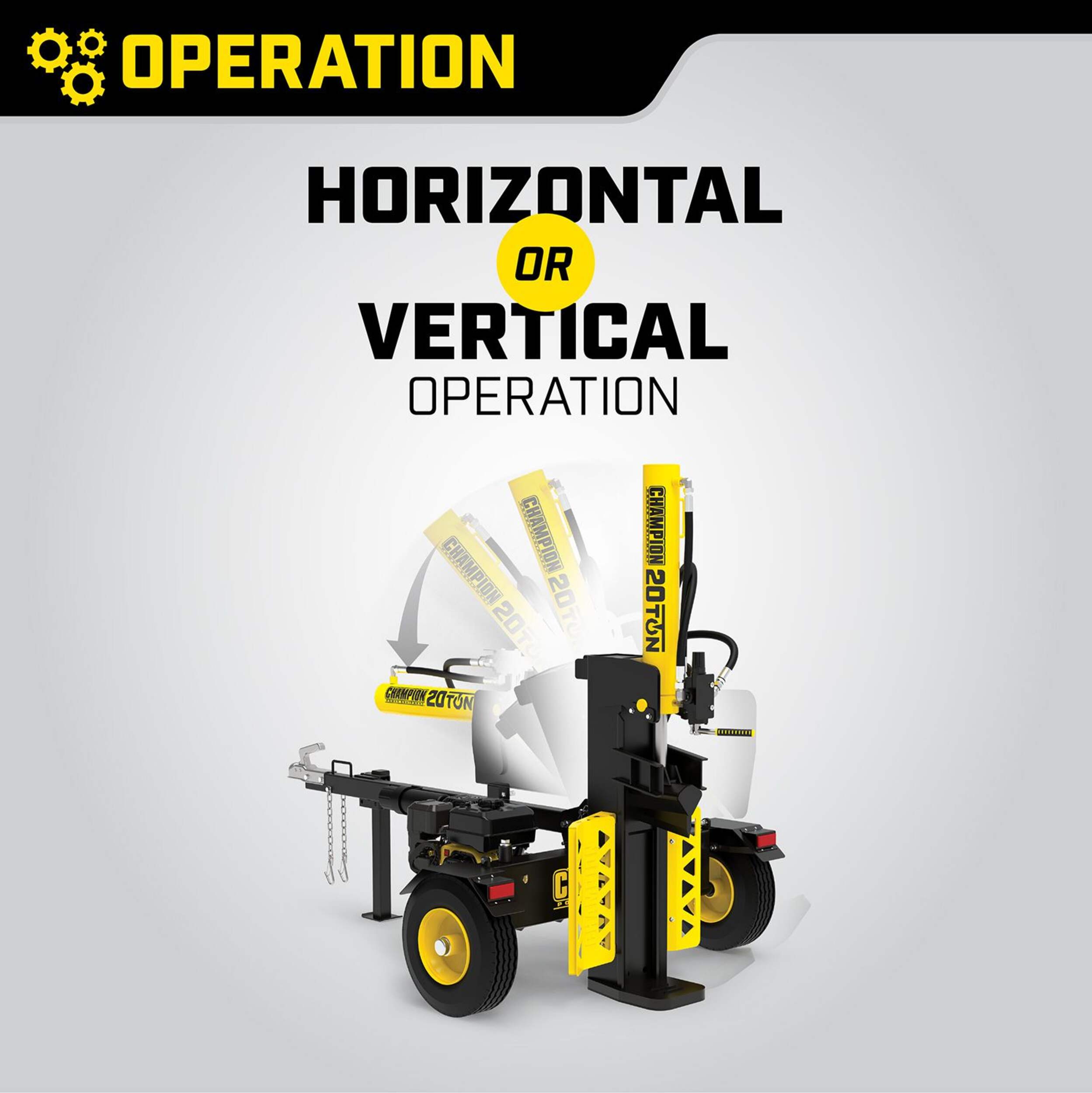 Easily adjusts from horizontal to vertical to tackle larger, heavier logs with 20 tons of splitting force