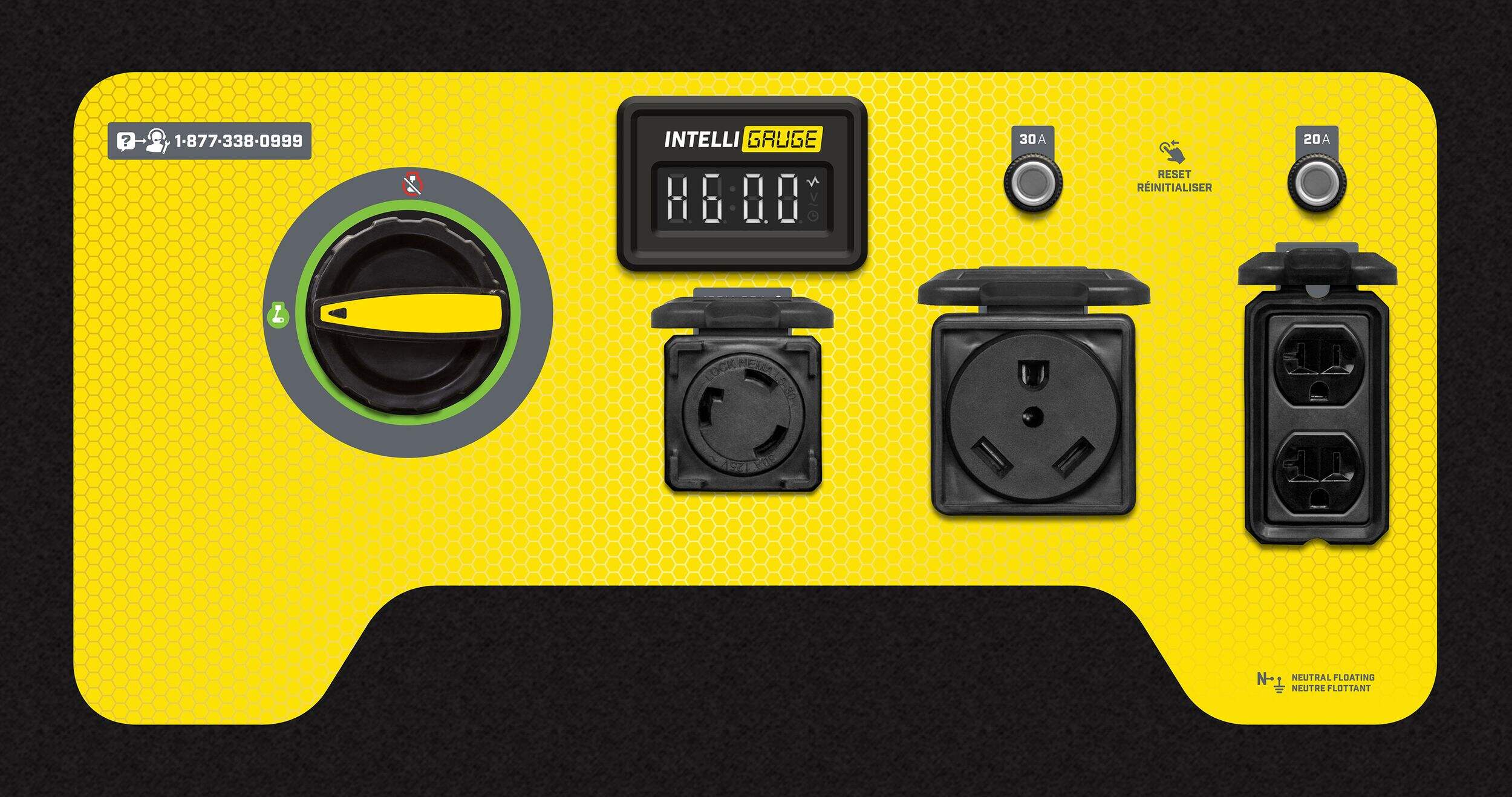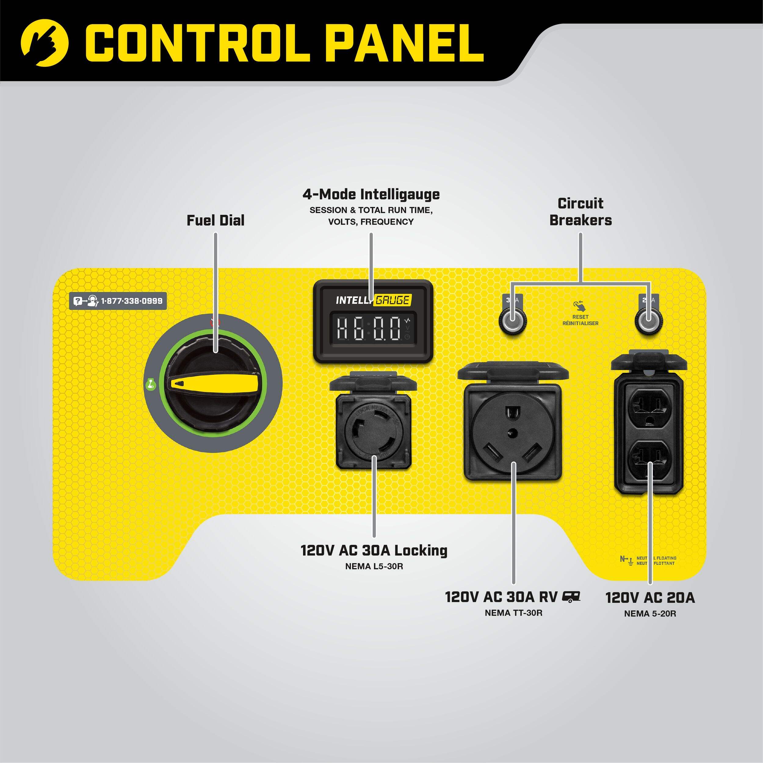 Covered power outlets includes a 120V 30A locking outlet (L5-30R), a 120V 30A RV outlet (TT-30R) and two 120V 20A household outlets
