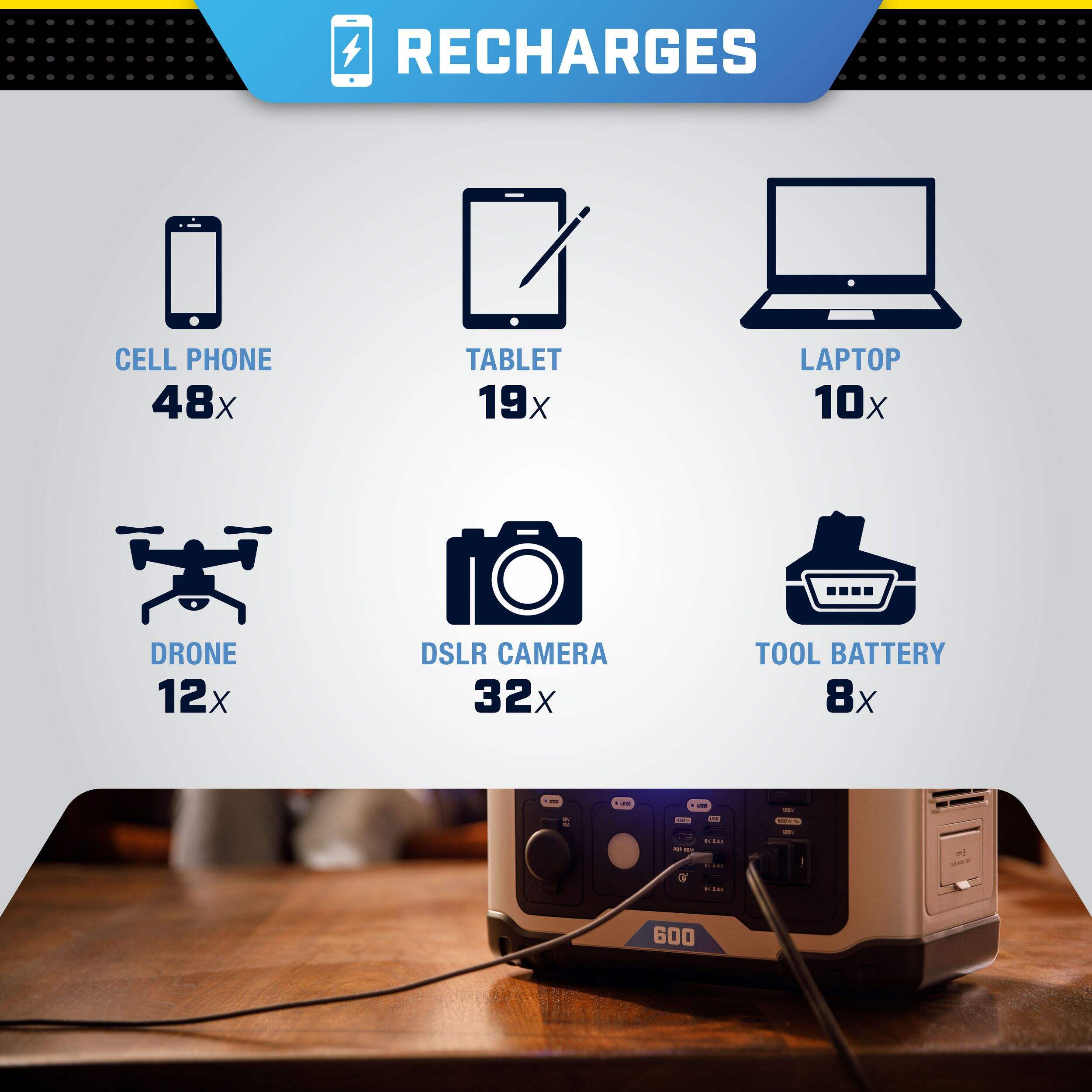 Designed with a flip-down, foldable carrying handle, this power station is only 15.9 lbs and includes a wireless charging pad, a USB-A Quick Charge 3.0 port plus a USB-C Power Delivery port