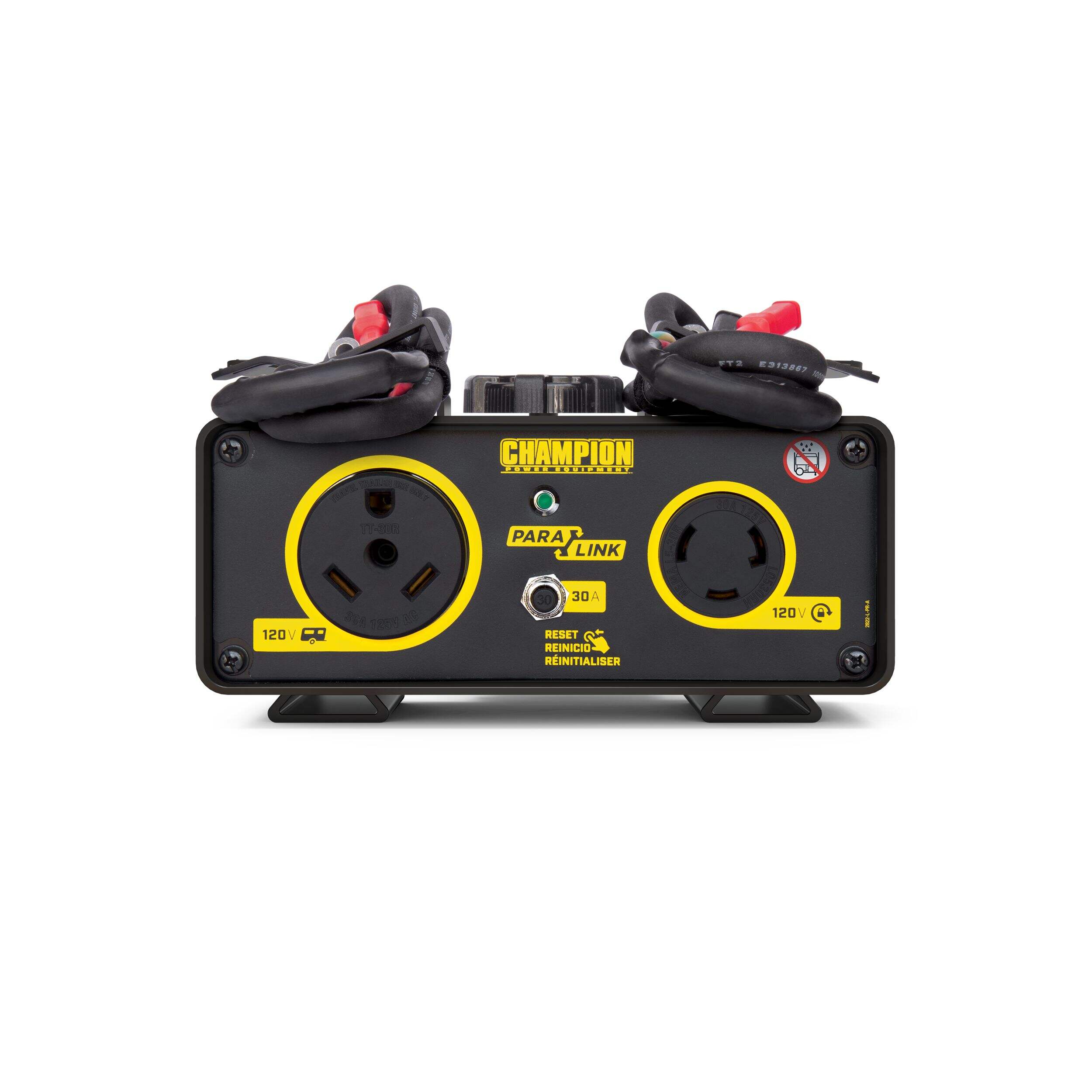 Champion’s Parallel Kit increases your power by connecting any two 2000-2500-Watt ParaLINK-ready inverters so you can mix and match different inverter models. This kit features a quick and easy clamp-on connection with a 30-amp circuit breaker plus a 120V 30A (TT-30R) RV outlet and a 120V 30A locking outlet (L5-30R).