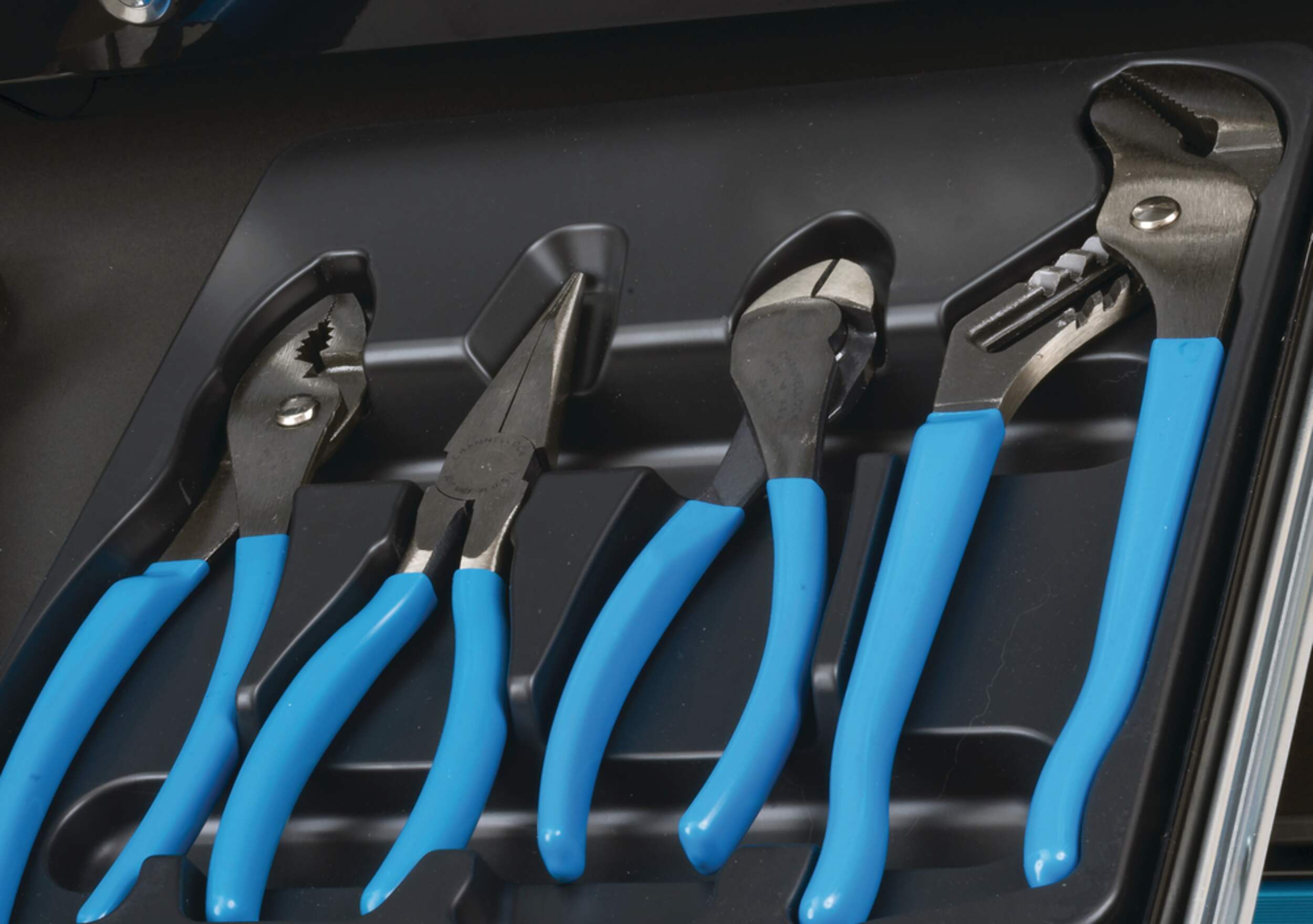 Set includes: tongue and groove plier, long nose plier, cutting plier and slip joint plier