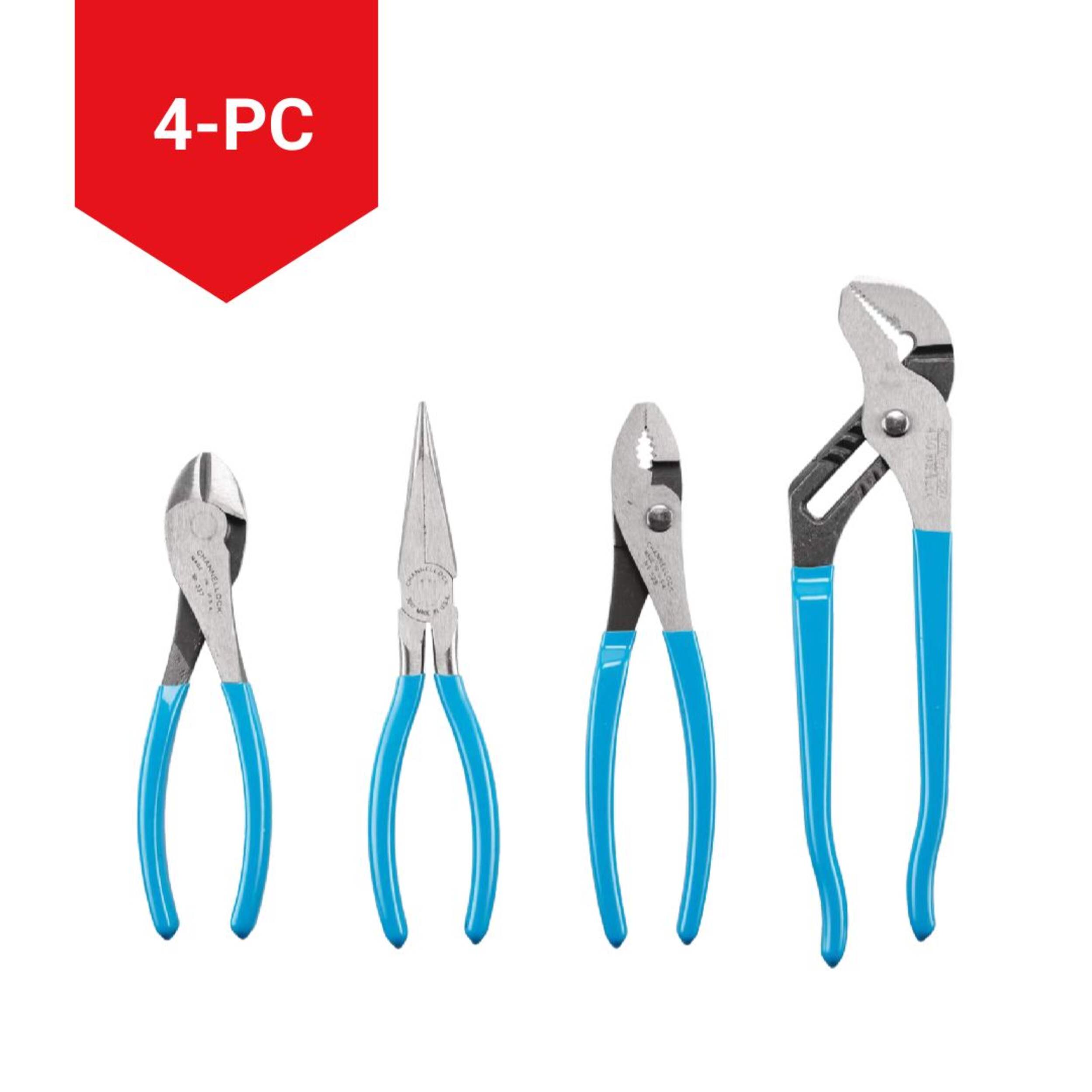 The Channellock CT-4 Pliers Set includes four high-quality, rust-resistant pliers made from high-carbon steel for superior durability. This versatile set is perfect for both professional and DIY use, offering long-lasting performance and precision. The ergonomic design ensures a comfortable grip for extended use, while the rust-resistant coating enhances the longevity of the tools. Ideal for various tasks, this four-piece set is essential for any toolbox.
