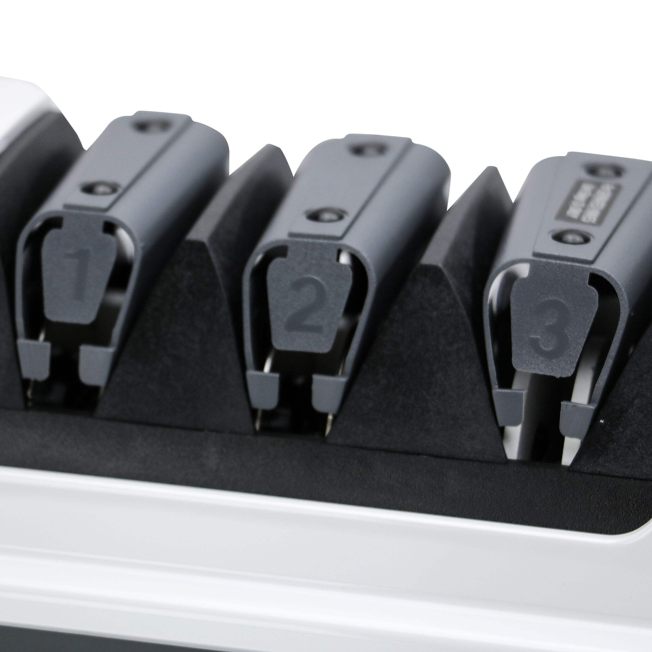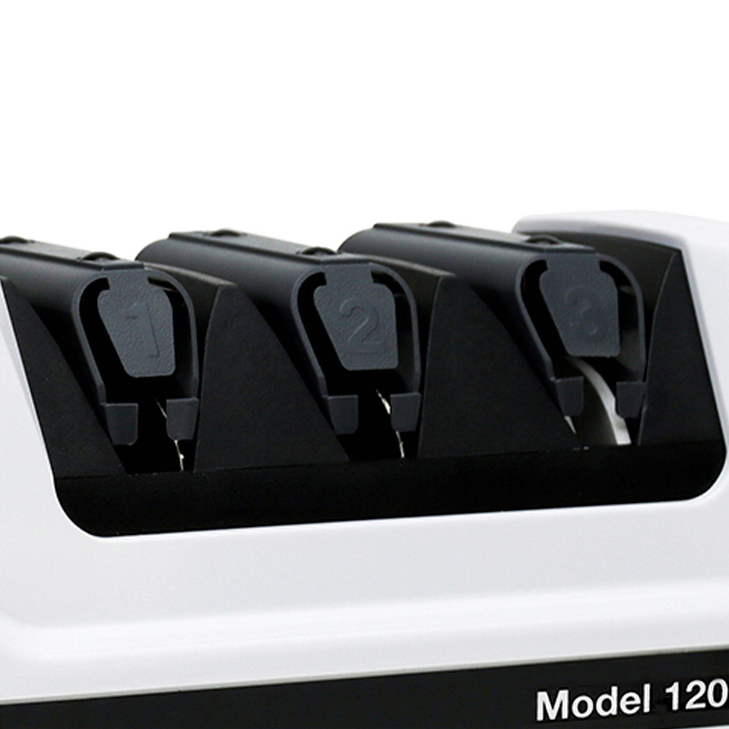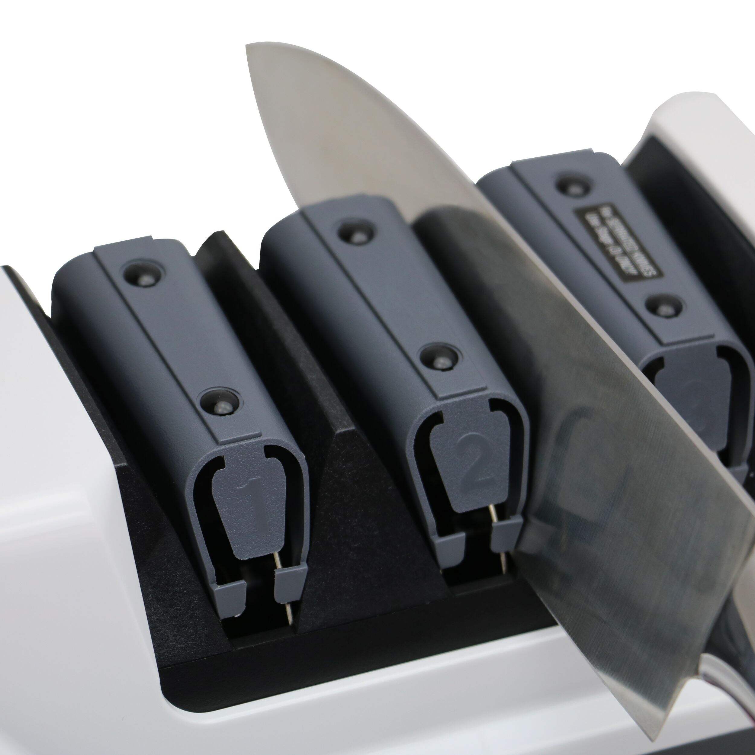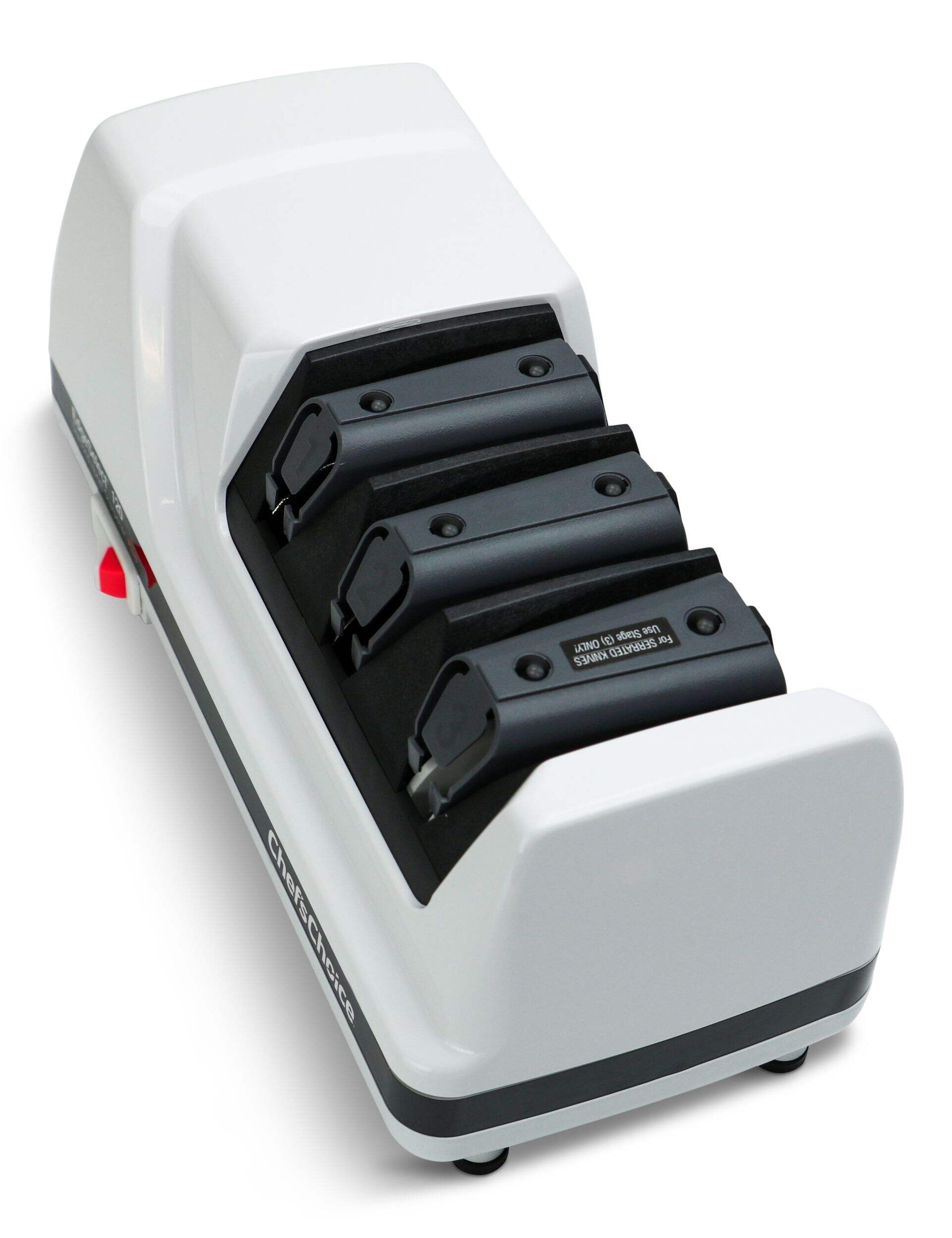 The Chef's Choice Model 120 Professional 3-Stage Electric Knife Sharpener provides expert sharpening results for straight and serrated knives. With a 3-stage system, this sharpener offers precision edge-sharpening, honing, and polishing to achieve a razor-sharp finish. The 100% diamond abrasives ensure effective sharpening without damaging the blade, while the unique guides maintain the ideal angle for consistent results.