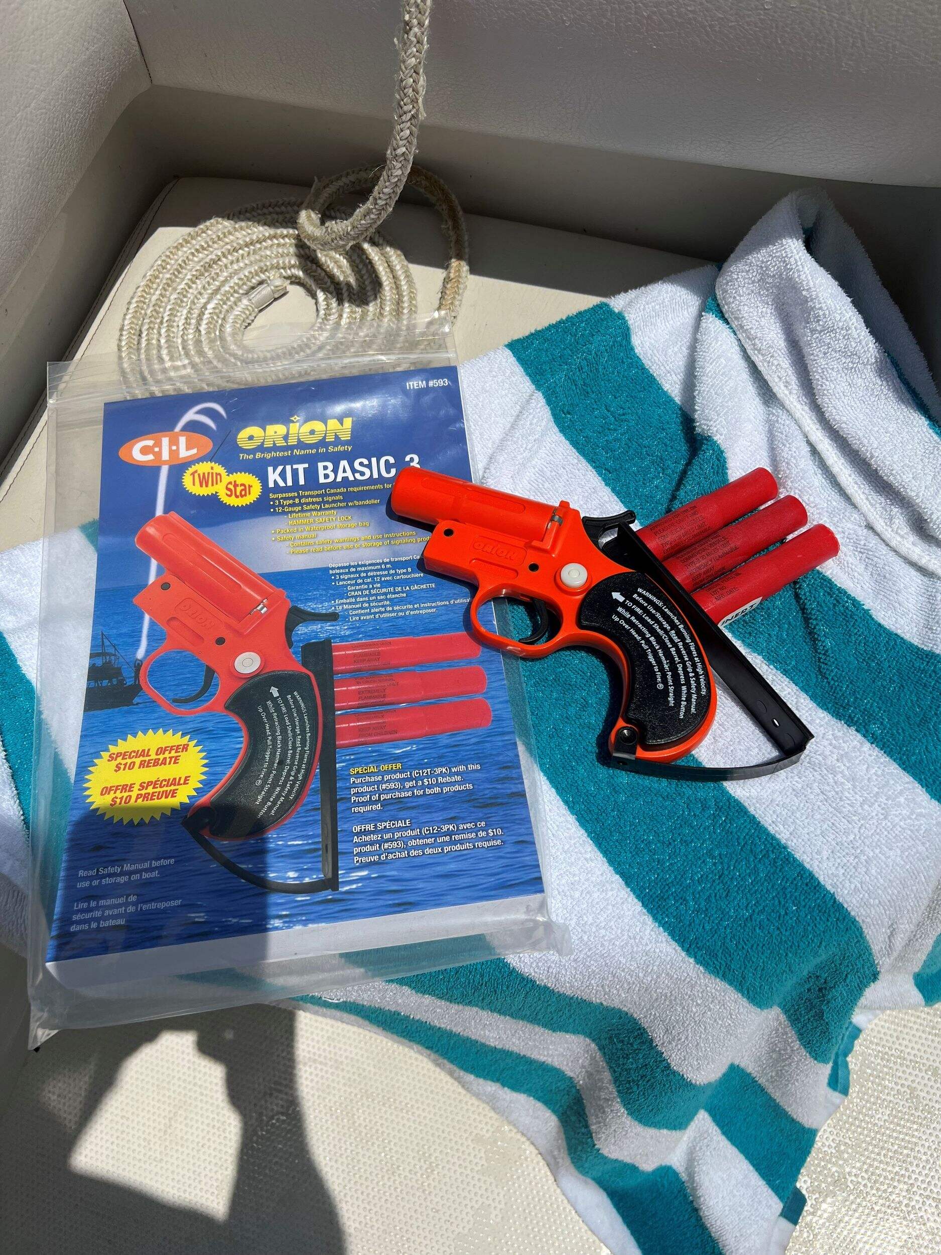 The Orion Twin Star Marine Flare Kit provides essential visibility and signalling for boats in distress. This bright red emergency flare kit meets Canadian Coast Guard standards, launching highly visible aerial flares even in adverse weather. This boat flair kit contains one, 12-gauge launcher and 3 Type-B aerial emergency flares with a maximum altitude of 90 metres. This vital marine safety product makes your location clearly visible and meets regulations for boats under 6 metres (19.6-ft).