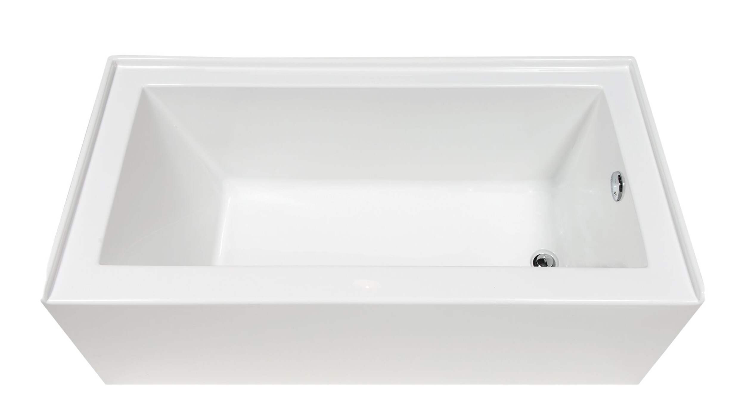 The Clara Low-Profile Bathtub, from Technoform offers a sleek, skirted rectangular design with a wide and deep interior for maximum bathing space. Its integrated tiling flange allows for easy alcove installation. The inclined backrest provides optimal comfort, while the textured bottom ensures added safety. With a 3" above-floor-rough-in, it offers clearance between the tub underside and flooring for easy pipe and drain connection. The left-hand drain completes this stylish and functional bathtub.