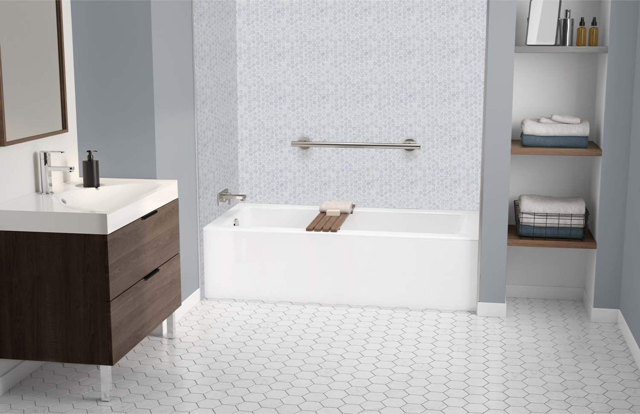 3" Above-floor-rough-in offering clearance between tub underside and flooring for easy pipe and drain connection