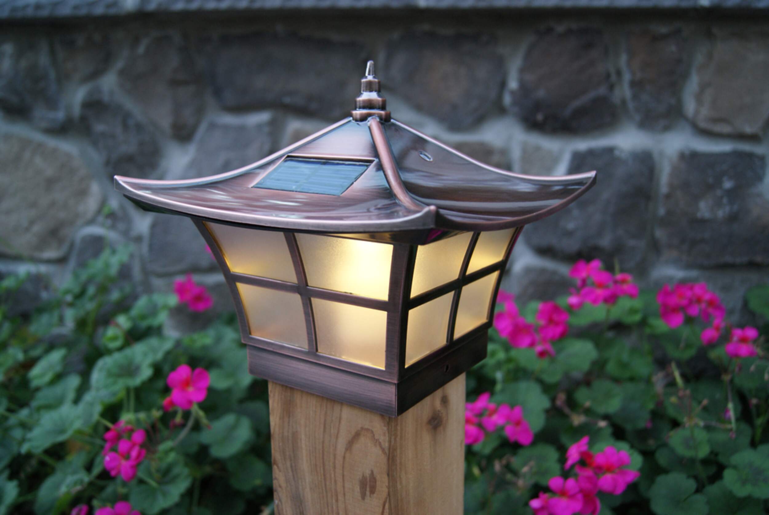Classy Caps Japanese garden style Ambiance Post Lights feature two high output LEDs
