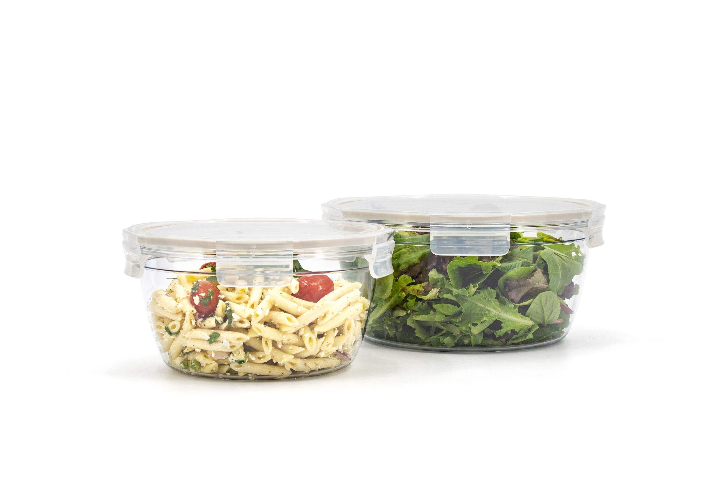 Keep your food fresh and your kitchen organized with the Clearlock Round Food Storage Container Set. Made with a crystal-clear, stain, odour, and break-resistant Tritan™ base, these containers are designed to handle daily use without losing their sparkle. The stackable and nestable design makes storage a breeze, freeing up space in your cabinets and fridge. Each lid features a leak-proof seal, so you can store soups, salads, and more without worrying about spills. Plus, these versatile containers double as serving bowls, letting you go from fridge to table with ease. Perfect for meal prep, leftovers, or entertaining.