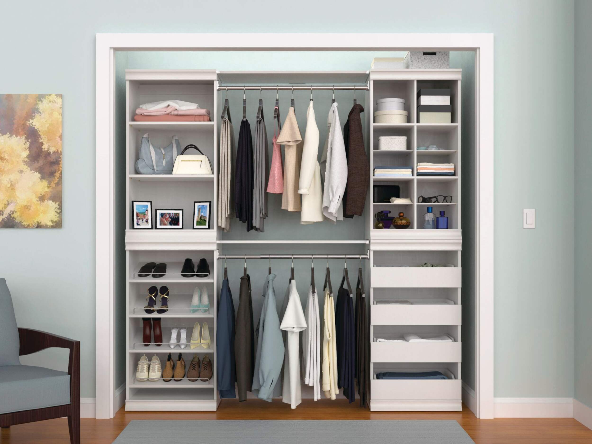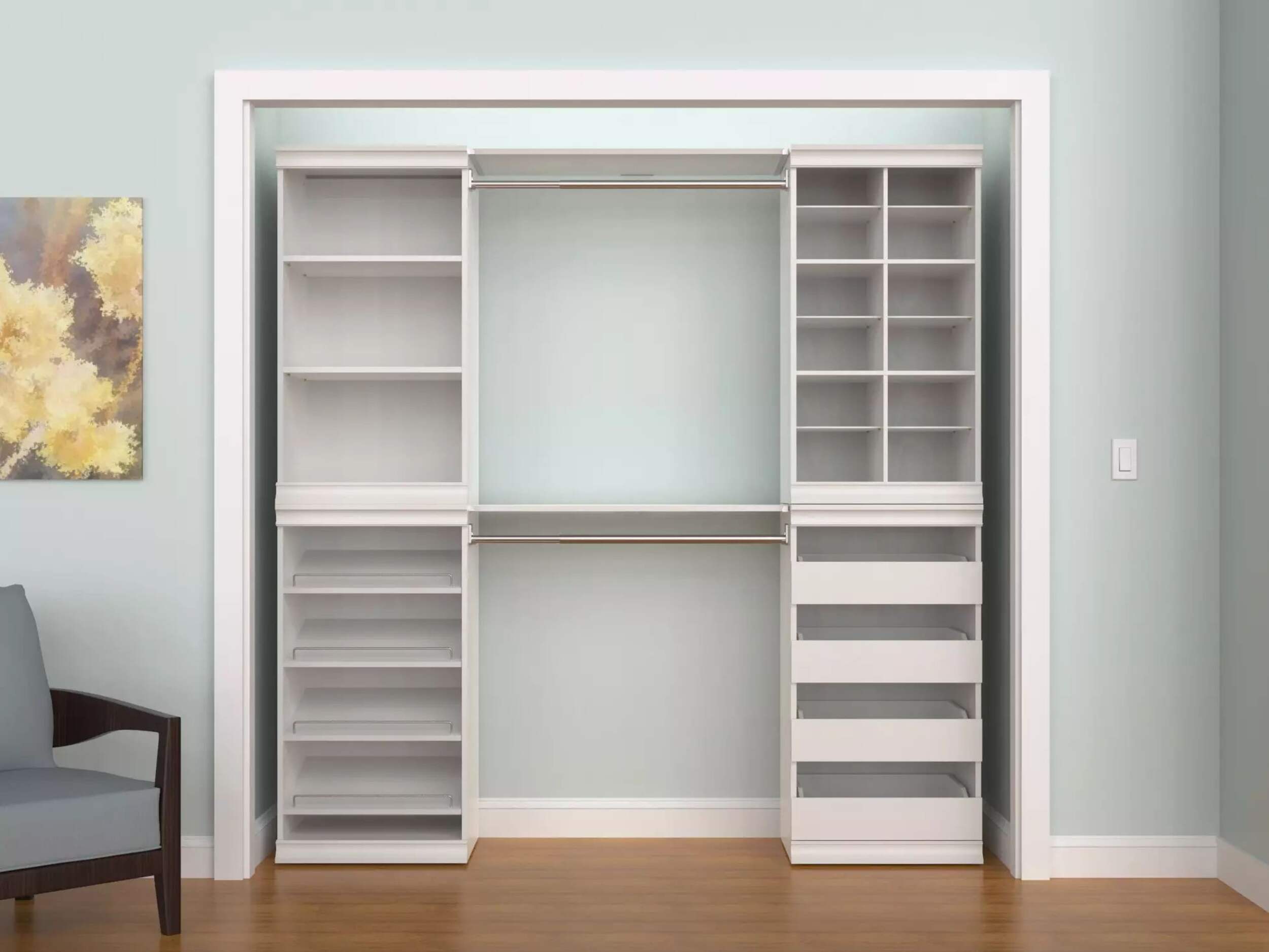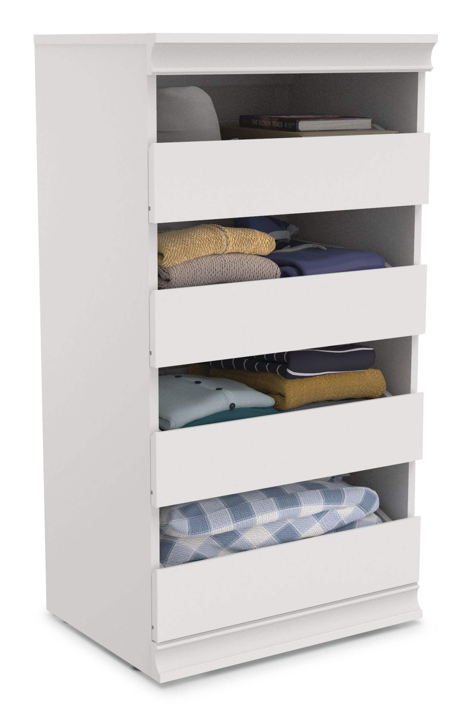 Create a clutter-free environment with the ClosetMaid Modular Stackable 4-Drawer Storage Unit. This stylish unit features four partially enclosed drawers, ideal for organizing clothes, accessories, and more. Its stackable and side-by-side design allows for customized storage solutions that fit any space. The easy-to-assemble white frame enhances the modern aesthetic of your room, making it a functional addition to bedrooms, closets, or offices.