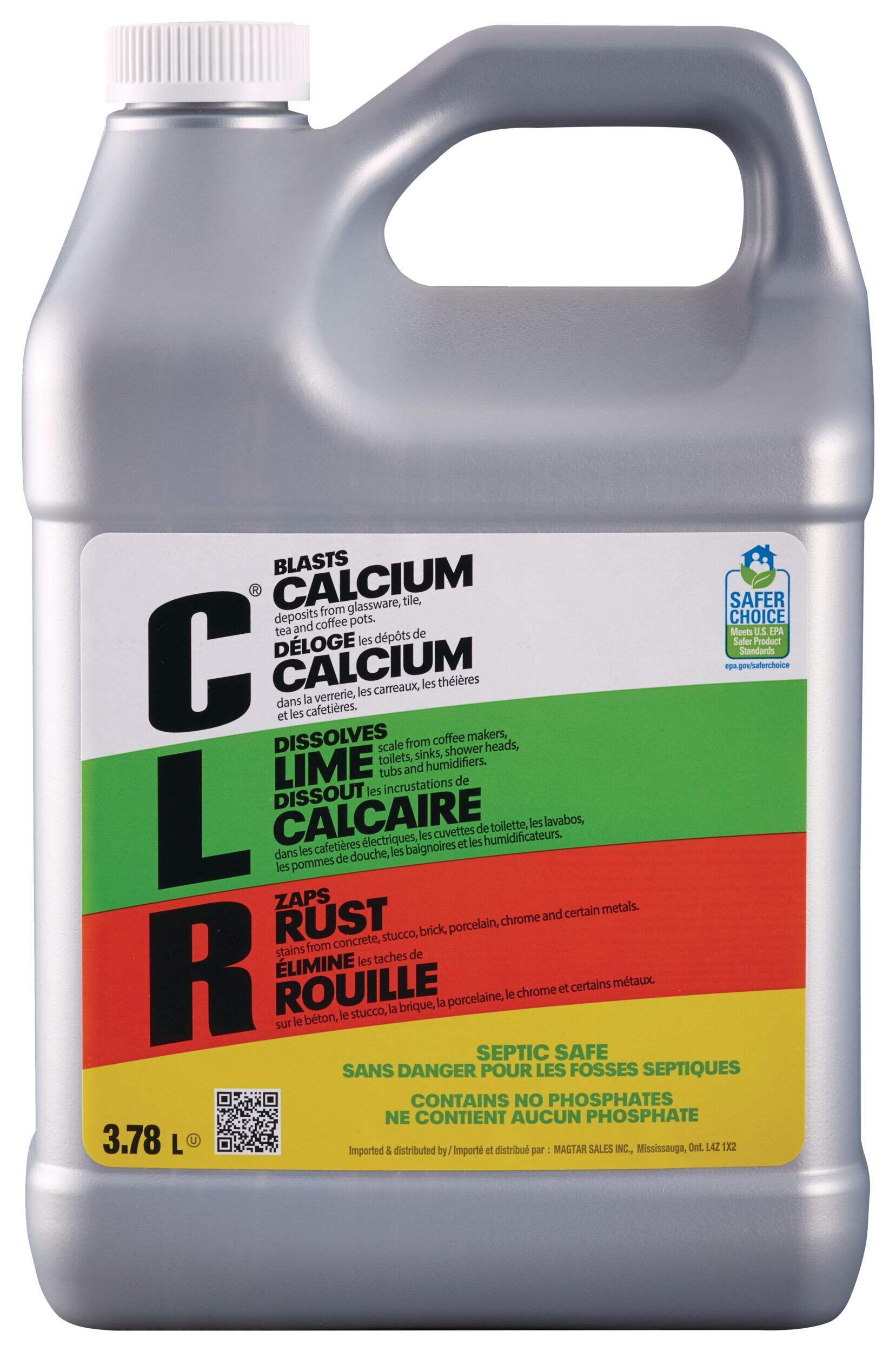 Quickly and easily dissolves and removes tough calcium and lime deposits. Can be used on surface rust stains from bathtubs, toilet bowls, sinks, glass, chrome, fiberglass, stainless steel, humidifiers, dishwashers, washing machines and showerheads.