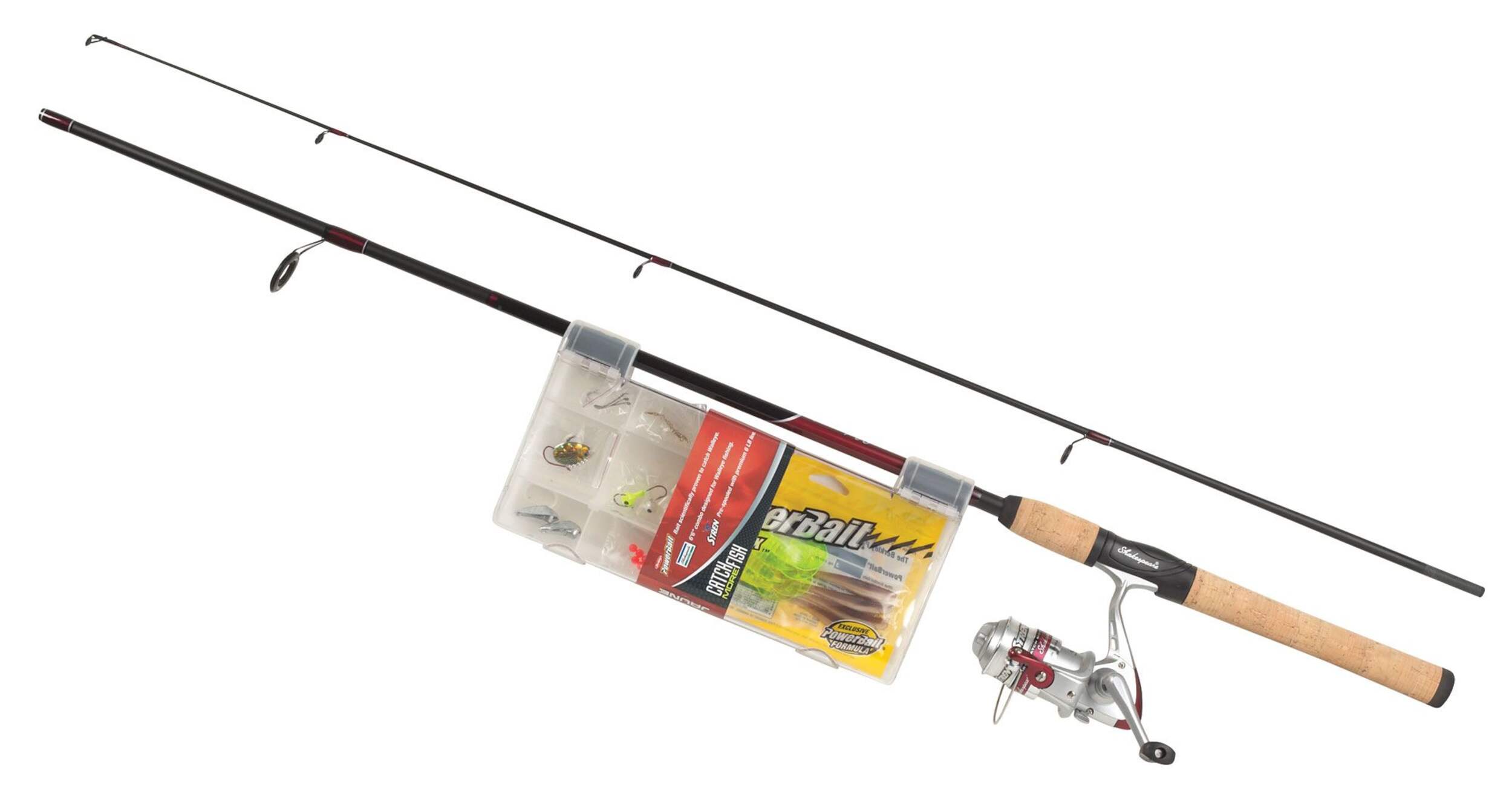 Lures & bait included: 3" (7.6 cm) power minnows, 3" (7.6 cm) power grubs, 1/8 oz jig heads and a 3/8 oz walking sinker