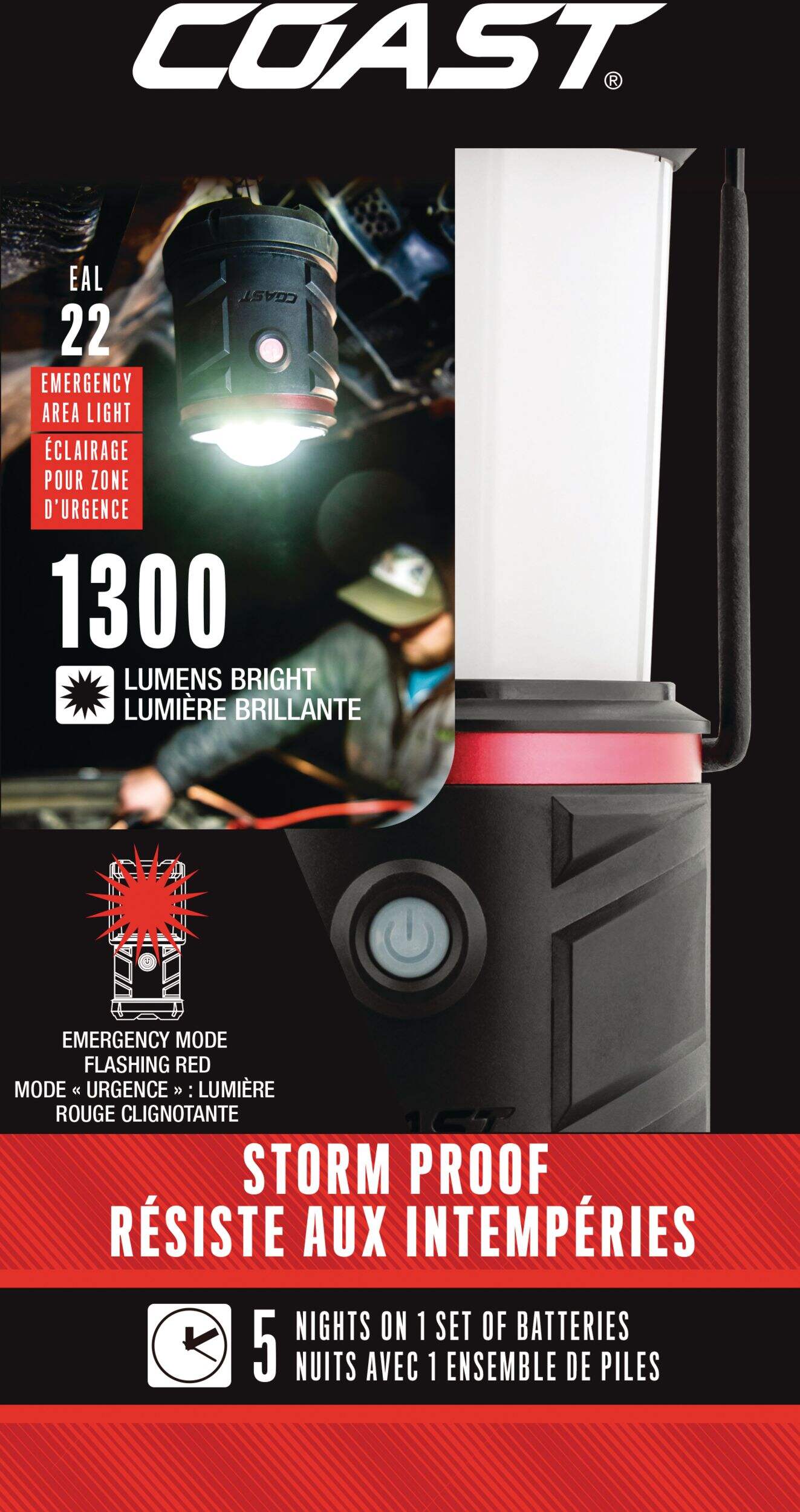 The Coast EAL22 Emergency Area Lantern provides powerful illumination when you need it most. Built to withstand the elements, this emergency lantern is ideal for signaling the need for help in emergency situations. This area lantern can also be used for everyday lighting while camping, boating or for completing outdoor work. An integrated battery indicator lets you monitor power levels at a glance while the built-in hook allows you to hang this emergency lantern for hands-free use. When an emergency strikes, this emergency lantern can be depended on for safety and visibility.