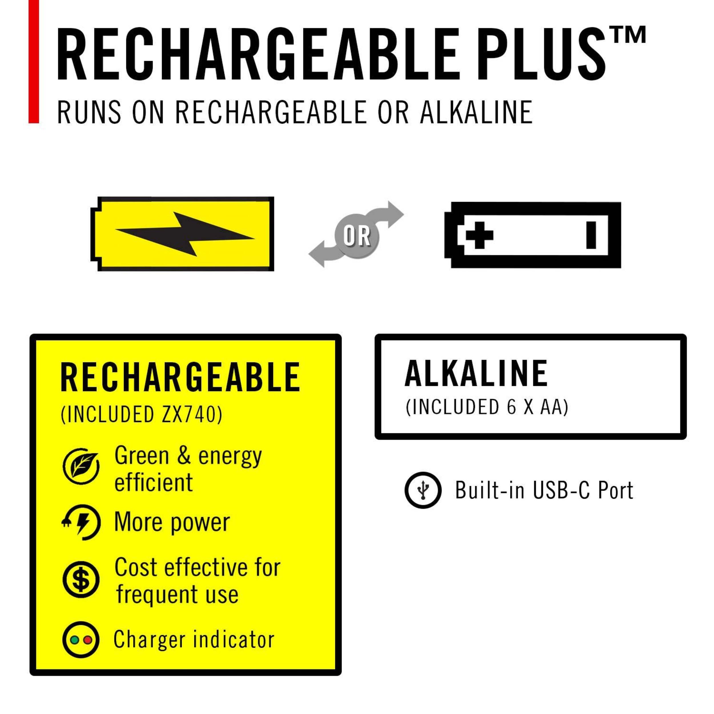 Power your lantern how it suits you best—using the included COAST ZX740 ZITHION-X™ rechargeable battery or six AA alkaline batteries (purchased separately)