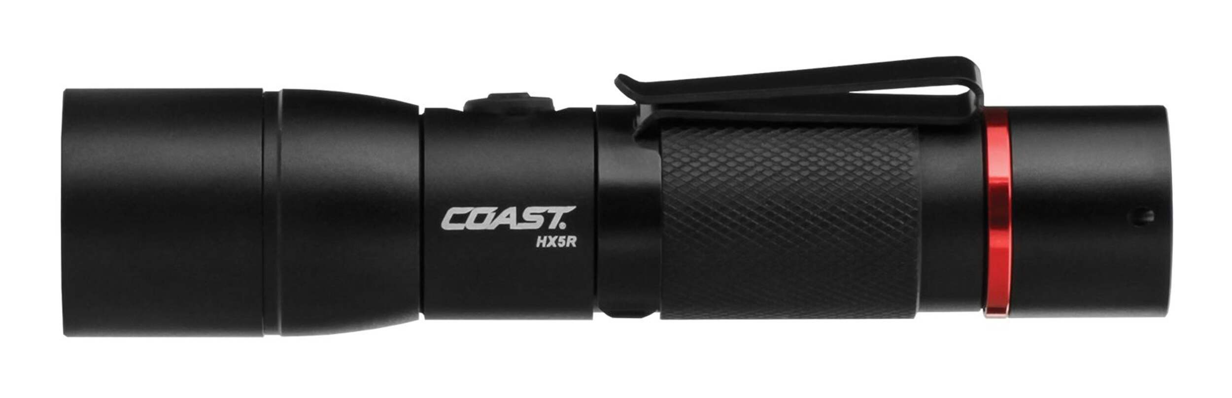 Coast HX5R Rechargeable Flashlight features a rear USB plug-in that can be used with USB, AC & DC adapters