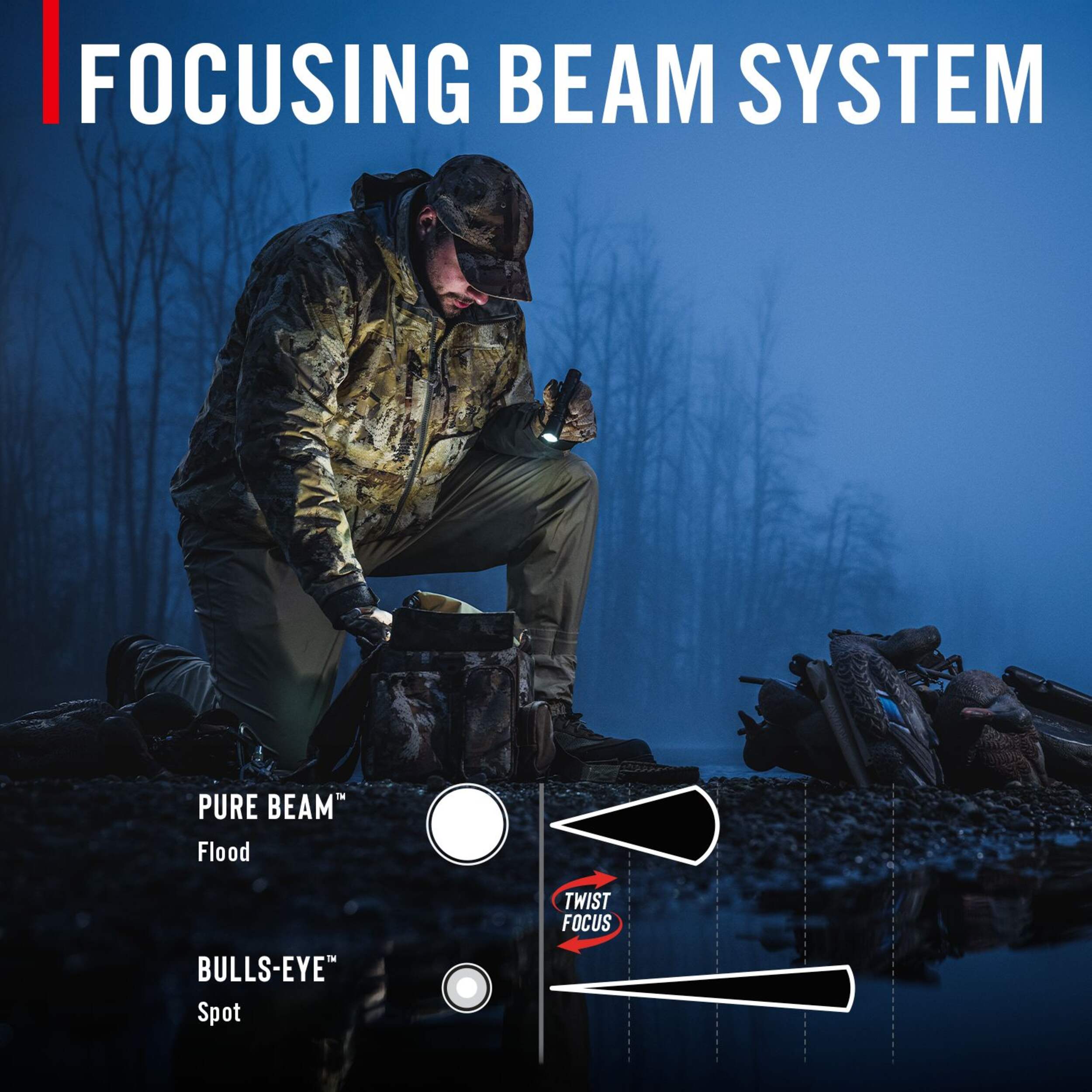 Shine two beams from one optic with PURE BEAM technology—seamlessly transitioning between Ultra View Flood and BULLS-EYE™ Spot Beams