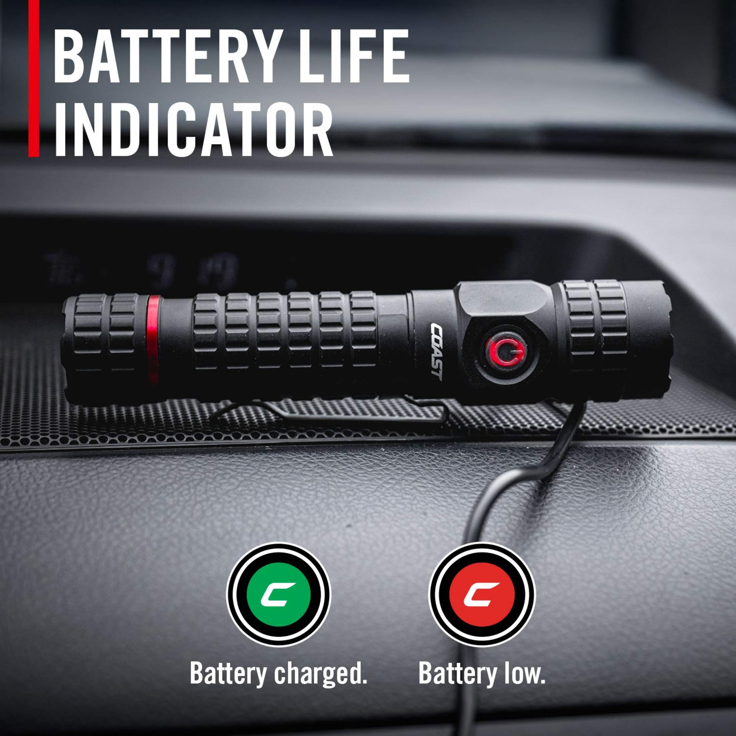 Monitor the light’s power status to know when it’s time to recharge—and when the battery is fully topped up, so you’re always ready to go