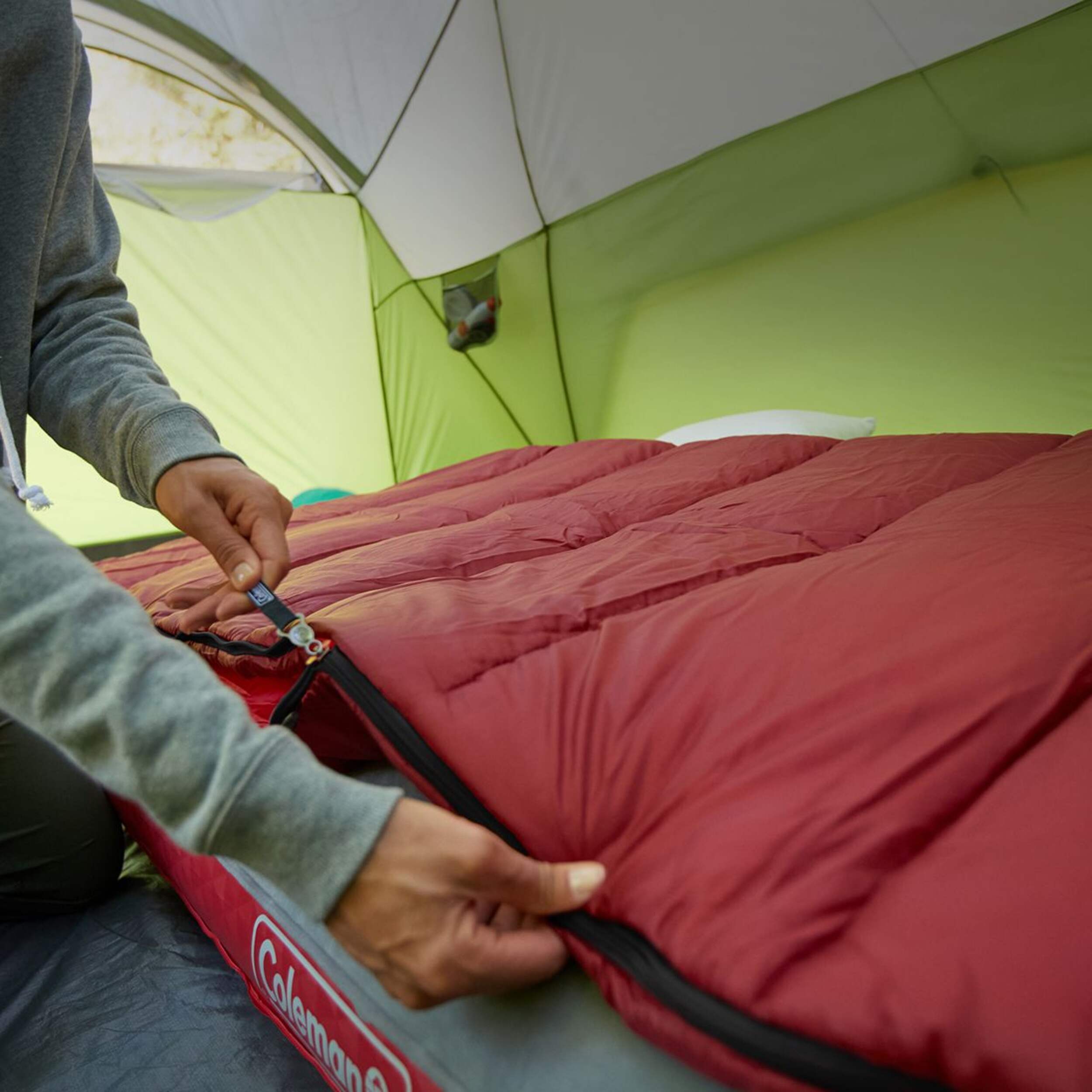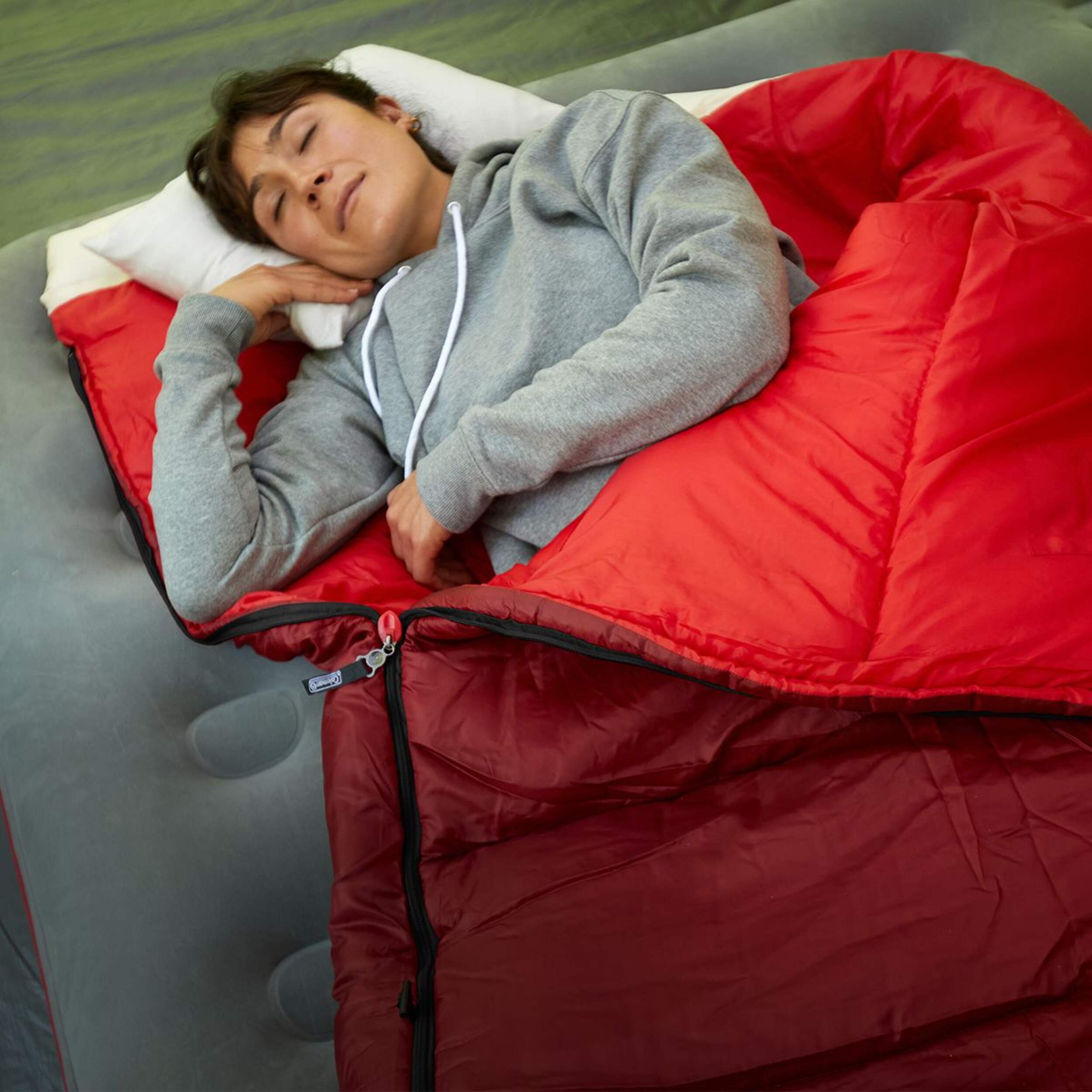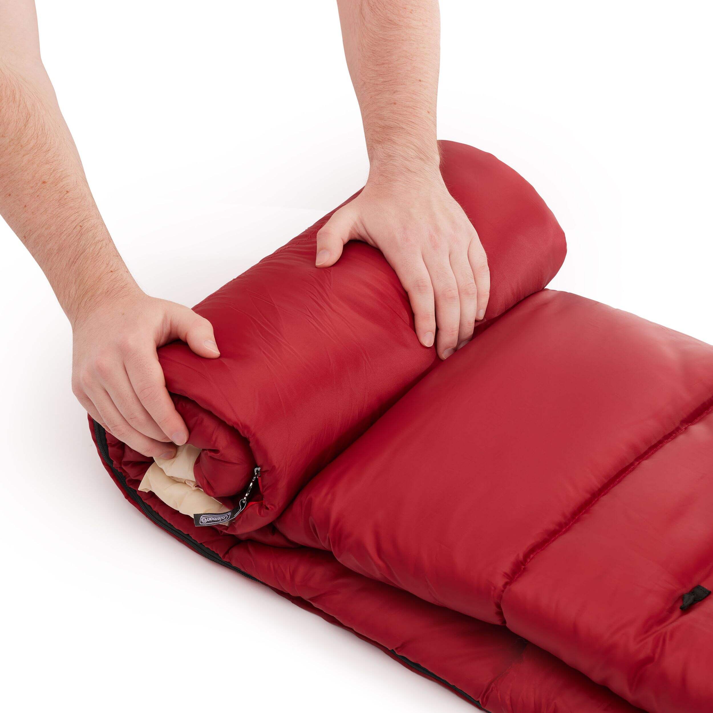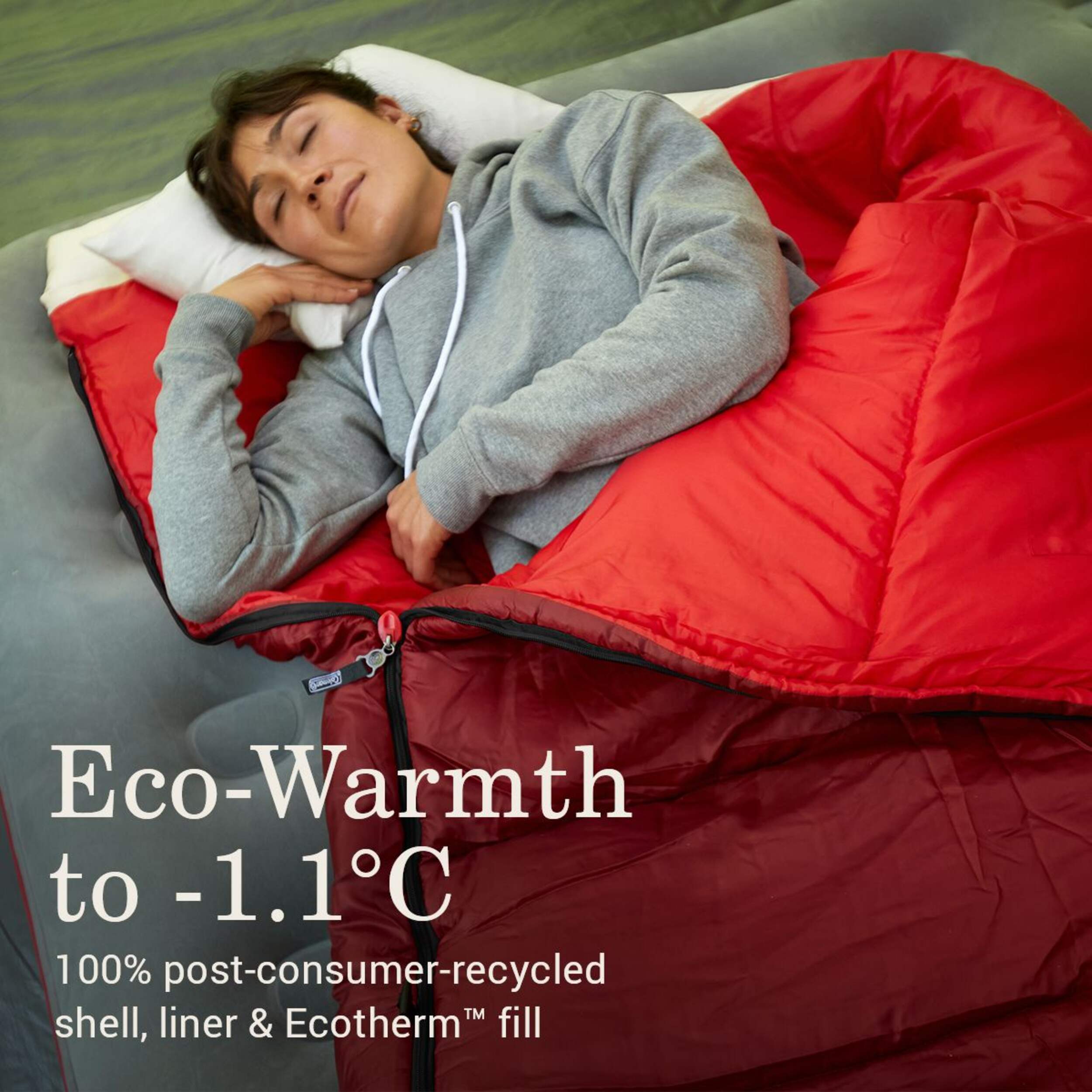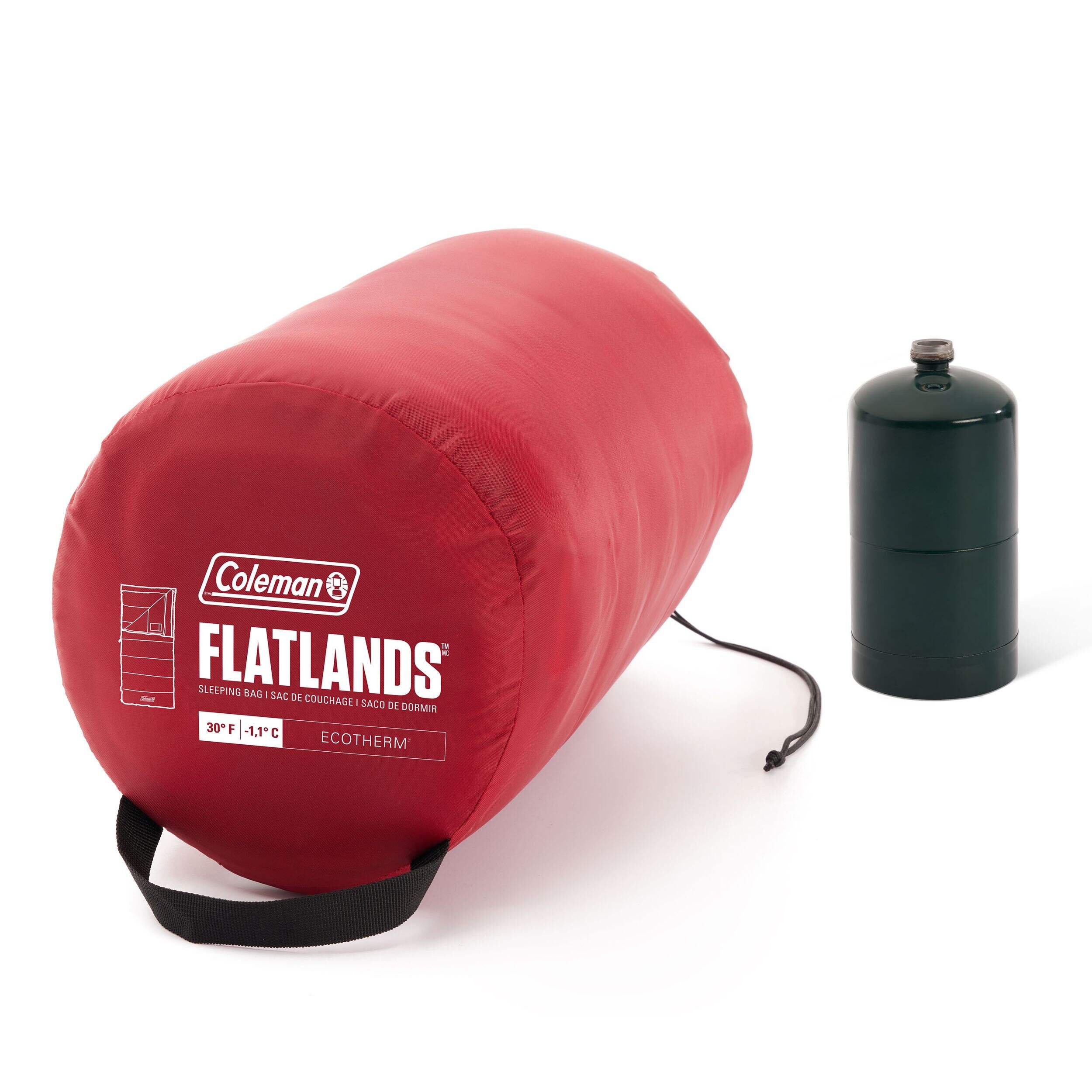 You cherish the outdoor environment and at Coleman we do, too. That’s why our Flatlands cold-weather sleeping bags are made with 100% post-consumer-recycled polyester in the shell, liner, and Ecotherm fill. Plus, it’s designed to keep you warm in temperatures as low as -1.1°C (30°F) and it’s loaded with convenient features. The premium zipper has snag-free ZipPlow construction and is crafted with a Thermolock draft-tube to keep cold air out. A handy interior pocket keeps cell phone batteries warm and small items like keys easy to find, even in the dark. And when it’s time to pack up, the Roll Control feature keeps the bag straight, while the Quick Cord feature secures without tying. 83.8 cm x 190.5 cm (33" x 75") size. Machine washable. 5-year limited warranty.