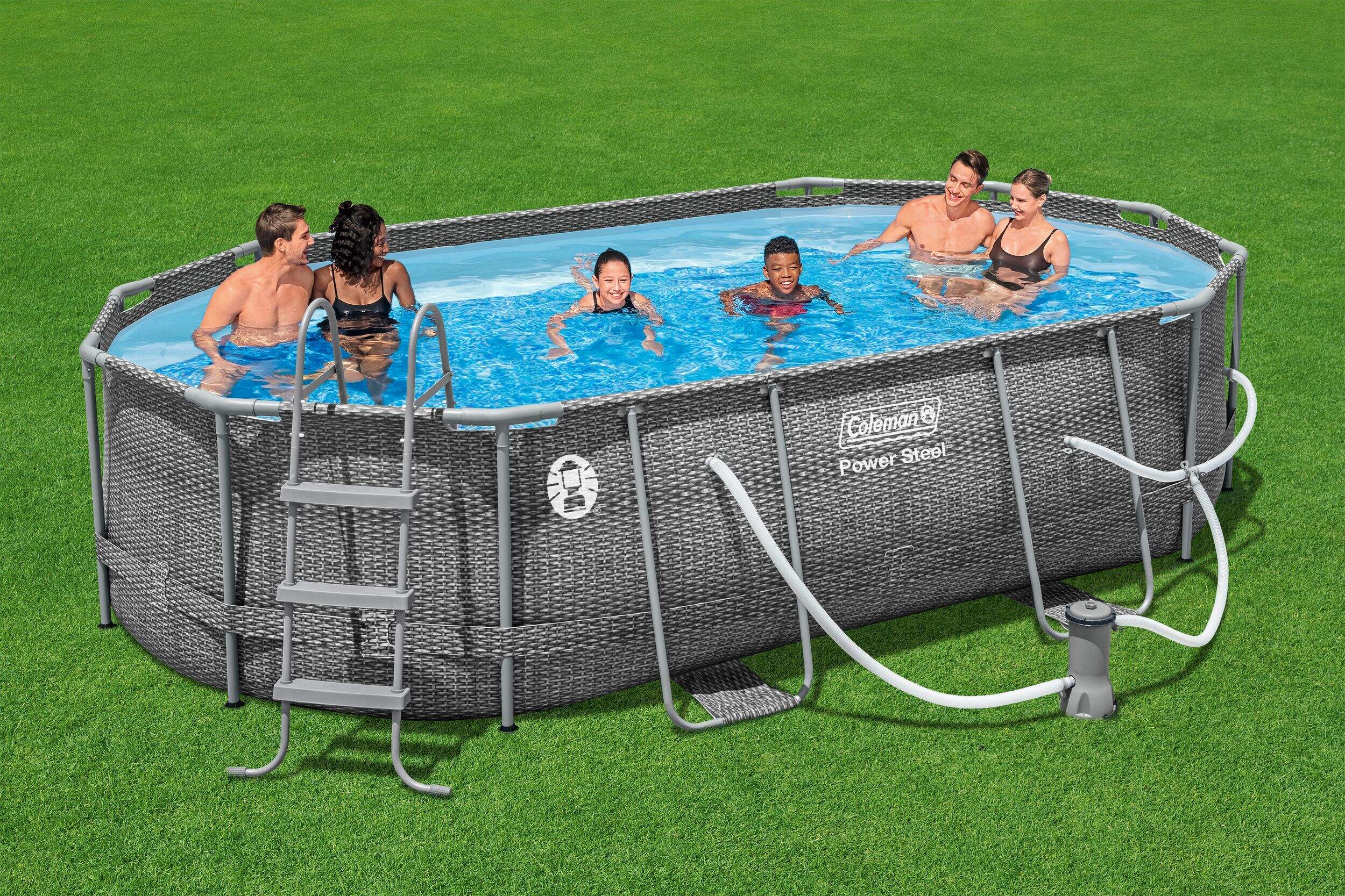 Dive into endless summer fun with the Coleman® Oval Steel Frame Swimming Pool, designed to bring backyard memories to life. Built with a strong steel frame and innovative construction, this pool combines durability with effortless setup for a stress-free experience. Made to last and handle regular use, this oval metal frame pool ensures your summers are filled with fun, laughter, and unforgettable moments.