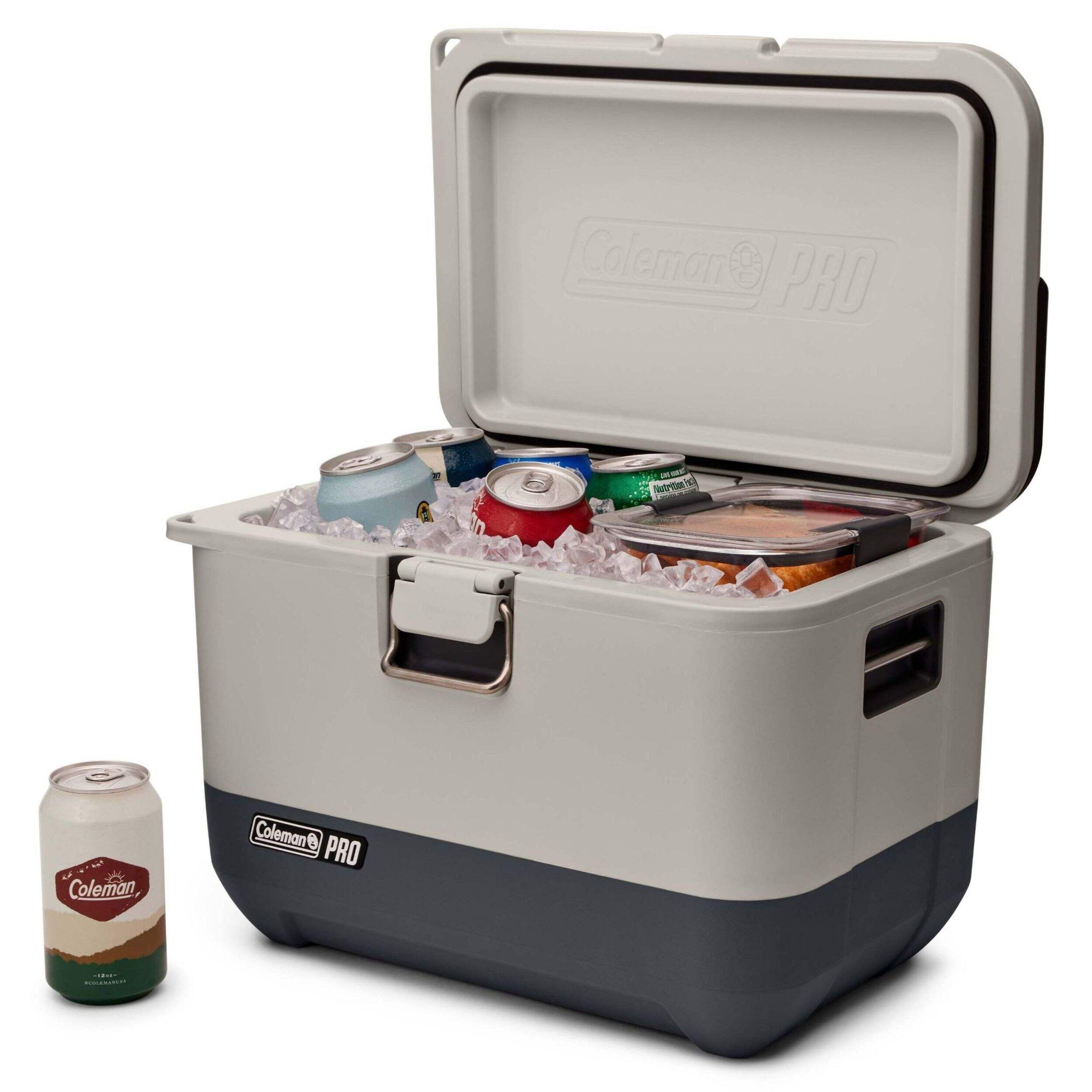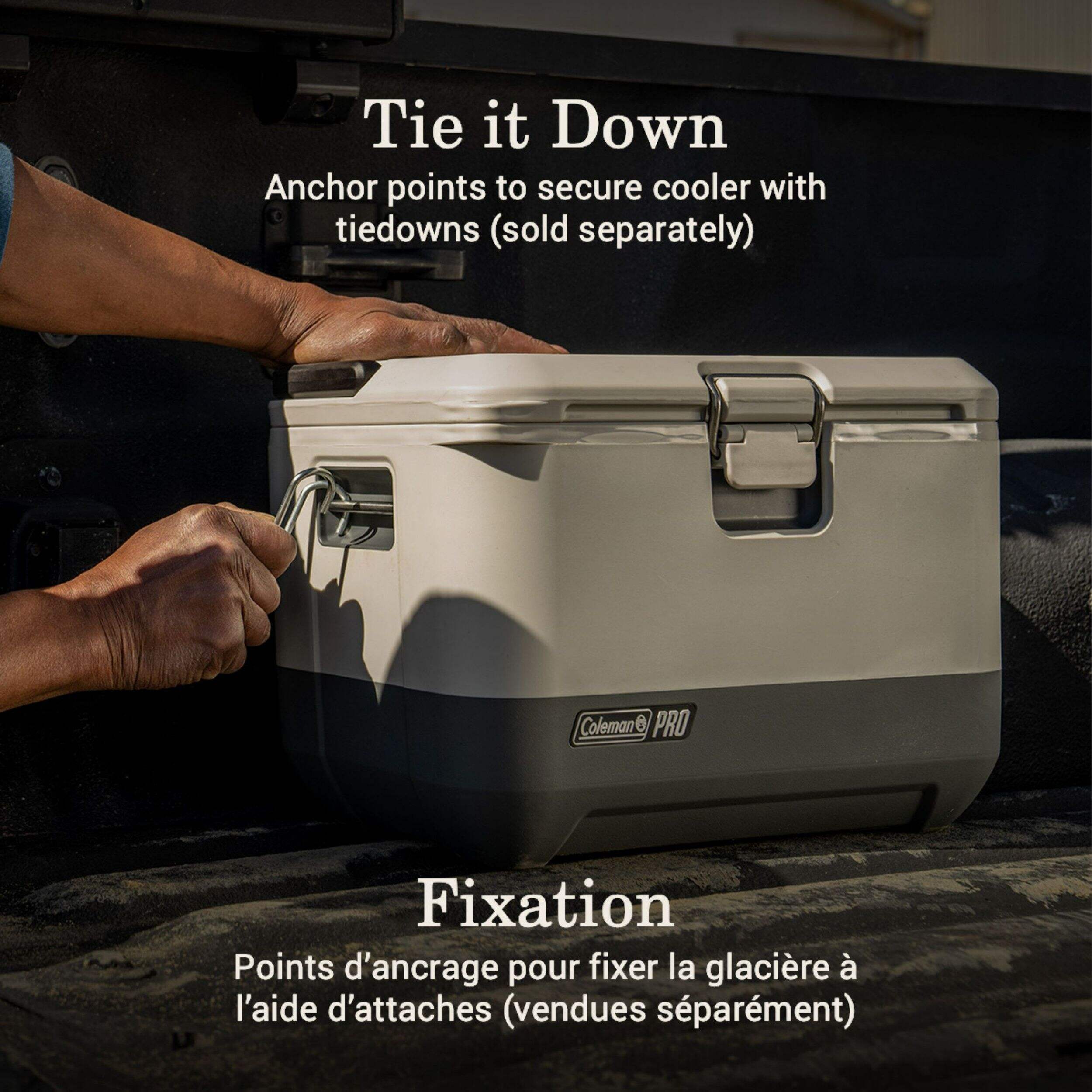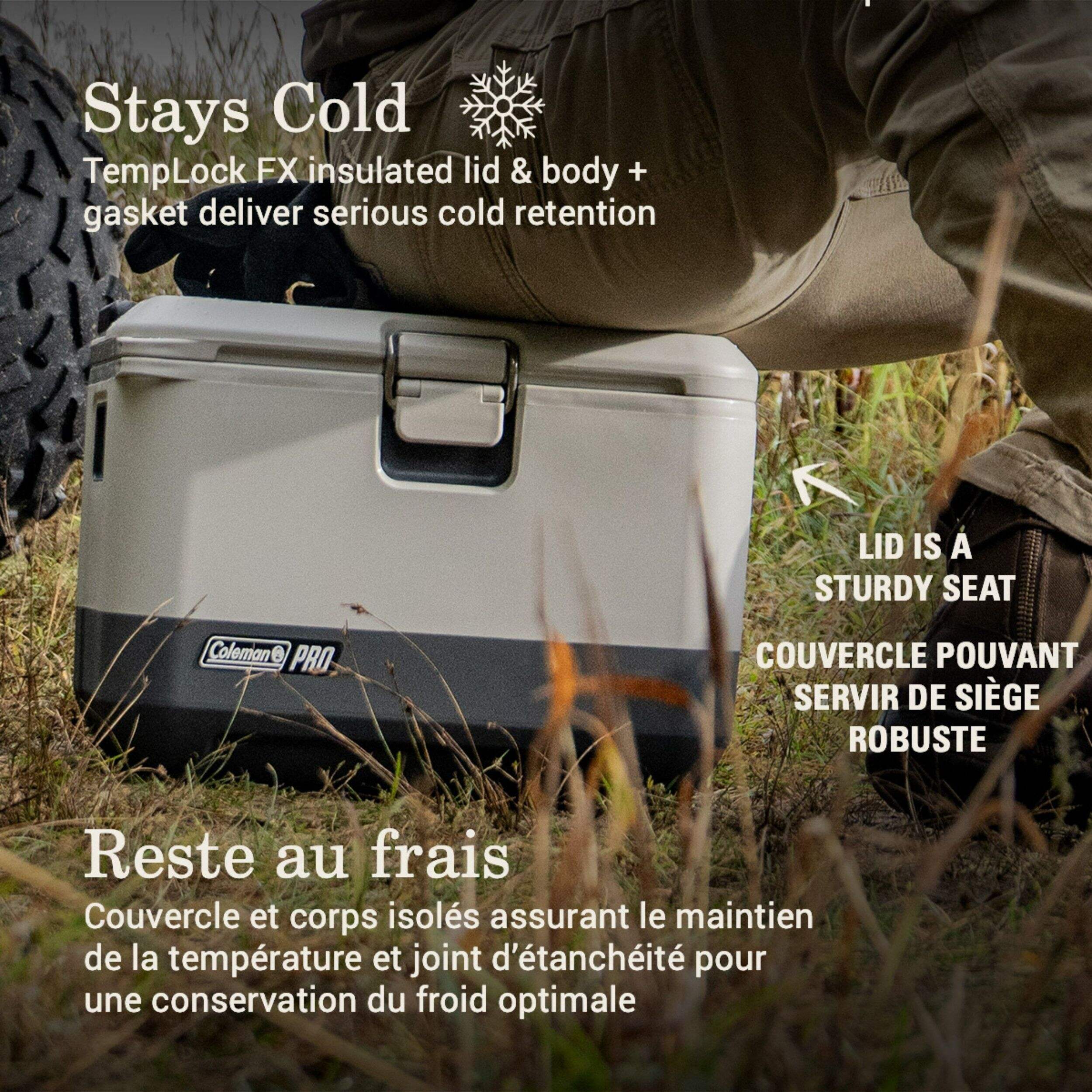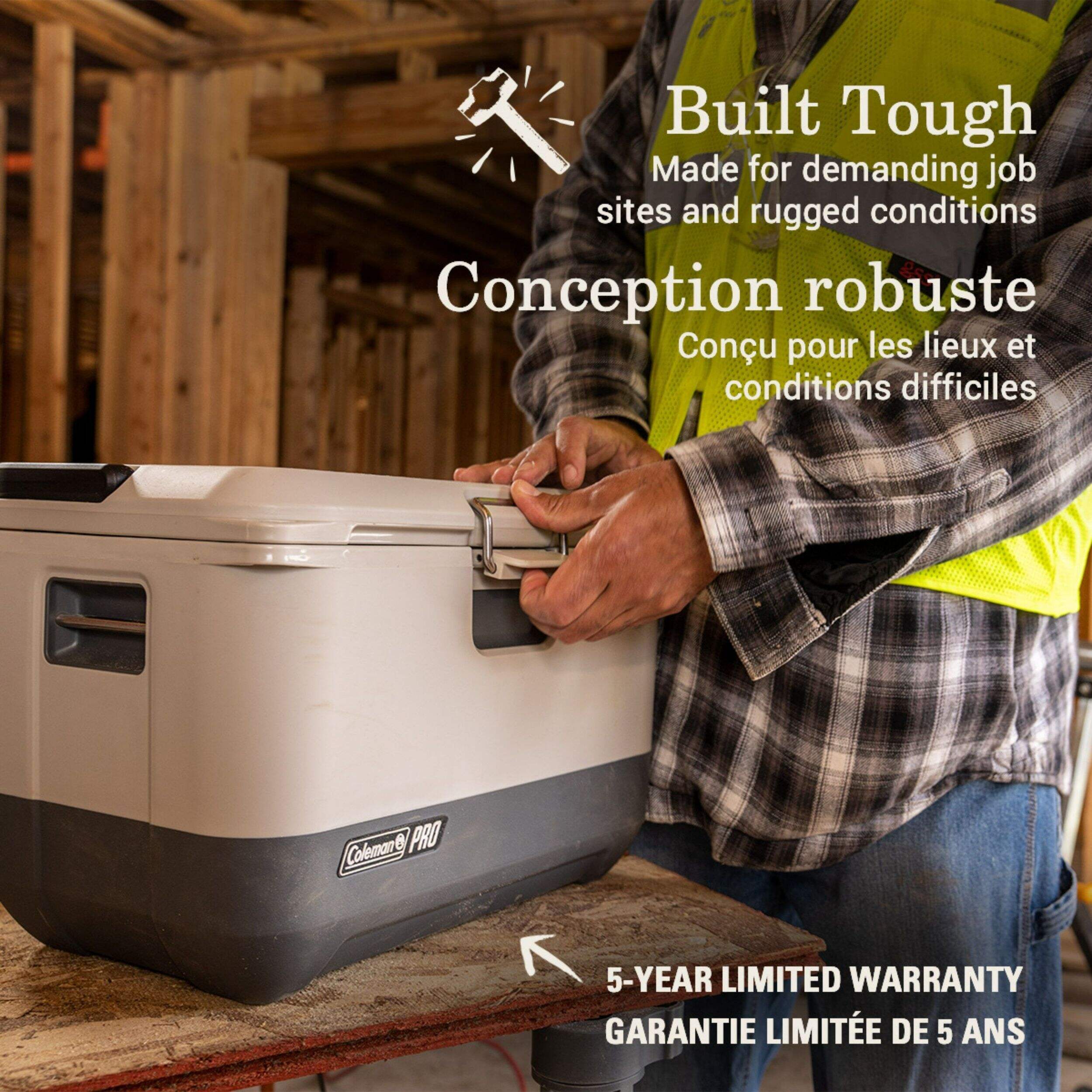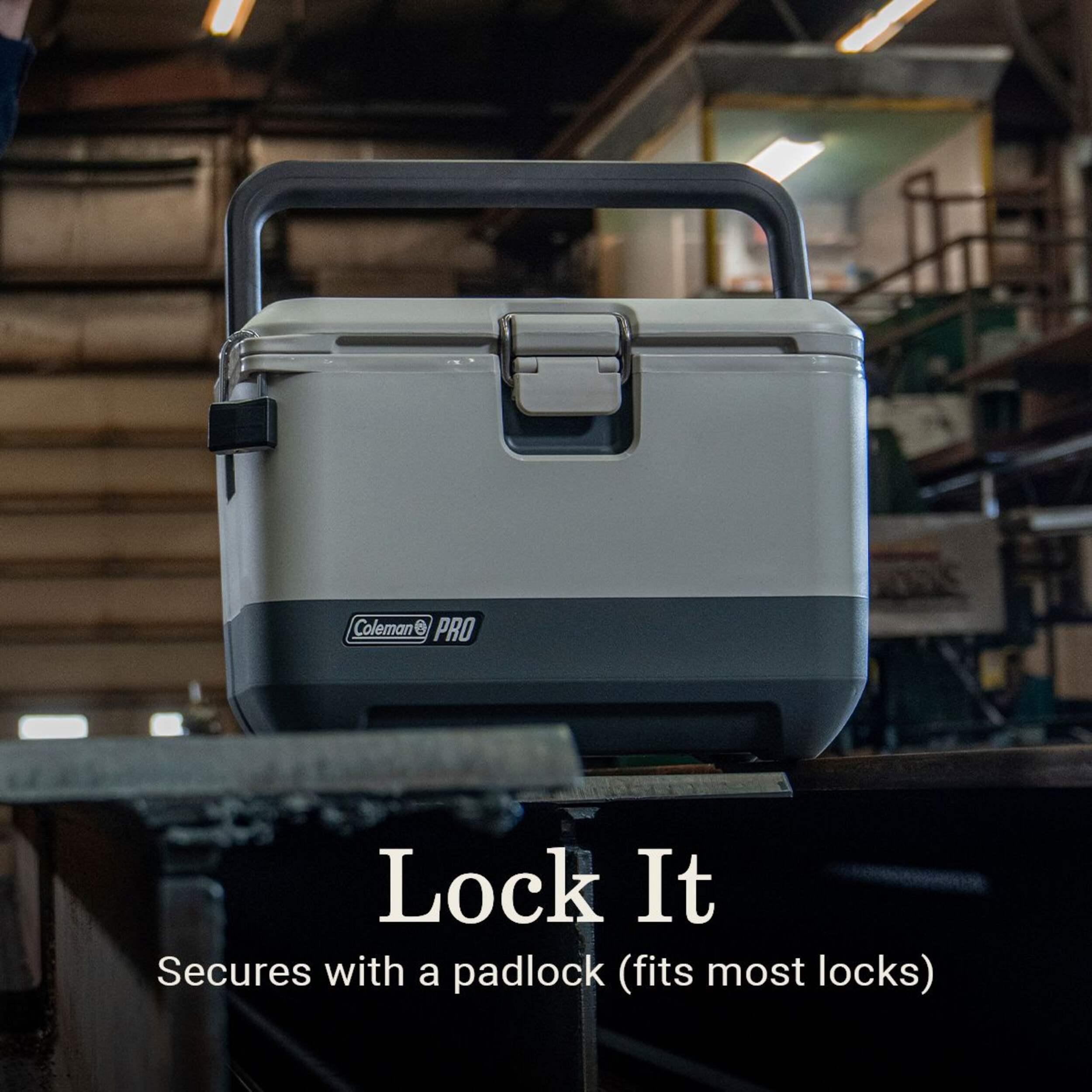 Coleman Pro is gear that works hard like you. It is purpose-built for everyday use in the most demanding environments. The Coleman Pro 17-Quart (16-Litre) Hard Cooler will keep your lunch and drinks cold, thanks to a TempLock FX full-insulated body and lid with a gasket to help keep the cold inside. A durable exterior with rubberized boots helps prevent it from sliding around in the bed of your truck. Gear up with confidence knowing this Coleman cooler comes with a 5-year limited warranty. Work smarter, not harder with clever additions like a flat top that can be used for writing work orders and room for a lock to secure your goods. Plus, this outdoor cooler supports up to 300 pounds (136 kg) so you can use it as a seat.
